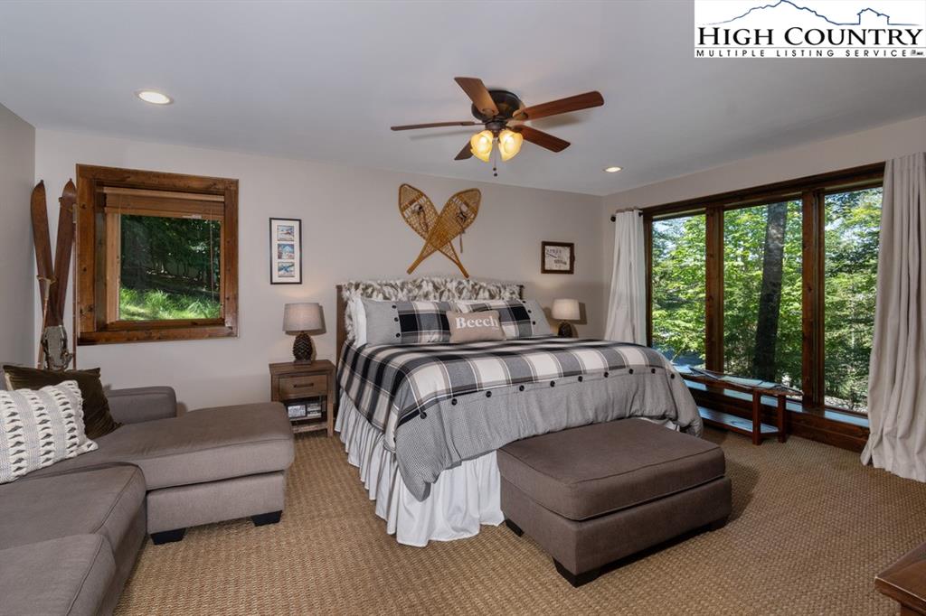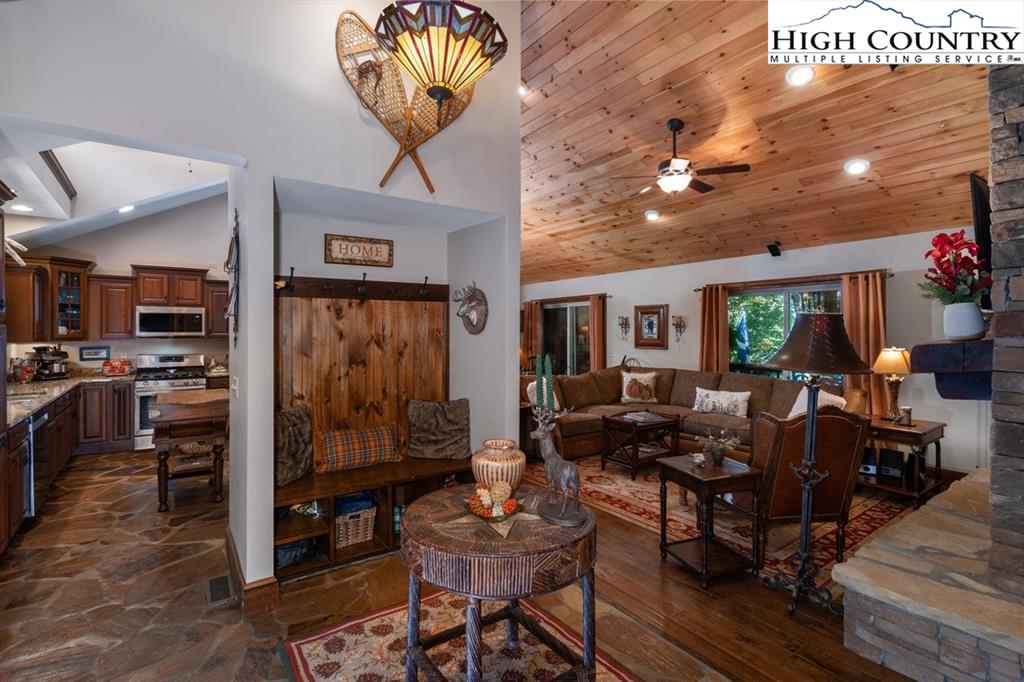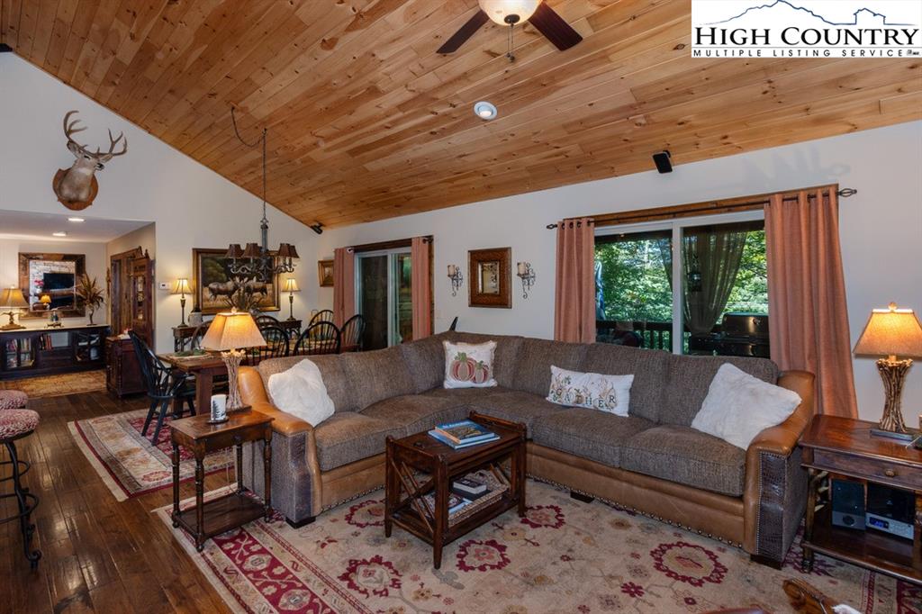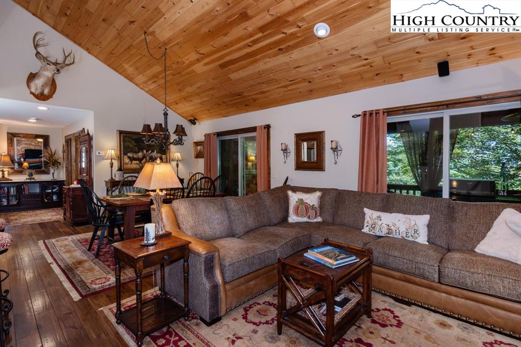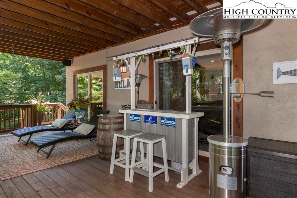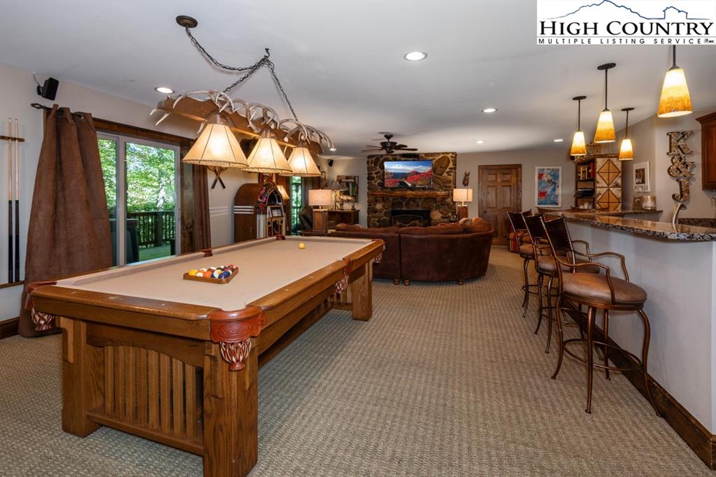 JUST REDUCED! Fully furnished, well appointed 5 bedroom, 4 bath home offers both space and style, perfect for family living and entertaining. As you enter, you're greeted by a beautiful stone foyer that sets the tone for the home's elegant design.The main living area boasts tongue and grove vaulted ceilings, hardwood floors and stone gas fireplace.The kitchen appliances were all updated in 2022 and includes gas range and modern stainless steel appliances with stone floors and granite counters. The spacious primary bedroom includes walk in closet and en-suite bath with separate shower and jetted tub. Two more bedrooms, another full bath and laundry complete the main level. Third bedroom on main level could be used as an office. Downstairs you will find a large family room with pool table, jukebox and bar for those who love to entertain. Two additional bedrooms are generously sized with ample closet space, and two full baths are also included. All baths are tiled. Step outside onto one of the multiple decks, where you'll find plenty of room for outdoor gatherings. A luxurious 2022 salt water hot tub awaits, providing the perfect place to unwind. A backyard fire pit is another exceptional feature for enjoying cozy evenings under the stars. Home has not been rented but has rental projection $60,000-90,000! Home has a current Beech Mountain membership that includes clubhouse, golf, tennis, pool and fitness all less than a mile from the home. Also close to ski slopes, biking, hiking and all that Beech Mountain has to offer.
