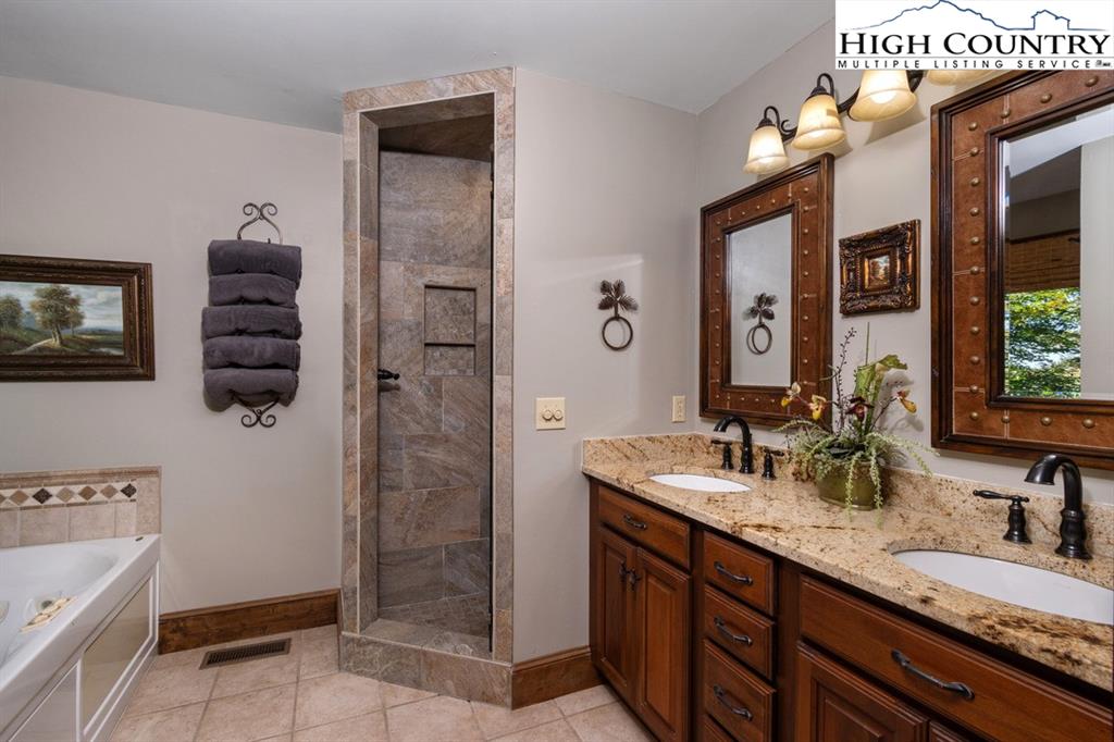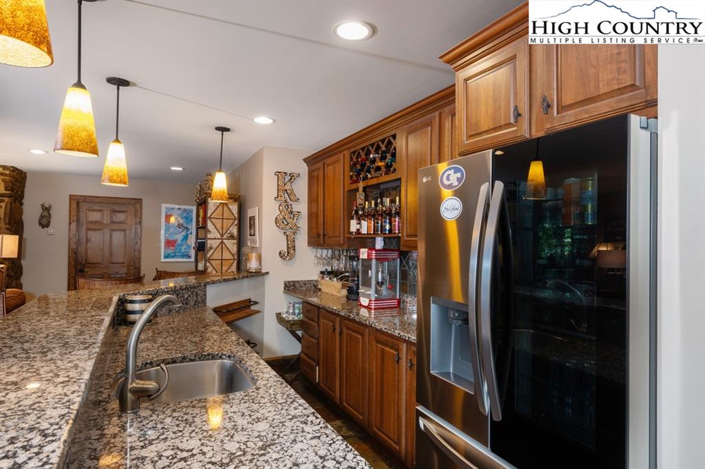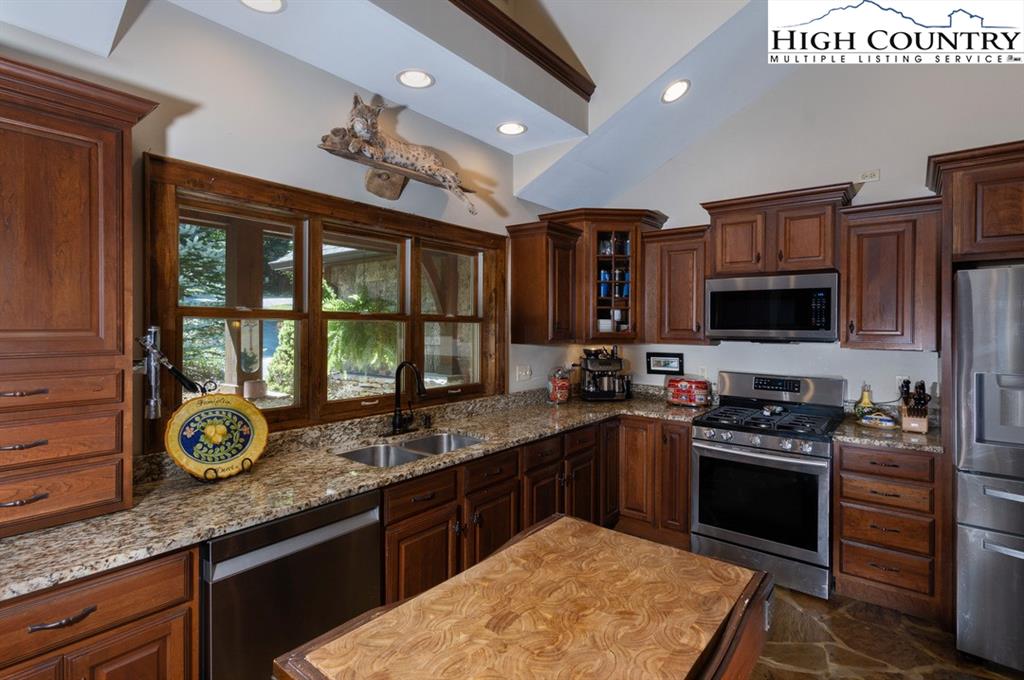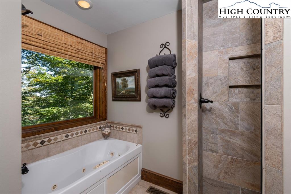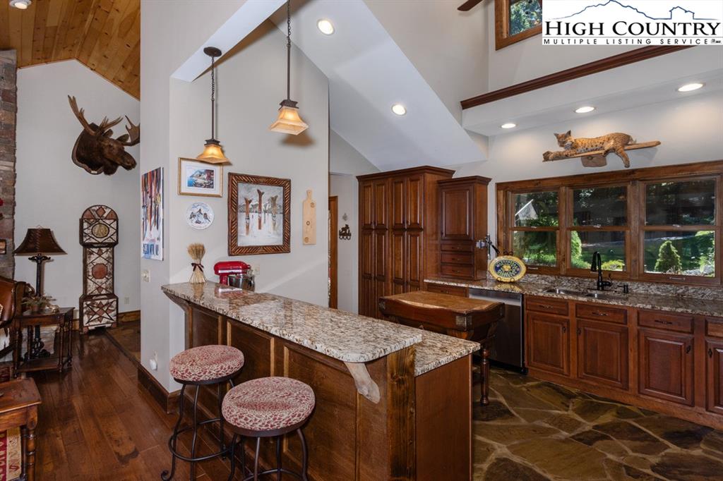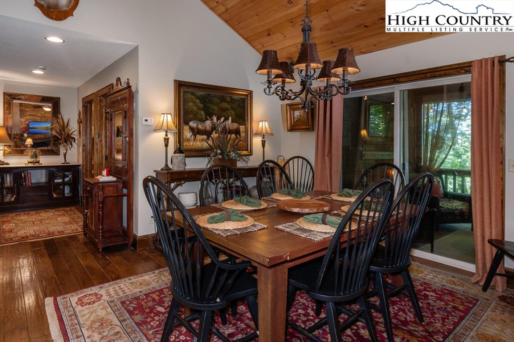 JUST REDUCED! Fully furnished, well appointed 5 bedroom, 4 bath home offers both space and style, perfect for family living and entertaining. As you enter, you're greeted by a beautiful stone foyer that sets the tone for the home's elegant design.The main living area boasts tongue and grove vaulted ceilings, hardwood floors and stone gas fireplace.The kitchen appliances were all updated in 2022 and includes gas range and modern stainless steel appliances with stone floors and granite counters. The spacious primary bedroom includes walk in closet and en-suite bath with separate shower and jetted tub. Two more bedrooms, another full bath and laundry complete the main level. Third bedroom on main level could be used as an office. Downstairs you will find a large family room with pool table, jukebox and bar for those who love to entertain. Two additional bedrooms are generously sized with ample closet space, and two full baths are also included. All baths are tiled. Step outside onto one of the multiple decks, where you'll find plenty of room for outdoor gatherings. A luxurious 2022 salt water hot tub awaits, providing the perfect place to unwind. A backyard fire pit is another exceptional feature for enjoying cozy evenings under the stars. Home has not been rented but has rental projection $60,000-90,000! Home has a current Beech Mountain membership that includes clubhouse, golf, tennis, pool and fitness all less than a mile from the home. Also close to ski slopes, biking, hiking and all that Beech Mountain has to offer.