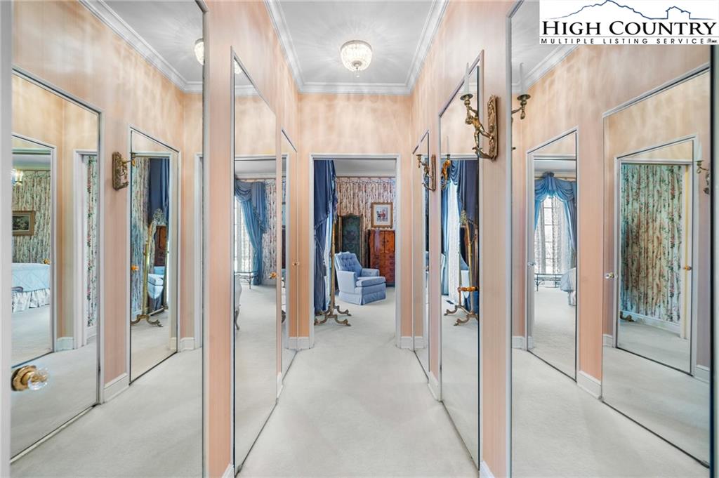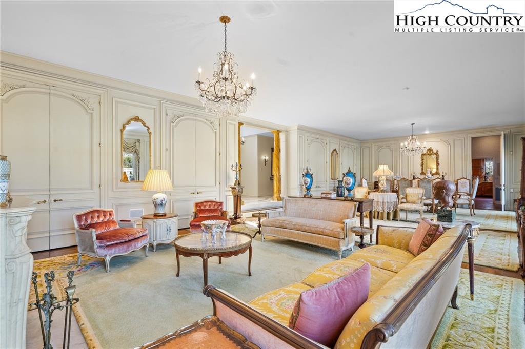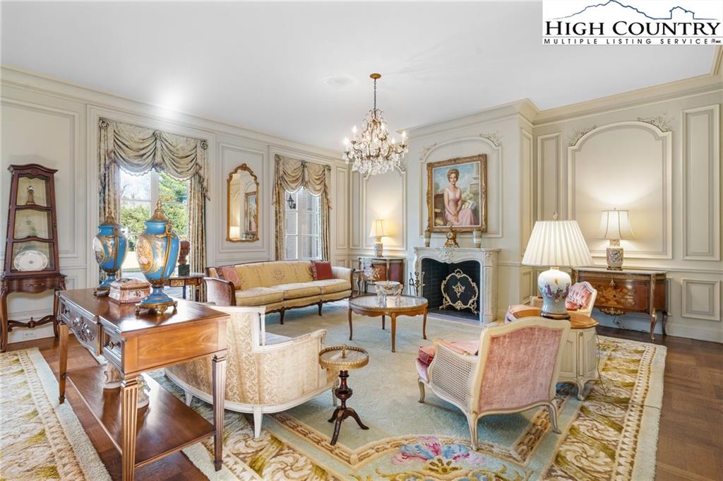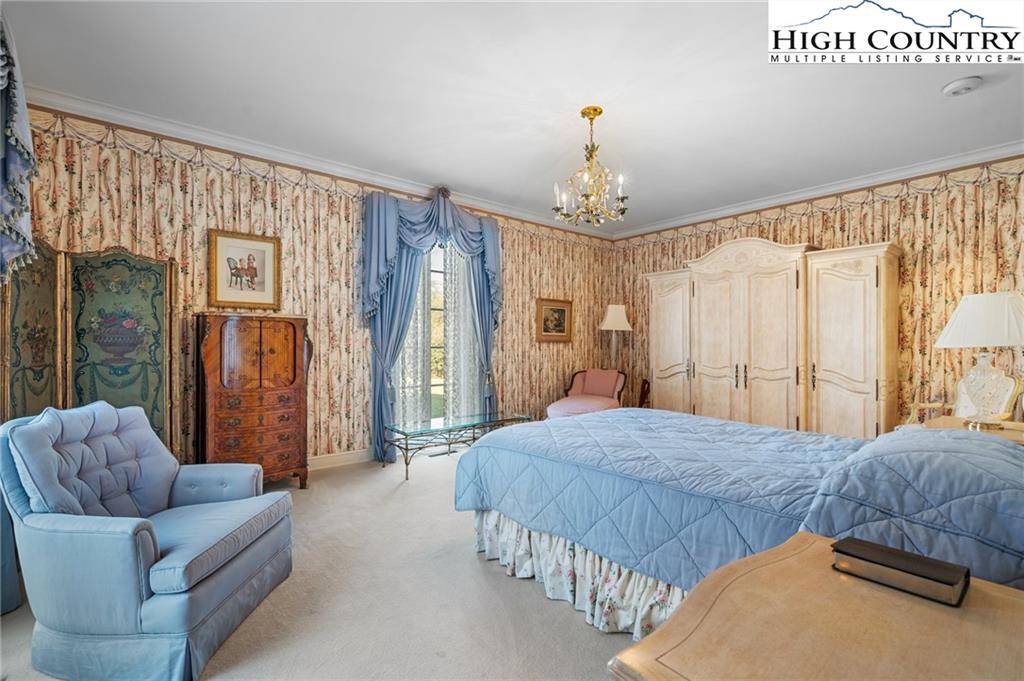 Built in 1966, this 7,324 SF Neo-French designed estate sits on 11.42 acres in the foothills of Western NC. An entertainers’ dream, this property provides rich detail, large windows and high ceilings that give the rooms a perfect proportion and enhance the sense of space and elegance. The main level consists of a large living/dining entertainment space that opens via a series of French doors to the expansive bluestone patio that overlooks a large fountain and pergola that beautifully frames the outdoor living space. Additional main level living space includes two primary bedrooms with custom closets and baths, an office/library, family room, kitchen and laundry. The second floor, accessible via two staircases, includes three additional primary bedrooms and a large playroom. A spacious billiards/entertainment room with stage, FP, storage & wet bar along with a dumbwaiter that runs from the main level make it an ideal space for leisure and entertainment. With five bedrooms, five and a half bathrooms, this home has plenty of space to inspire and pamper you while providing easy access to Blowing Rock, Boone, the Blue Ridge Parkway and just over an hour’s drive to the Charlotte International Airport. Whether one's own full time residence or a luxury retreat, this estate is a rare gem waiting to be rediscovered.