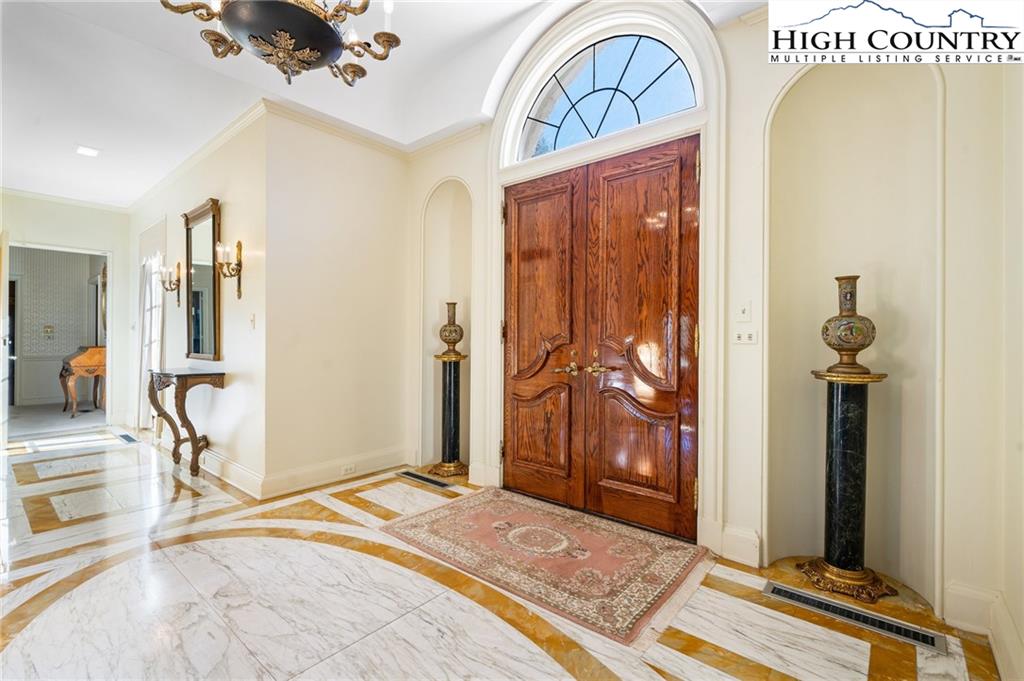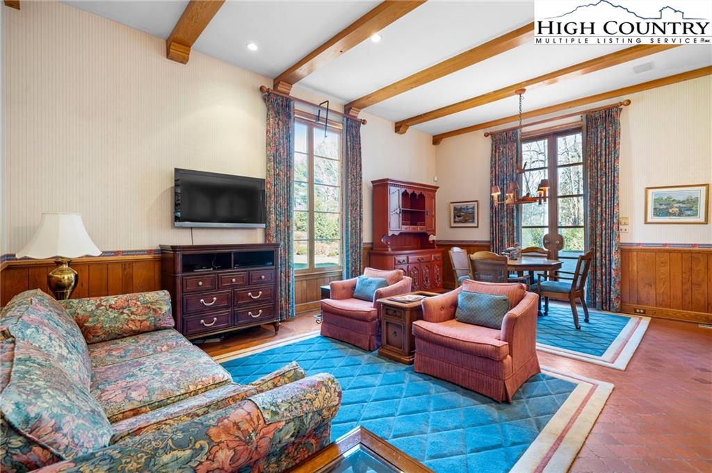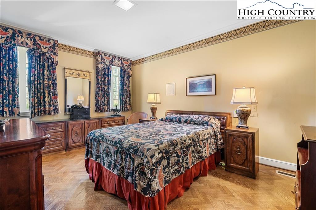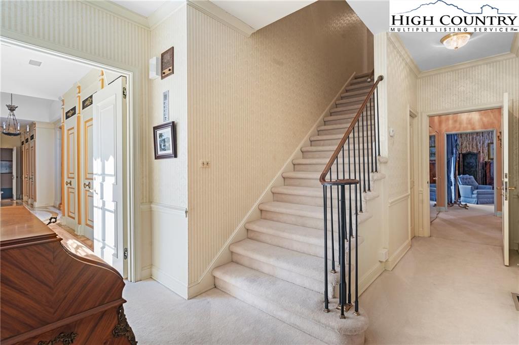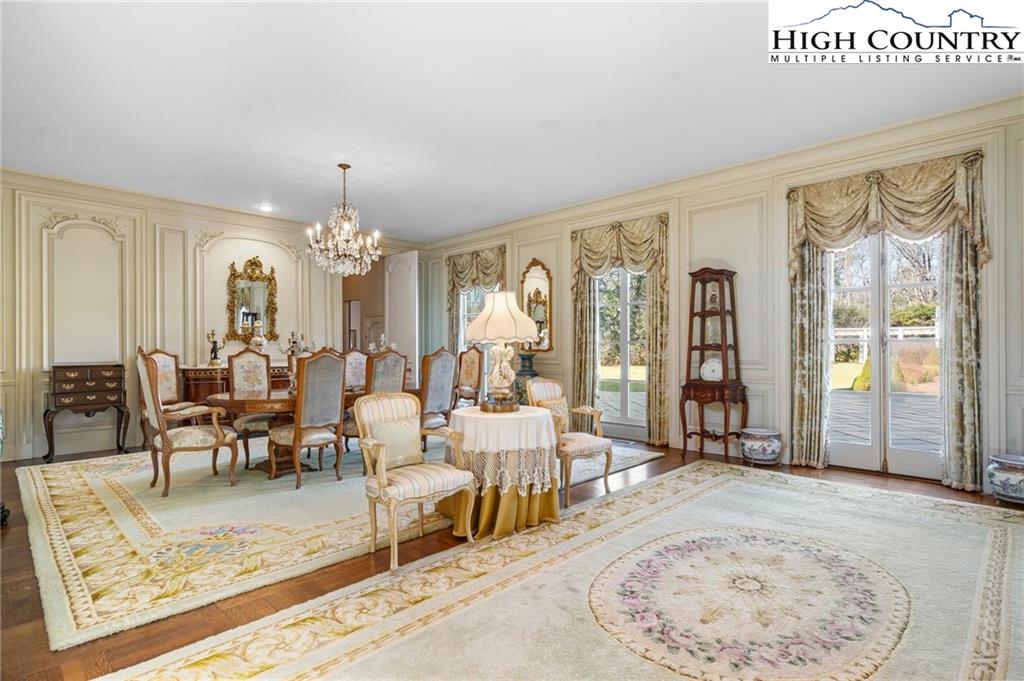 Built in 1966, this 7,324 SF Neo-French designed estate sits on 11.42 acres in the foothills of Western NC. An entertainers’ dream, this property provides rich detail, large windows and high ceilings that give the rooms a perfect proportion and enhance the sense of space and elegance. The main level consists of a large living/dining entertainment space that opens via a series of French doors to the expansive bluestone patio that overlooks a large fountain and pergola that beautifully frames the outdoor living space. Additional main level living space includes two primary bedrooms with custom closets and baths, an office/library, family room, kitchen and laundry. The second floor, accessible via two staircases, includes three additional primary bedrooms and a large playroom. A spacious billiards/entertainment room with stage, FP, storage & wet bar along with a dumbwaiter that runs from the main level make it an ideal space for leisure and entertainment. With five bedrooms, five and a half bathrooms, this home has plenty of space to inspire and pamper you while providing easy access to Blowing Rock, Boone, the Blue Ridge Parkway and just over an hour’s drive to the Charlotte International Airport. Whether one's own full time residence or a luxury retreat, this estate is a rare gem waiting to be rediscovered.