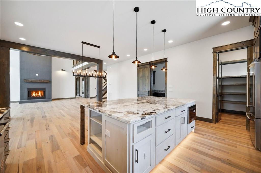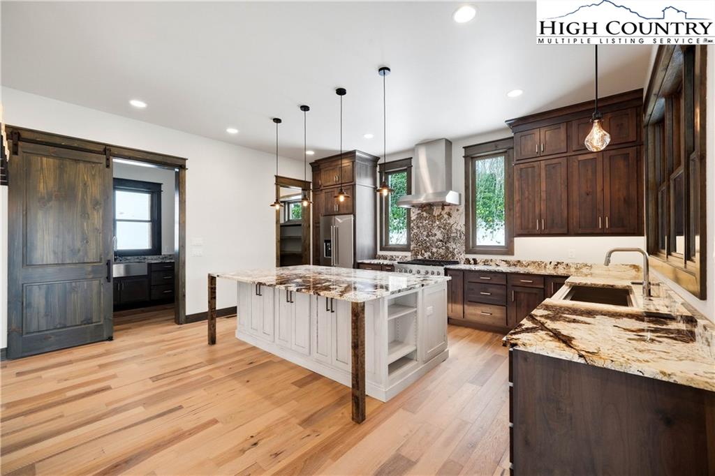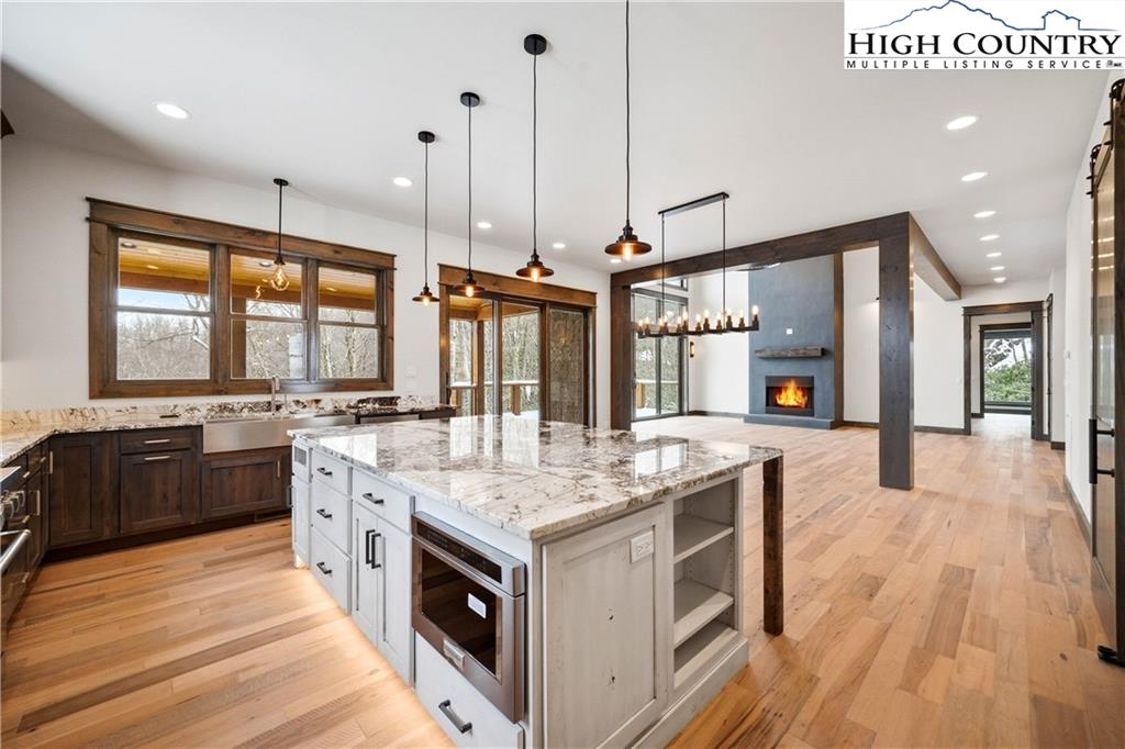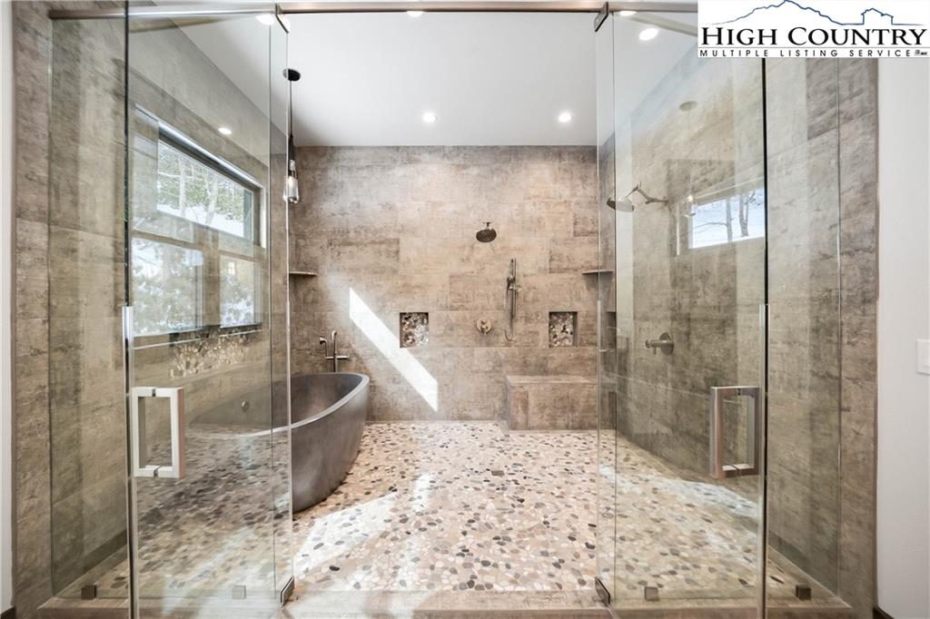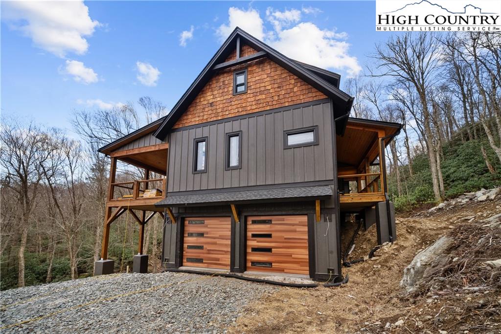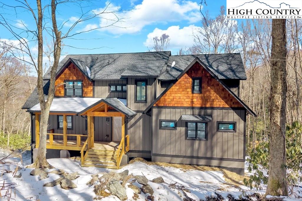Have you been dreaming of owning a high-end custom home without the hassle, uncertainty and years of waiting? Look no further than this stunning modern mountain retreat, in the lovely Boulder Creek gated community, conveniently between Boone and Blowing Rock. Scheduled for completion in summer 2025, this home offers the unique opportunity to personalize select finishes, making it your own. Thoughtfully designed to embrace its breathtaking natural surroundings, the property showcases majestic boulder outcroppings and overlooks a serene creek with cascading waterfalls, providing the tranquil sound of rushing water. Upon entering the vaulted great room, you'll be captivated by the soaring 25-foot wall of windows, flooding the space with natural light, and a striking two-story stucco and barnwood gas fireplace. The open-concept chef’s kitchen is a masterpiece, featuring a massive island, a 45-inch farmhouse sink and custom cabinetry extending to the ceiling. The main-level primary suite is a sanctuary with an expansive 33-foot custom closet. The spa-like primary en-suite bath is an absolute showstopper, featuring a luxurious 8-by-11-foot wet room with walk-in shower and an elegant Native Trails Stone soaking tub. Upstairs, you'll find a versatile bonus room, ideal as a second primary suite, game room or office, along with two additional bedrooms connected by a Jack-and-Jill bath. The lower level presents another flexible living space, which can serve as another primary suite, entertainment area, home office or gym, and seamlessly extends to a spacious deck, well suited for a hot tub. Additional rooms on this level offer the potential for a home theater, playroom or extra storage. An attached oversized two-car garage completes this remarkable home. Don’t miss this rare opportunity to own a new, luxury mountain retreat in time to enjoy this summer! Schedule your tour today and start envisioning your dream home in Boulder Creek.