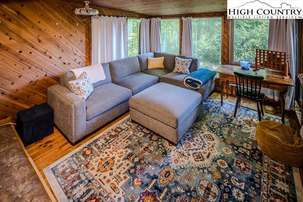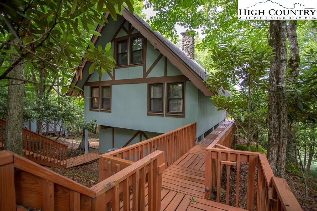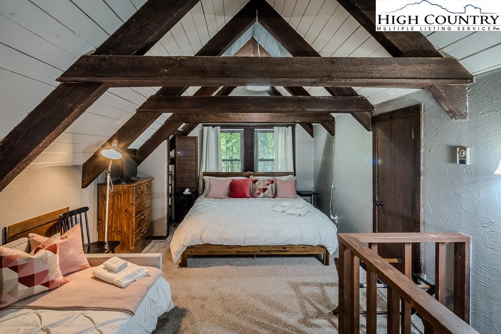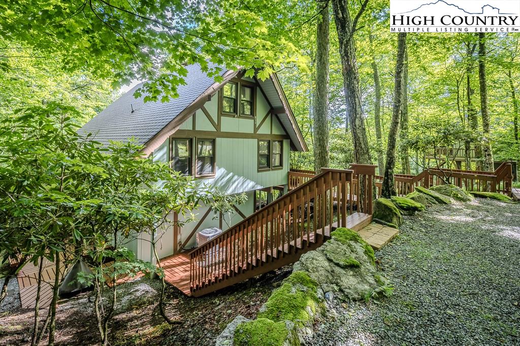 Year-round mountain view from the deck! 4 Bedroom 2 Bath chalet within 4 minutes of Beech Mountain Ski Resort and a short distance to the area’s trail system. It is ideal for a mountain getaway or as a short-term rental. Cameras, AC/heat, and front door locks can all be controlled via an app on your phone, providing peace of mind. Two storage sheds were built under the house, each approximately 5ft by 7ft, with electricity and shelves. An additional oversized storage shed in the yard also has electricity. Adding insulation, carpet, and paint, and then it becomes a flexible space that you can use as an office or a yoga studio. The large yard is perfect for bonfires, watching the deer, or simply relaxing. Two levels of living space, plus a sleeping loft, add to the spacious feel. This home is tucked away in a secluded area that is very walkable for daily exercise. The kitchen is updated, and the living room has a stone fireplace with gas logs…so cozy! The house comes completely furnished (with a few exceptions). Most of the furniture is only 3 to 4 years old. The hockey table, the sectional in the theater room, and the bedding are all less than one year old. The kitchen is fully stocked with measuring spoons and placemats. Ready for immediate rentals or just enjoying mountain living.