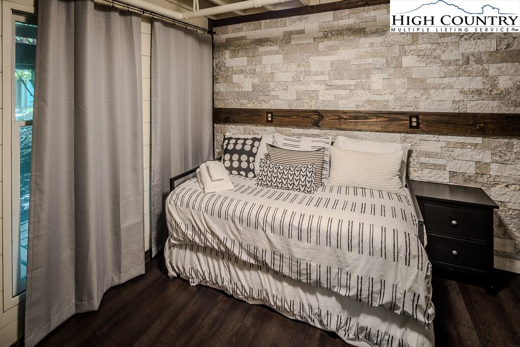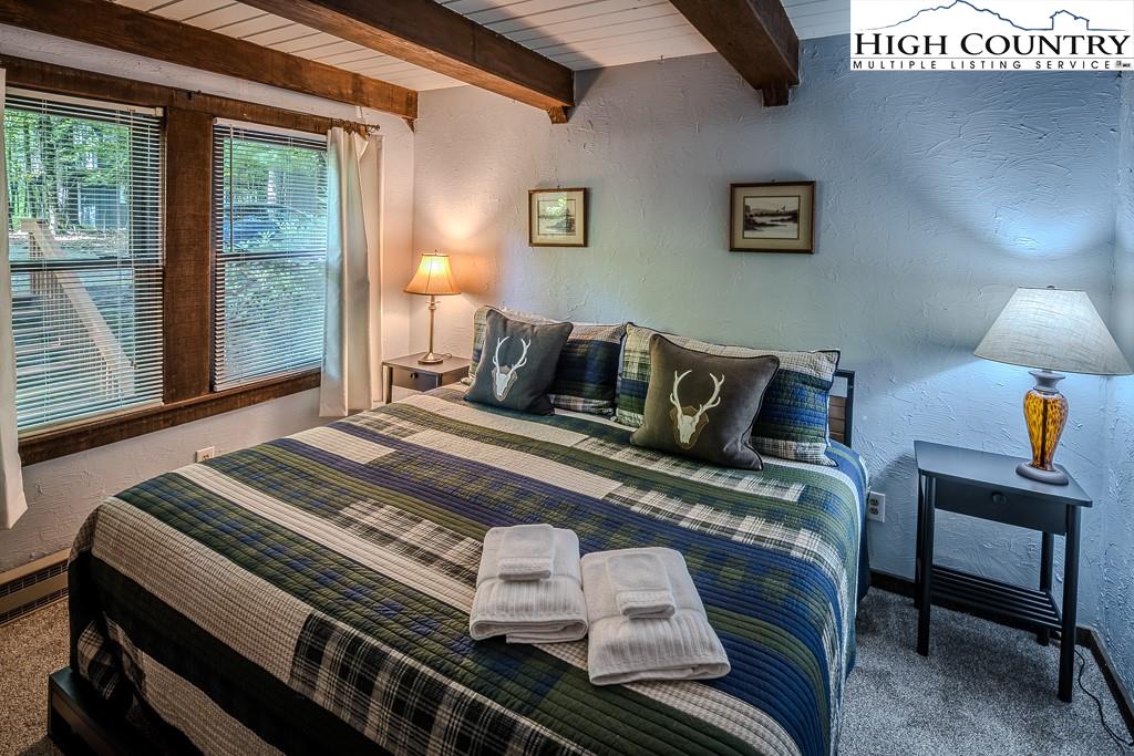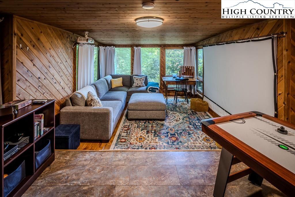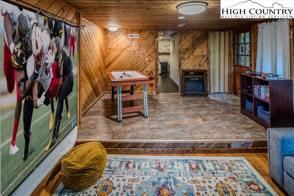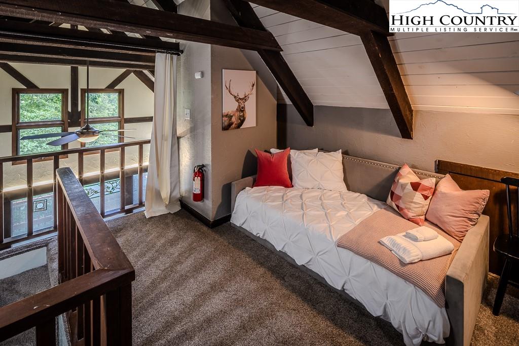 Year-round mountain view from the deck! 4 Bedroom 2 Bath chalet within 4 minutes of Beech Mountain Ski Resort and a short distance to the area’s trail system. It is ideal for a mountain getaway or as a short-term rental. Cameras, AC/heat, and front door locks can all be controlled via an app on your phone, providing peace of mind. Two storage sheds were built under the house, each approximately 5ft by 7ft, with electricity and shelves. An additional oversized storage shed in the yard also has electricity. Adding insulation, carpet, and paint, and then it becomes a flexible space that you can use as an office or a yoga studio. The large yard is perfect for bonfires, watching the deer, or simply relaxing. Two levels of living space, plus a sleeping loft, add to the spacious feel. This home is tucked away in a secluded area that is very walkable for daily exercise. The kitchen is updated, and the living room has a stone fireplace with gas logs…so cozy! The house comes completely furnished (with a few exceptions). Most of the furniture is only 3 to 4 years old. The hockey table, the sectional in the theater room, and the bedding are all less than one year old. The kitchen is fully stocked with measuring spoons and placemats. Ready for immediate rentals or just enjoying mountain living.