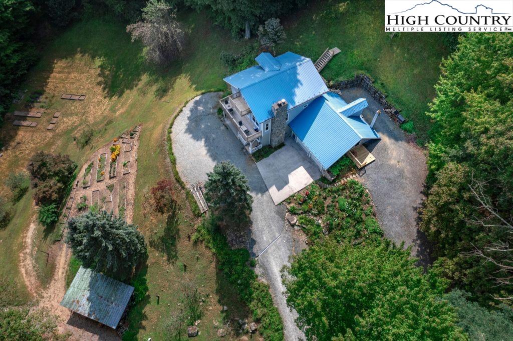 Turnkey mountain homestead on over 22 acres in a private setting. Plenty of established raised beds for home gardening and space for bees, flowers, fruit trees and more. A detached outbuilding and garage are ideal for a man cave, or use it for your woodshop, tools and to store your tractor. Collect your eggs from the small lean-to structure adjacent to the gardens that can easily be converted into a chicken coop. Forest lands provide plentiful hardwood logs for the hearth. In place are heirloom apple trees, blueberry bushes, blackberry vines, hundreds of daffodil bulbs, English primrose, hostas, lilies, daisies and herbs including thyme, oregano and chives. Start your plants from seed with the grow tent and grow lights. Wood-splitter and apple press remain. Tapped a spring near the house. A potential hilltop homesite would have extraordinary views. Furnished home features three bedrooms, three baths, a separate entry bonus room, a living area with a stone wood-burning fireplace, a kitchen with custom-made cabinets, two laundry areas, one for gardening/dog bedding, the other for household use, and a cozy mudroom with a wood stove. Rinnai on-demand water heater and HVAC installed in 2024. Multiple decks. This home has not been used as rental property, as it has been lovingly enjoyed as a part-time family residence. Views from the residence can be greatly enhanced with tree trimming. An all-wheel drive or four-wheel drive vehicle is recommended. In driving distance to Watauga Lake, Boone and Banner Elk.