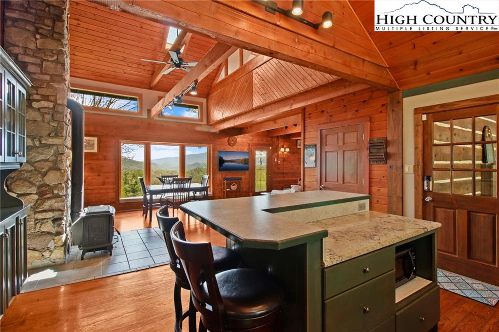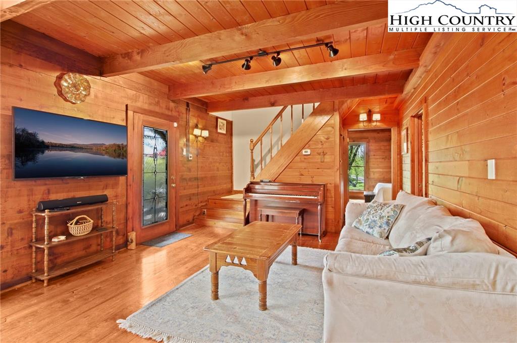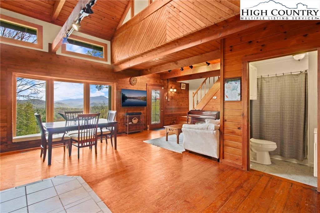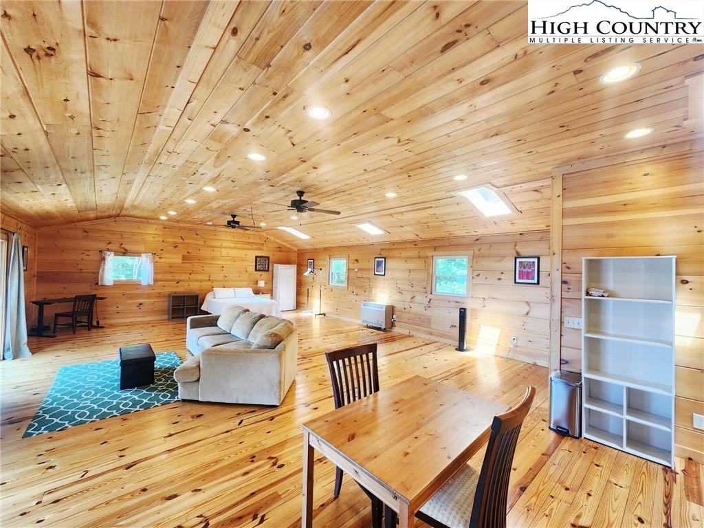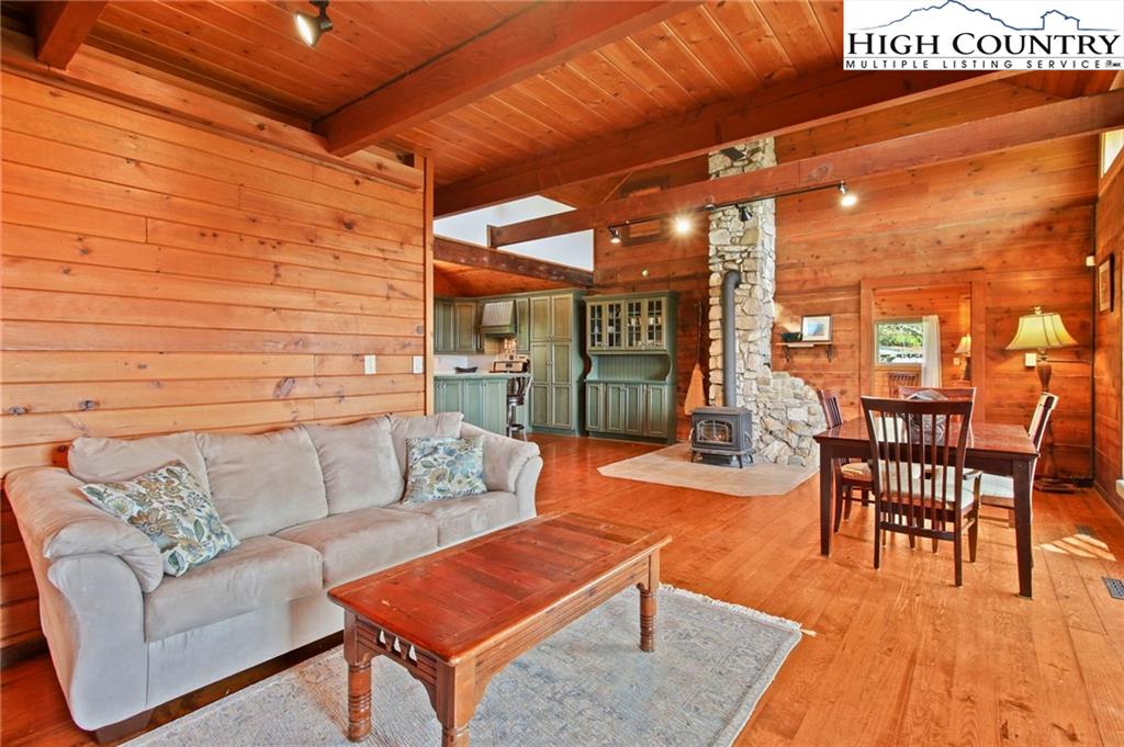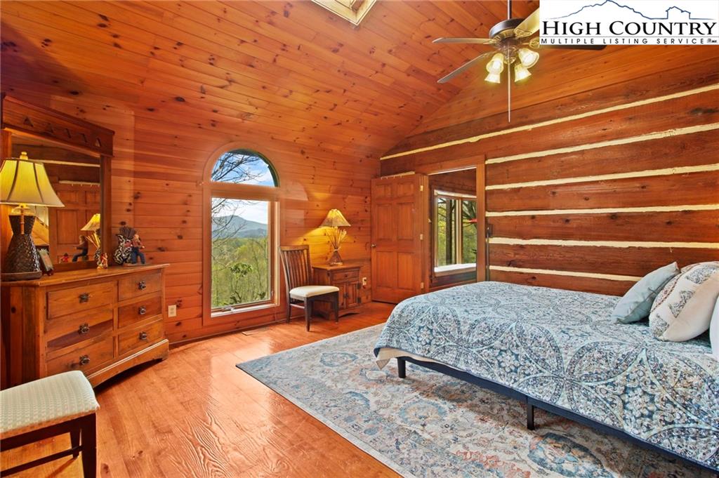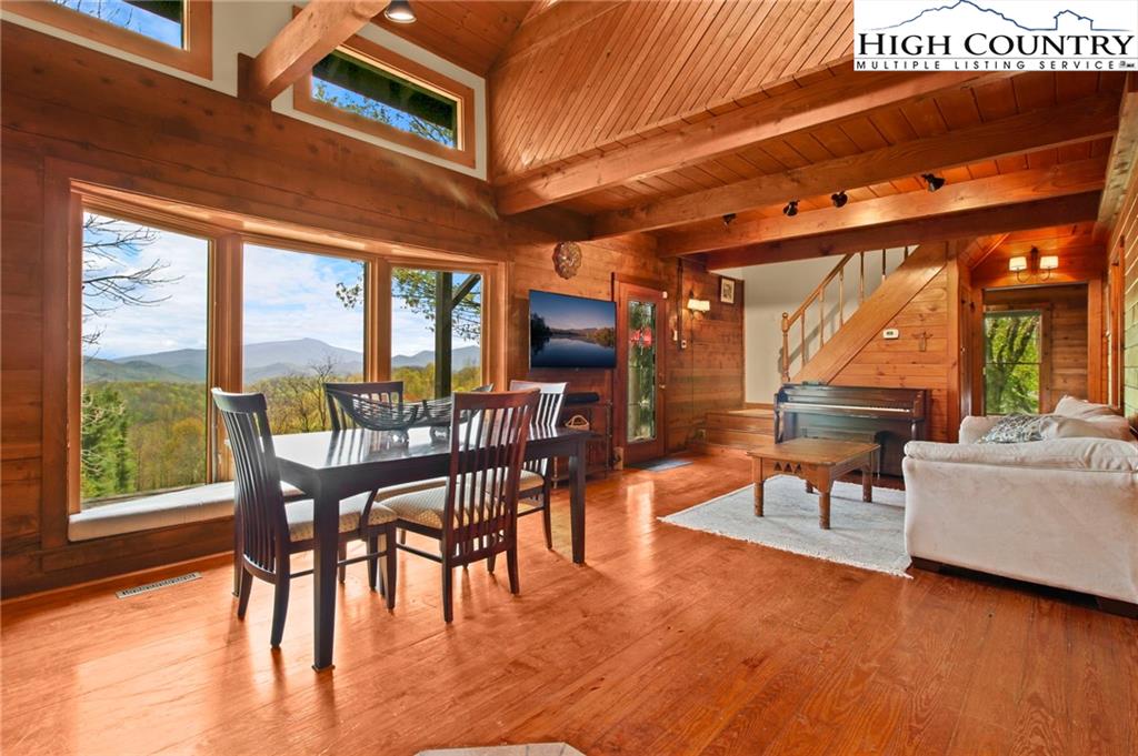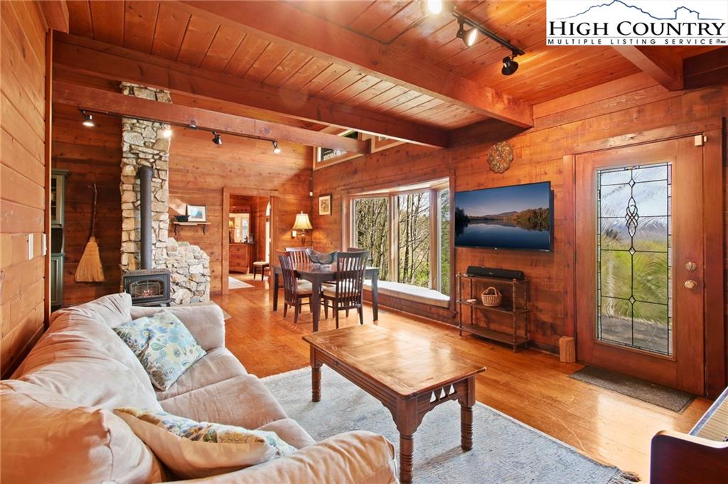 Welcome to the Lynn Hill Mountain Retreat, a hidden gem perched at approximately 3700 feet in elevation at the end of a quiet road. With 2,951 square feet of living space nestled on 4.44 secluded acres, this exceptional mountain property offers sweeping, unobstructed views of Grandfather Mountain and the iconic Blue Ridge layers. Though it feels a world away, you’re only five to ten minutes from Downtown Boone, Appalachian State University, and all the amenities, attractions, and adventure The High Country is known for. This property is a rare opportunity for income generation, multi-generational living, or creating your dream mountain retreat. There are no HOA or zoning restrictions, so you're free to pursue short-, mid-, or long-term rental income without limitations. With two completely independent living units, including a spacious 977-square-foot guest studio, the property easily supports both personal use and investment goals. The main cabin features four bedrooms and three bathrooms. Its thoughtful layout places the primary suite, kitchen, living area, guest bedroom, and laundry all on the first floor for easy, convenient living. The guest studio offers endless versatility—imagine a private suite for guests or tenants, an art or yoga studio, or even a nostalgic mountain dance hall. With a permitted six-bedroom septic system, the space could also be reconfigured into a fully functional two-bedroom apartment. The land is rich with natural beauty, including a spring-fed pond, open pasture ideal for horses, and a sunny space ready for your garden. Lynn Hill is more than a home—it's a peaceful mountain sanctuary with unmatched potential for living, investment, and connection to nature.