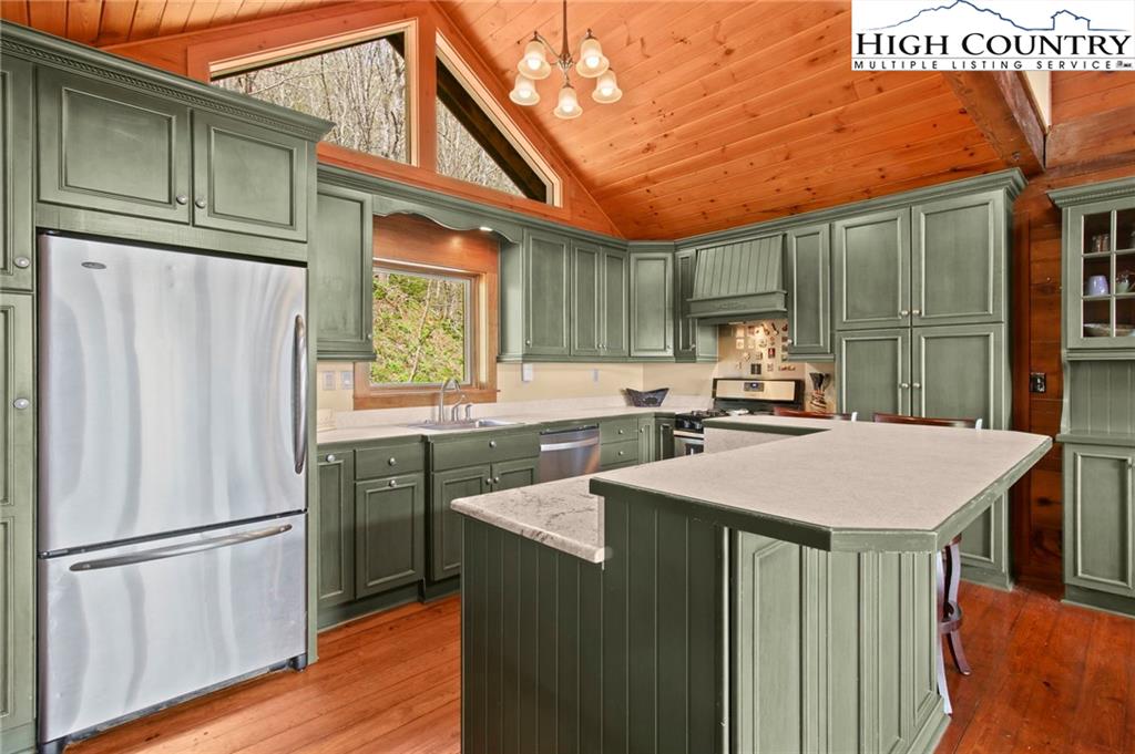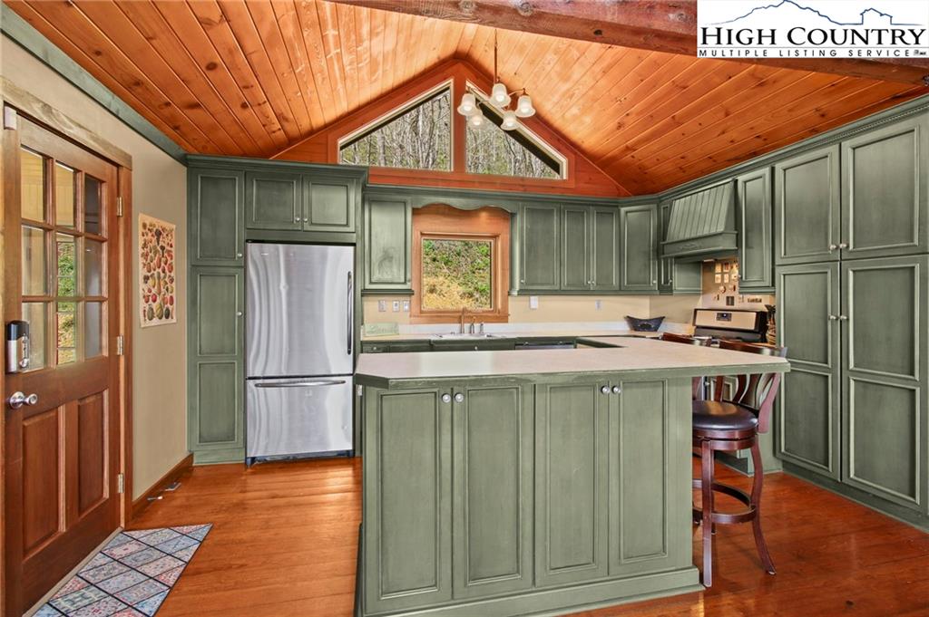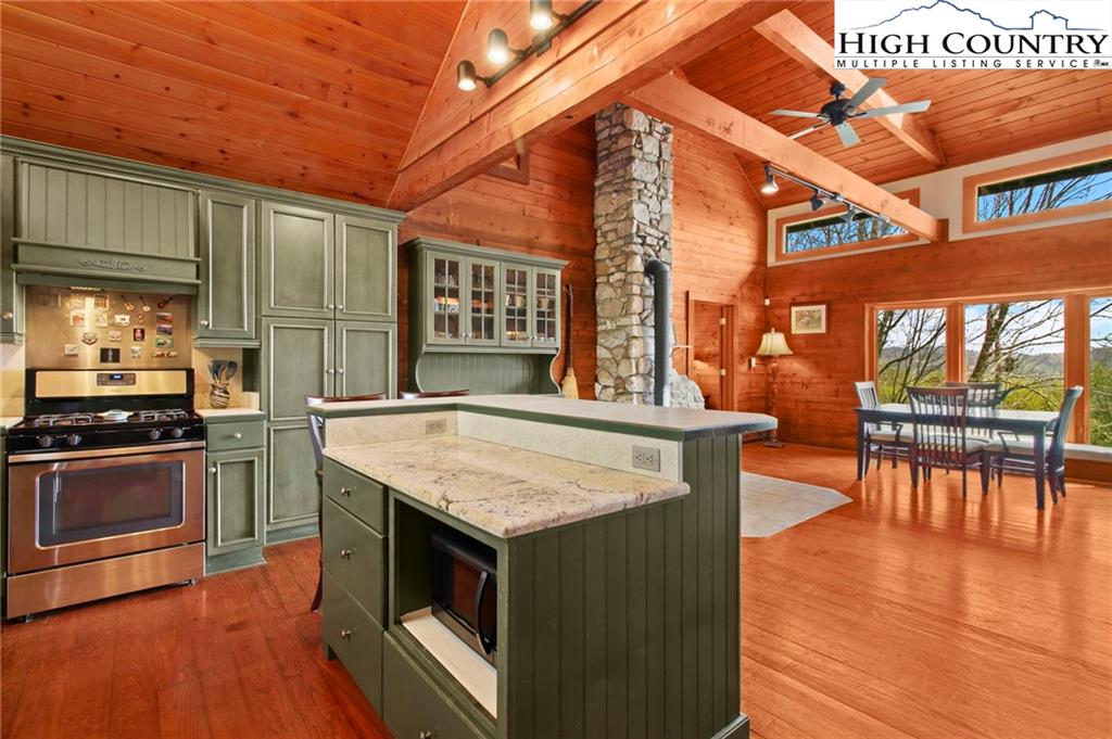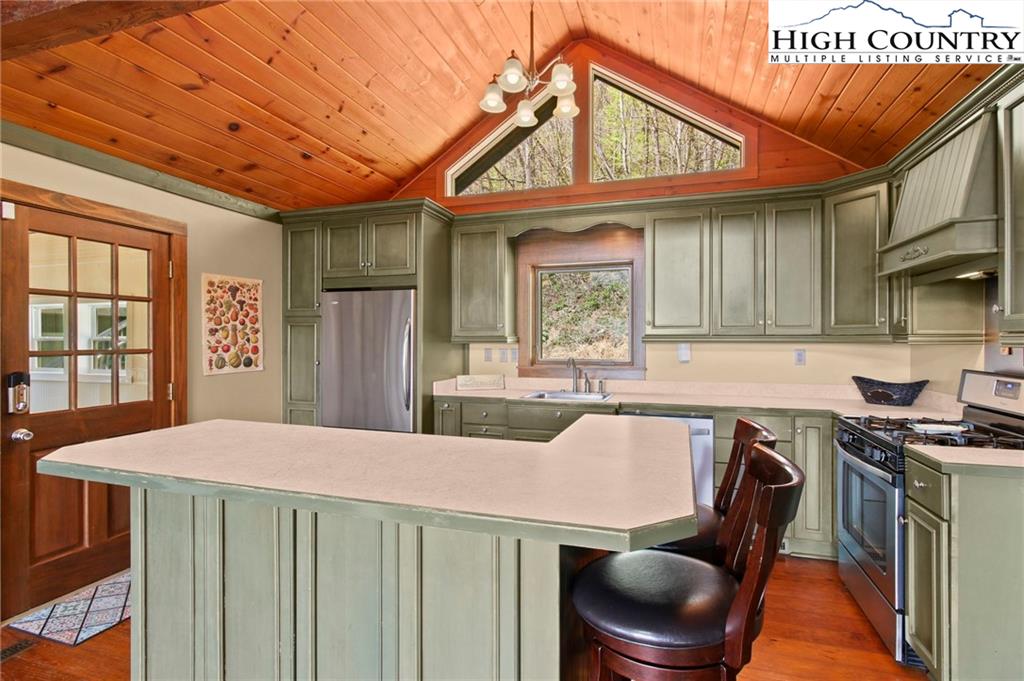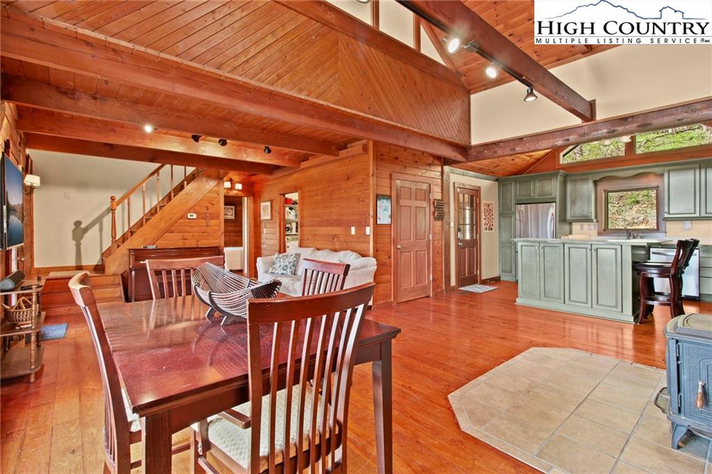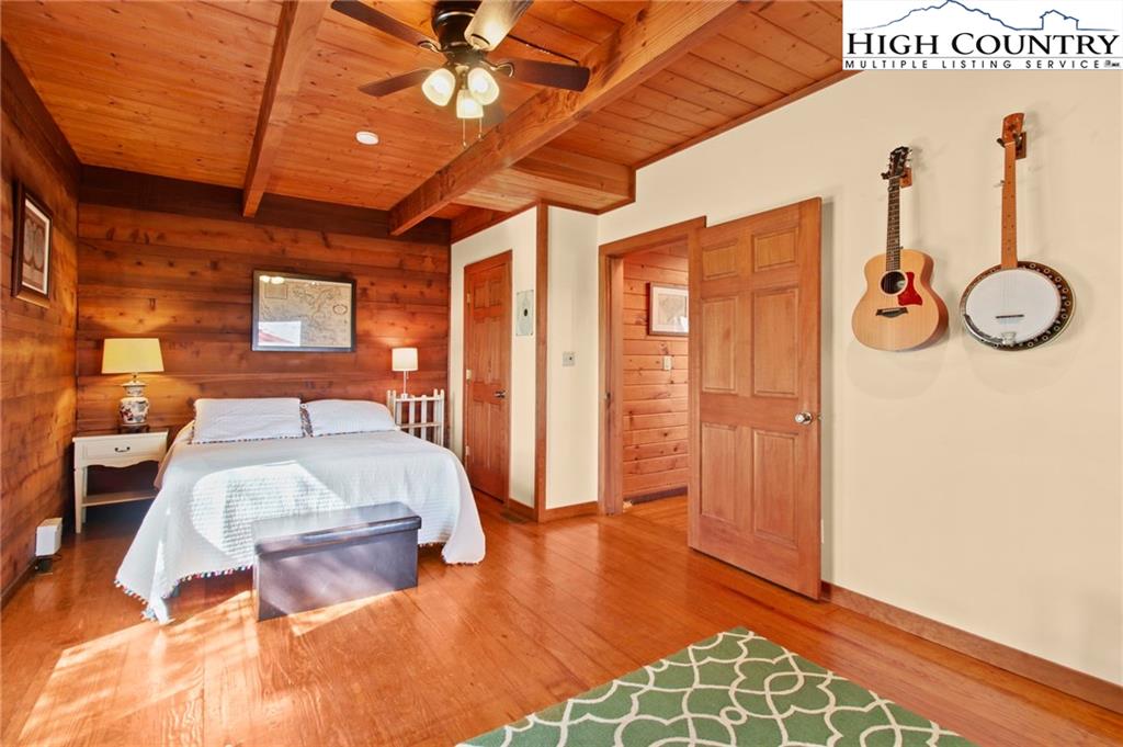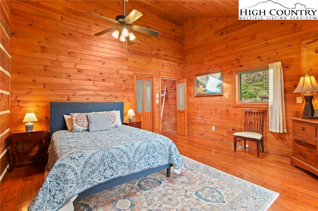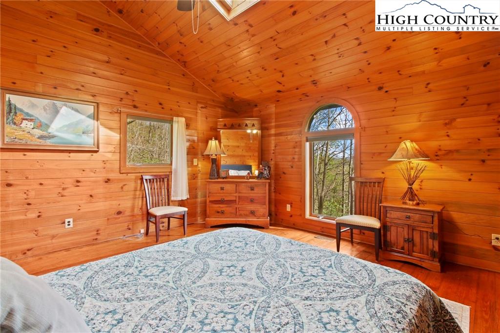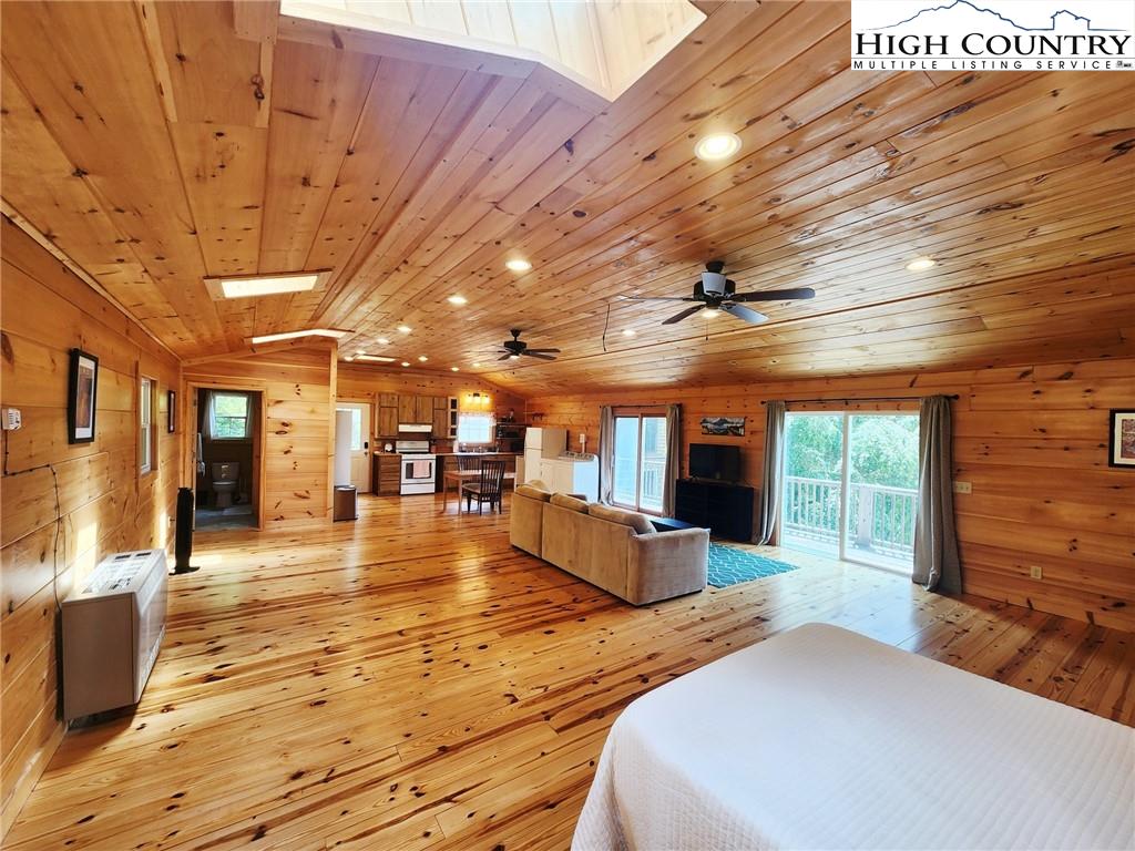 Welcome to the Lynn Hill Mountain Retreat, a hidden gem perched at approximately 3700 feet in elevation at the end of a quiet road. With 2,951 square feet of living space nestled on 4.44 secluded acres, this exceptional mountain property offers sweeping, unobstructed views of Grandfather Mountain and the iconic Blue Ridge layers. Though it feels a world away, you’re only five to ten minutes from Downtown Boone, Appalachian State University, and all the amenities, attractions, and adventure The High Country is known for. This property is a rare opportunity for income generation, multi-generational living, or creating your dream mountain retreat. There are no HOA or zoning restrictions, so you're free to pursue short-, mid-, or long-term rental income without limitations. With two completely independent living units, including a spacious 977-square-foot guest studio, the property easily supports both personal use and investment goals. The main cabin features four bedrooms and three bathrooms. Its thoughtful layout places the primary suite, kitchen, living area, guest bedroom, and laundry all on the first floor for easy, convenient living. The guest studio offers endless versatility—imagine a private suite for guests or tenants, an art or yoga studio, or even a nostalgic mountain dance hall. With a permitted six-bedroom septic system, the space could also be reconfigured into a fully functional two-bedroom apartment. The land is rich with natural beauty, including a spring-fed pond, open pasture ideal for horses, and a sunny space ready for your garden. Lynn Hill is more than a home—it's a peaceful mountain sanctuary with unmatched potential for living, investment, and connection to nature.