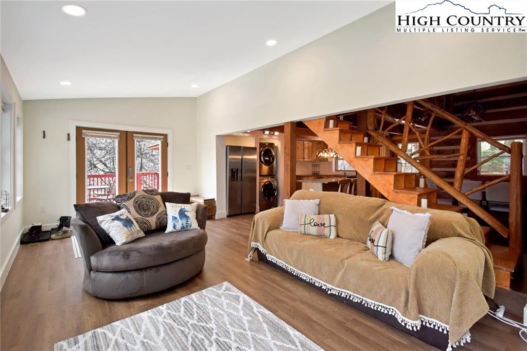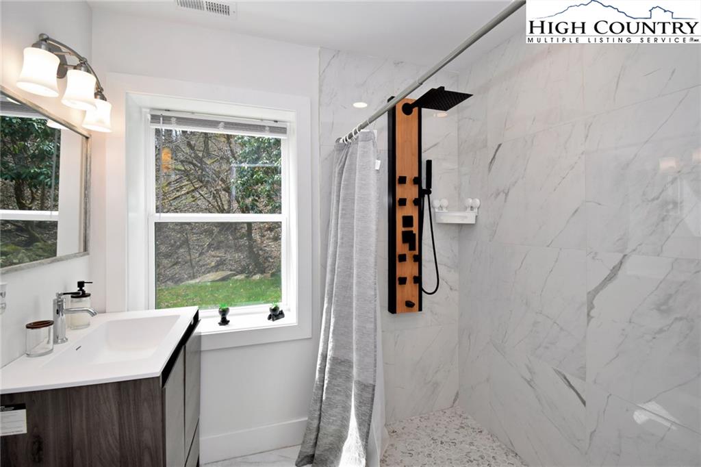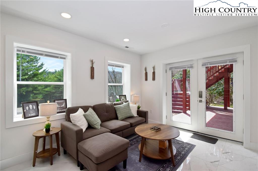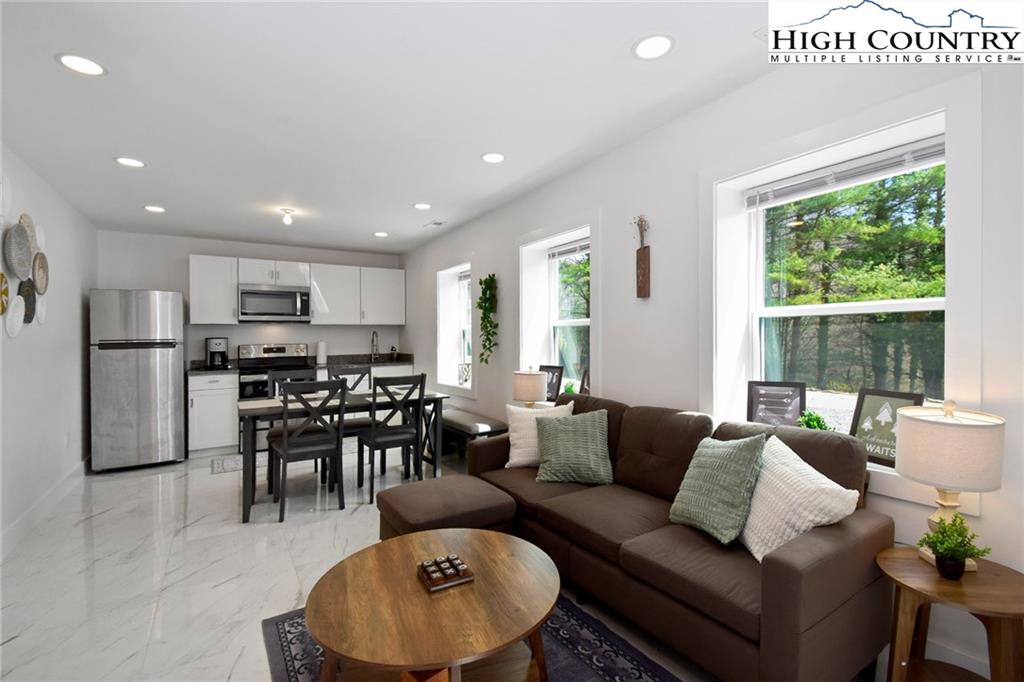 Just minutes from downtown Boone in the charming community of Willow Mountain, this fully renovated and furnished mountain cabin offers an exceptional combination of comfort, flexibility and income potential. On over an acre with a level front yard, easy year-round access, ample parking and a nearby babbling stream, the setting evokes a peaceful, park-like atmosphere ideal for full-time living, seasonal retreat or dual-use ownership. The home features a duplex-style layout, with a private lower-level apartment offering its entrance, full kitchen, laundry and utilities—well suited for a short-term or long-term rental, guest suite or multi-generational living. Inside, the spacious main living room is filled with natural light streaming through a wall of windows and anchored by a beautiful stone fireplace—currently outfitted with propane for convenience, but easily convertible back to wood-burning. Additional highlights include an updated kitchen with stainless steel appliances, oversized front-load washer and dryer, central air conditioning and fresh finishes throughout. A generous loft with its full bath provides flexible space for an additional sleeping area, lounge or home office. The back deck, front porch and a dedicated fire pit area expand the living space outdoors, offering the ideal setting to enjoy mountain views, fresh air and the tranquil sound of flowing water. Whether you're looking for a turnkey High Country getaway, a revenue-producing rental or a home with flexible living arrangements, this thoughtfully upgraded and move-in-ready property delivers lasting value in one of Boone’s most inviting settings. There is a 703-square-foot difference between tax records and professional measurements. The basement has been finished and is permitted. Permits are attached.