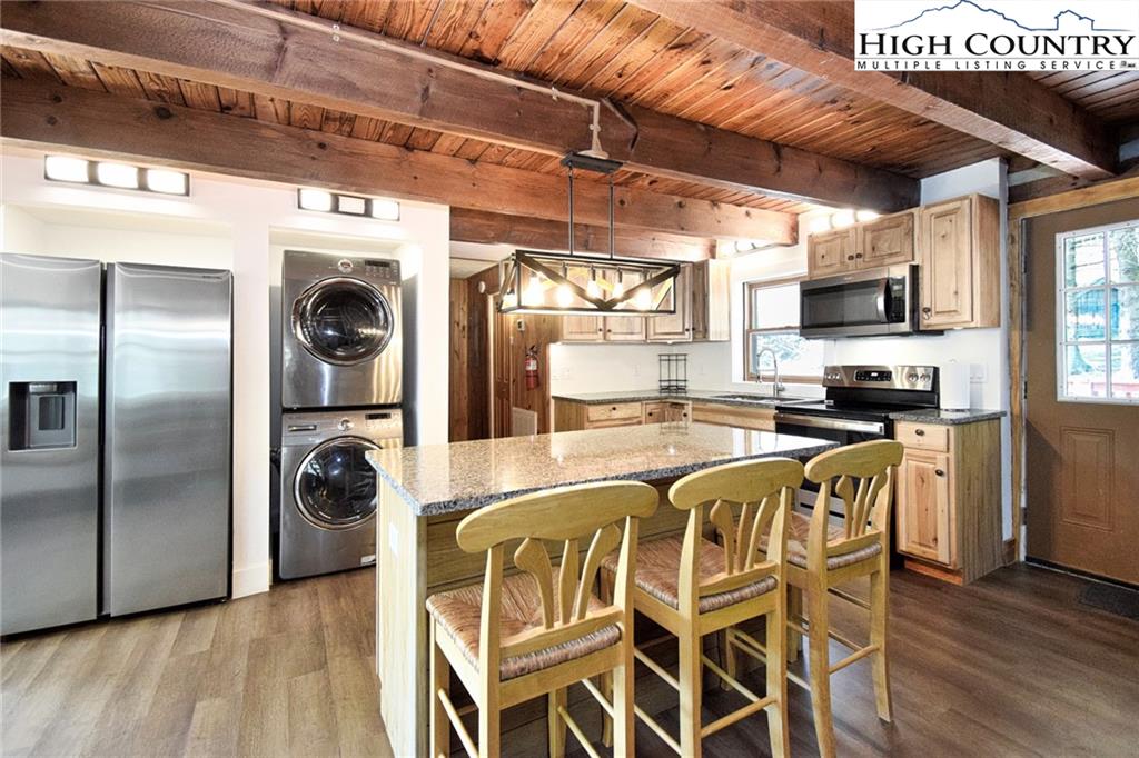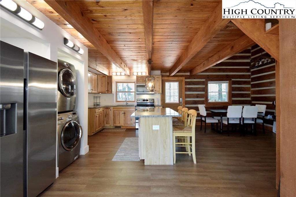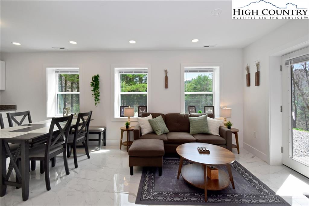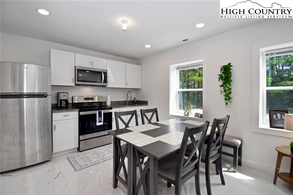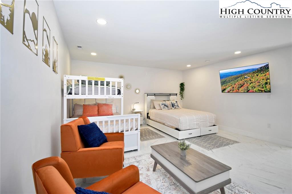 Just minutes from downtown Boone in the charming community of Willow Mountain, this fully renovated and furnished mountain cabin offers an exceptional combination of comfort, flexibility and income potential. On over an acre with a level front yard, easy year-round access, ample parking and a nearby babbling stream, the setting evokes a peaceful, park-like atmosphere ideal for full-time living, seasonal retreat or dual-use ownership. The home features a duplex-style layout, with a private lower-level apartment offering its entrance, full kitchen, laundry and utilities—well suited for a short-term or long-term rental, guest suite or multi-generational living. Inside, the spacious main living room is filled with natural light streaming through a wall of windows and anchored by a beautiful stone fireplace—currently outfitted with propane for convenience, but easily convertible back to wood-burning. Additional highlights include an updated kitchen with stainless steel appliances, oversized front-load washer and dryer, central air conditioning and fresh finishes throughout. A generous loft with its full bath provides flexible space for an additional sleeping area, lounge or home office. The back deck, front porch and a dedicated fire pit area expand the living space outdoors, offering the ideal setting to enjoy mountain views, fresh air and the tranquil sound of flowing water. Whether you're looking for a turnkey High Country getaway, a revenue-producing rental or a home with flexible living arrangements, this thoughtfully upgraded and move-in-ready property delivers lasting value in one of Boone’s most inviting settings. There is a 703-square-foot difference between tax records and professional measurements. The basement has been finished and is permitted. Permits are attached.