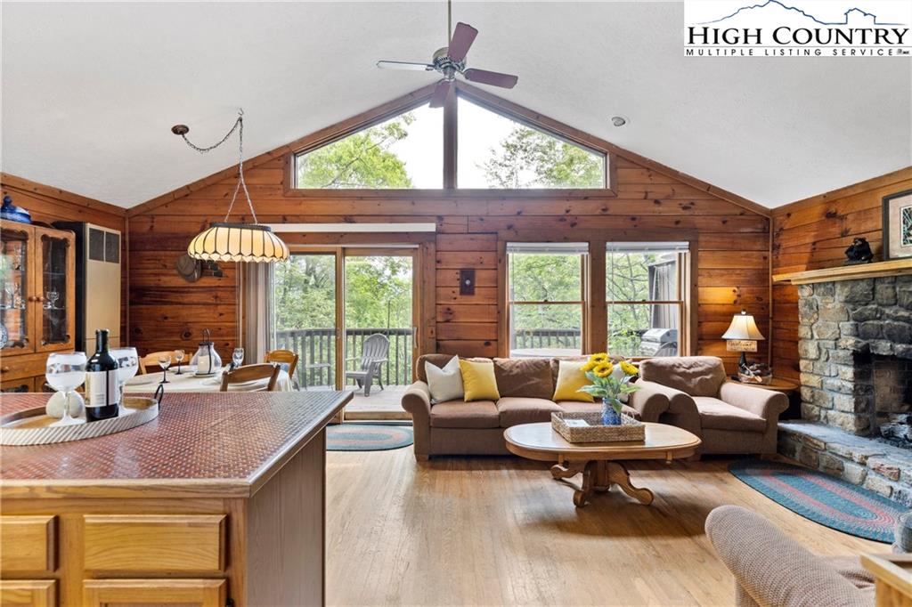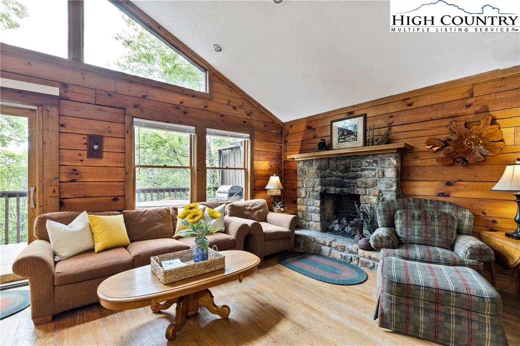 Dreaming of the fresh mountain air with the iconic view of Grandfather Mountain? This might be the home you've been searching for. With a recent price improvement, this fully furnished log cabin style home is tucked away in the beautiful and well managed resort Town of Seven Devils - just minutes away from Boone, Banner Elk, and Blowing Rock. Only two owners have cared for this home, and now it's ready for the next owner to bring their own vision - updating and making it perfectly suited to their family's needs. Three level living with a beautifully finished basement. Open concept main floor with one of two stone fireplaces. 1626 sq ft. plus 306 sq. ft. of unheated finished space (currently an additional sleeping area and bath). The main level features an open kitchen and living area, two bedrooms, a full bathroom, and a deck showcasing spectacular Grandfather Mountain views. The lower level is a primary retreat with a stone gas fireplace, built-in cabinetry, wet bar, a large tiled shower, double sinks and plenty of storage. An additional deck is ready for a future hot tub! Located on the peaceful lower side of Seven Devils, and just beyond Devil's Lake and the Resort Club, this home offers easy access to Hawksnest Resort Otter Falls hiking, tennis and pickleball courts, outdoor concerts, and a lively calendar of community events. The central High Country location makes this home just right for a full-time residence, vacation getaway, or a short-term rental investment. If you have clients looking for a turn-key mountain escape or an investment property, I'd love to share more details or schedule a showing.