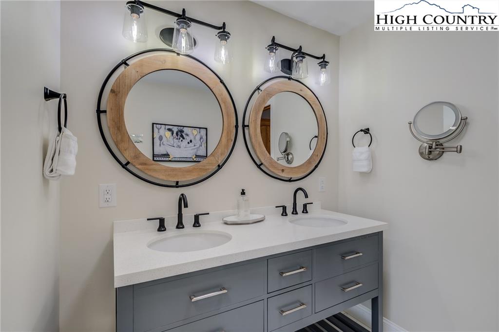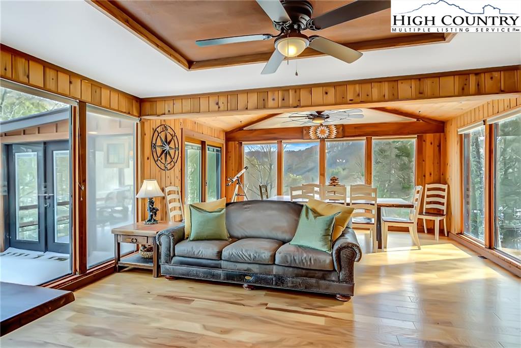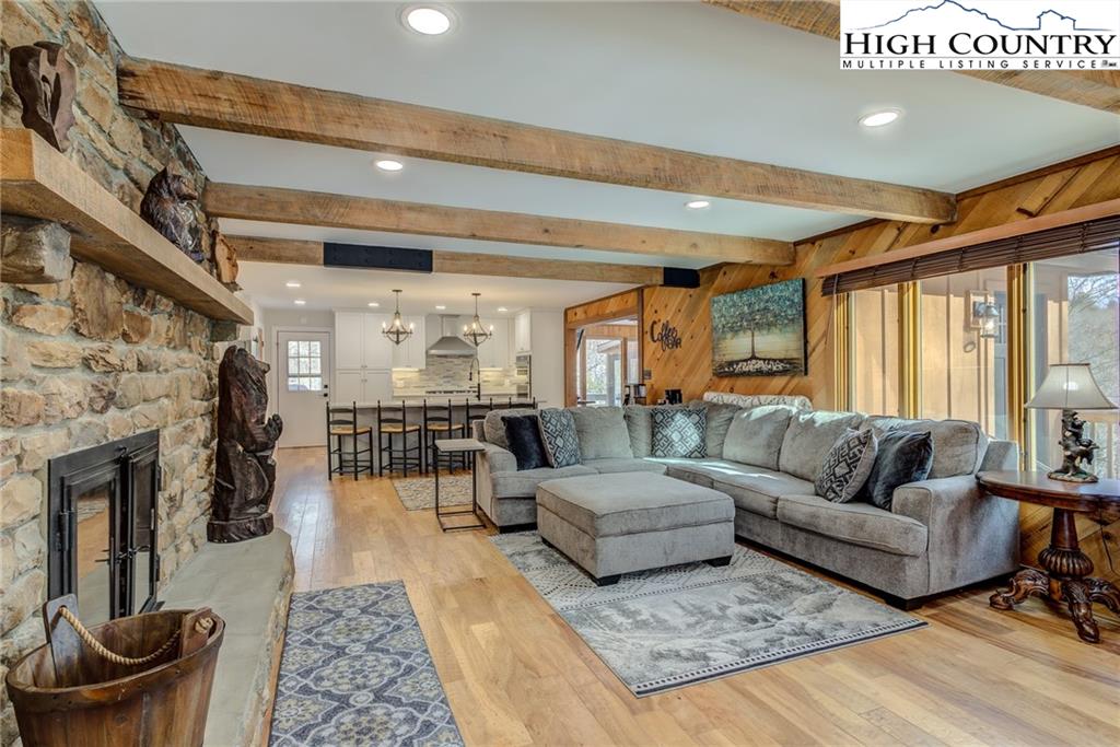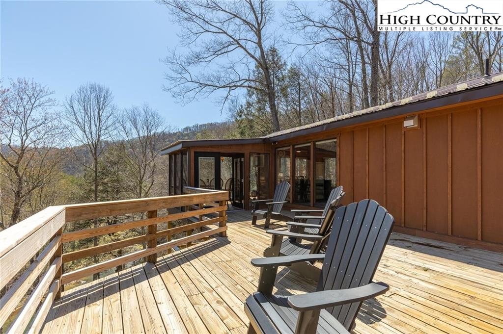 Experience breathtaking views of the Watauga River and nearby mountains while relaxing on 5.45 acres of pure cliffside bliss with over 430 feet of private river frontage! This beautiful 3-bedroom, 3.5-bath home was renovated in Spring 2023 and is the ultimate mountain retreat, delivering captivating views, hiking trails, 3 fire pits, a hot tub, game room, and so much more. Enter to a cozy front sitting room complete with a striking stone fireplace. The thoughtfully designed kitchen features custom cabinets, quartz countertops, stainless steel appliances, a walk-in pantry, and plenty of space to gather, meal prep, and entertain. The dining room and den are outfitted with expansive windows offering stunning views of the river below. Spend the days basking in the sun on your main floor decks or enjoy the breeze from your screened porch. The main floor includes two primary bedroom suites with ensuite bathrooms. One bedroom suite has a private deck and ensuite bath with a soaking tub, separate shower, double vanity with granite countertop, and a large walk-in closet. The 2nd bedroom suite has a walk-in closet and ensuite bath with a shower and double vanity. The laundry room, a half-bath, and an office with private entry are also on this level for one level living. Downstairs, you'll find a 3rd large bedroom with hallway access to a full bath with shower and double vanity. Downstairs also includes a bonus room outfitted with a custom bunk space, and a large game room decked out with ping pong, an arcade game, card table, and games galore! Outside on the covered patio, relax and soak in the hot tub while taking in the mountain and river views. Head down to the riverfront or the overlook point to enjoy a fire with the shimmering water in the background. Fantastic investment opportunity! The sellers worked with licensed contractors for renovations and to convert the old garage and laundry room into the front bedroom and bath but did not pull permits. A detached garage with 2nd floor heated area & unheated basement area could be finished out for more living space. The house sits up on the hill outside of the flood zone and the land is unrestricted. Plus, this peaceful retreat is just 17 min to Boone and 17 min to Watauga Lake! Launch your kayak from your backyard and enjoy river breezes all day long. Spend the afternoon exploring the nearby hiking trail that leads to a gorgeous waterfall or explore the exclusive trails on your property. Experience a quieter kind of wild - private waterfront living with all the serenity and none of the crowds. Come see this amazingly versatile mountain retreat!