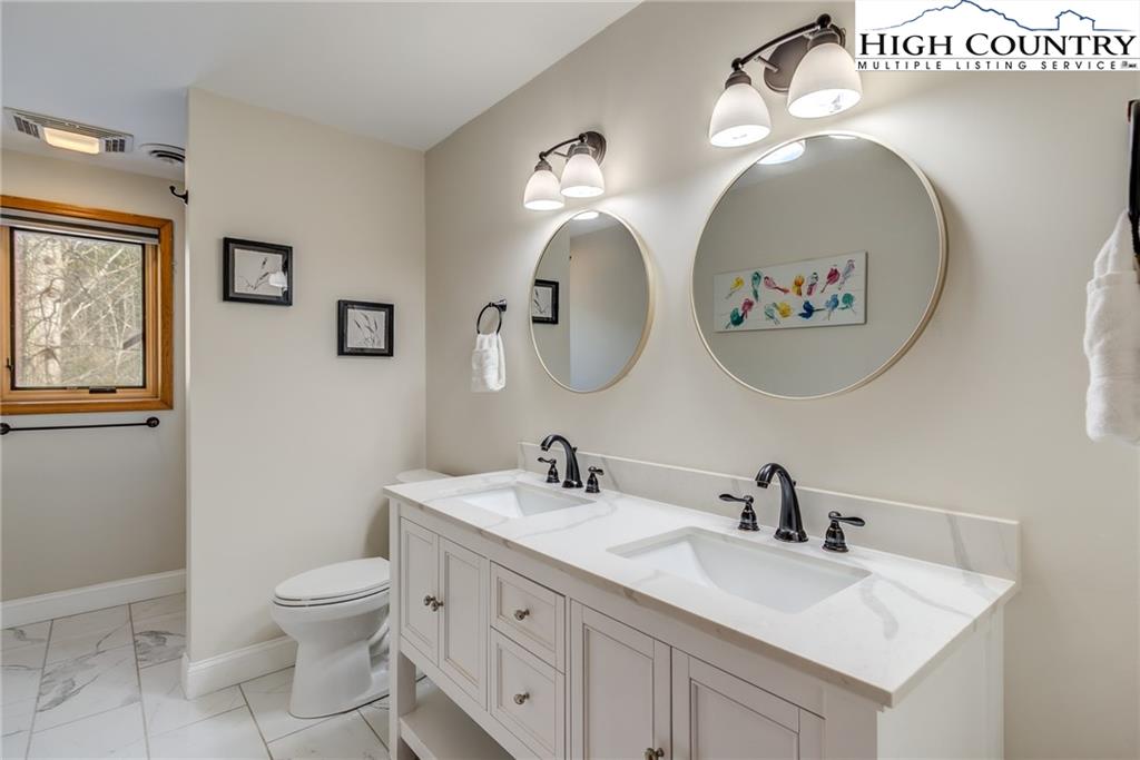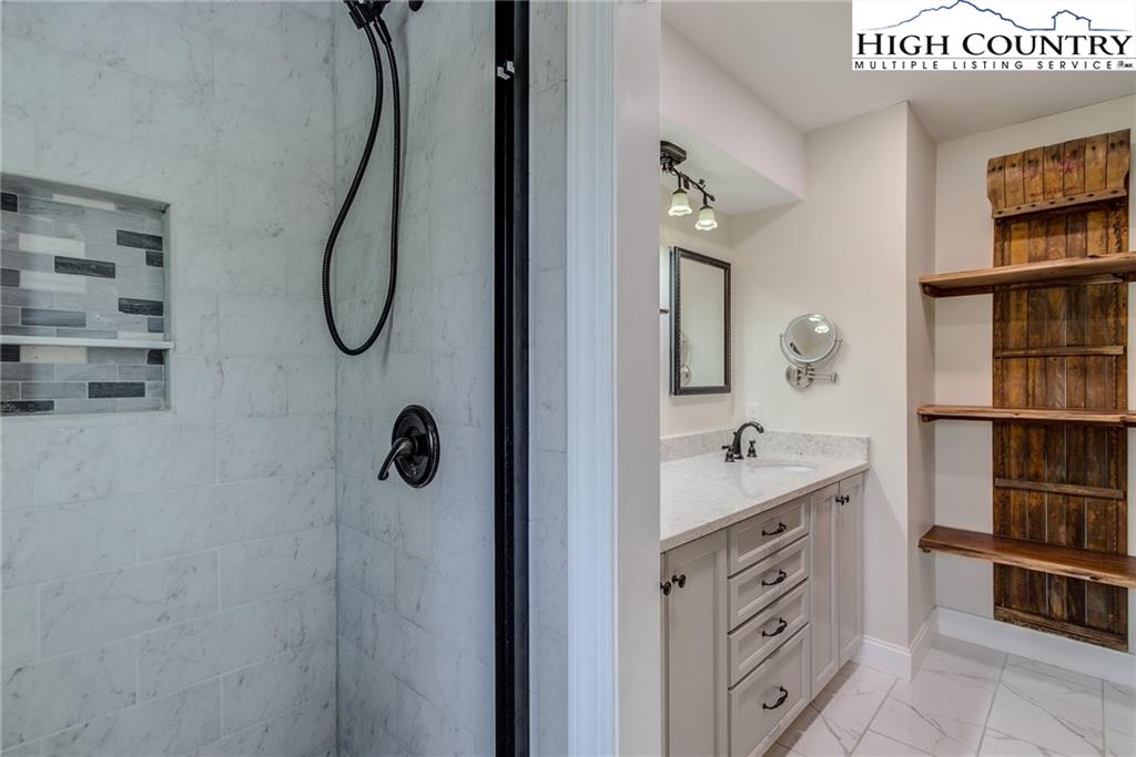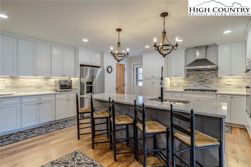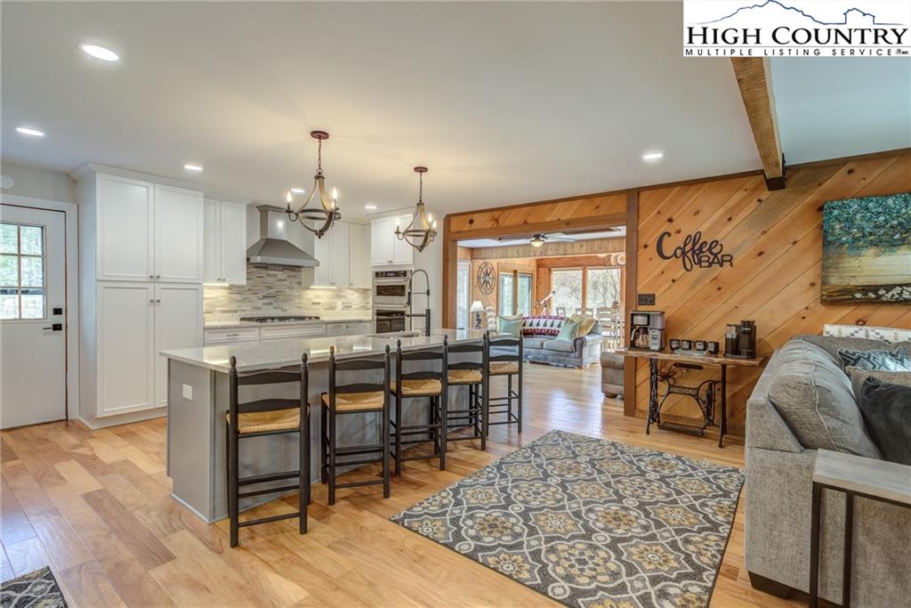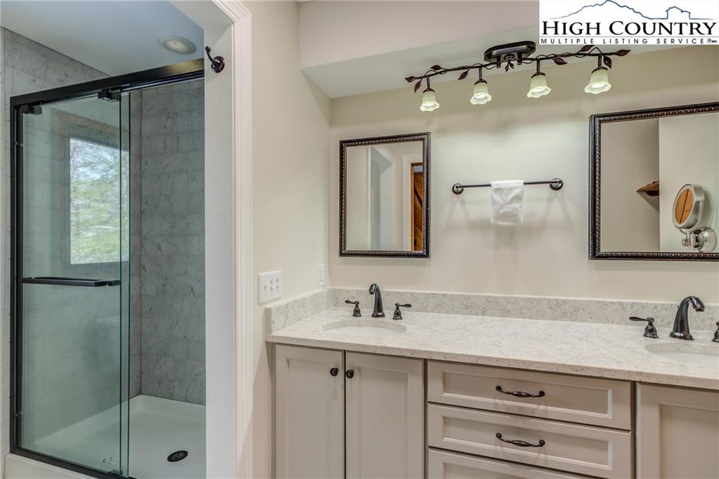 Experience breathtaking views of the Watauga River and nearby mountains while relaxing on 5.45 acres of pure cliffside bliss with over 430 feet of private river frontage! This beautiful 3-bedroom, 3.5-bath home was renovated in Spring 2023 and is the ultimate mountain retreat, delivering captivating views, hiking trails, 3 fire pits, a hot tub, game room, and so much more. Enter to a cozy front sitting room complete with a striking stone fireplace. The thoughtfully designed kitchen features custom cabinets, quartz countertops, stainless steel appliances, a walk-in pantry, and plenty of space to gather, meal prep, and entertain. The dining room and den are outfitted with expansive windows offering stunning views of the river below. Spend the days basking in the sun on your main floor decks or enjoy the breeze from your screened porch. The main floor includes two primary bedroom suites with ensuite bathrooms. One bedroom suite has a private deck and ensuite bath with a soaking tub, separate shower, double vanity with granite countertop, and a large walk-in closet. The 2nd bedroom suite has a walk-in closet and ensuite bath with a shower and double vanity. The laundry room, a half-bath, and an office with private entry are also on this level for one level living. Downstairs, you'll find a 3rd large bedroom with hallway access to a full bath with shower and double vanity. Downstairs also includes a bonus room outfitted with a custom bunk space, and a large game room decked out with ping pong, an arcade game, card table, and games galore! Outside on the covered patio, relax and soak in the hot tub while taking in the mountain and river views. Head down to the riverfront or the overlook point to enjoy a fire with the shimmering water in the background. Fantastic investment opportunity! The sellers worked with licensed contractors for renovations and to convert the old garage and laundry room into the front bedroom and bath but did not pull permits. A detached garage with 2nd floor heated area & unheated basement area could be finished out for more living space. The house sits up on the hill outside of the flood zone and the land is unrestricted. Plus, this peaceful retreat is just 17 min to Boone and 17 min to Watauga Lake! Launch your kayak from your backyard and enjoy river breezes all day long. Spend the afternoon exploring the nearby hiking trail that leads to a gorgeous waterfall or explore the exclusive trails on your property. Experience a quieter kind of wild - private waterfront living with all the serenity and none of the crowds. Come see this amazingly versatile mountain retreat!