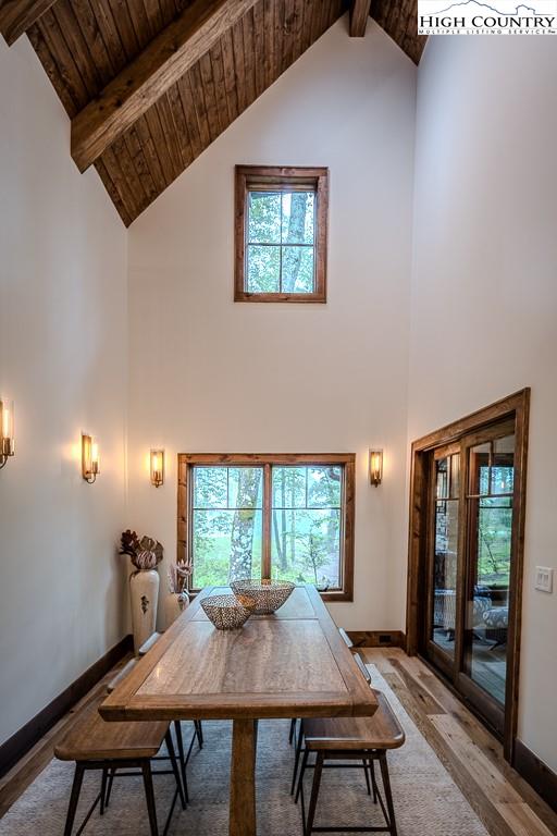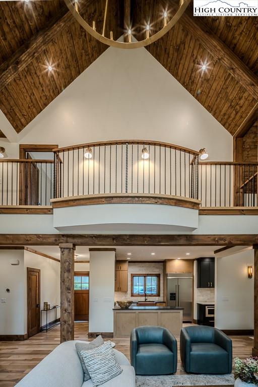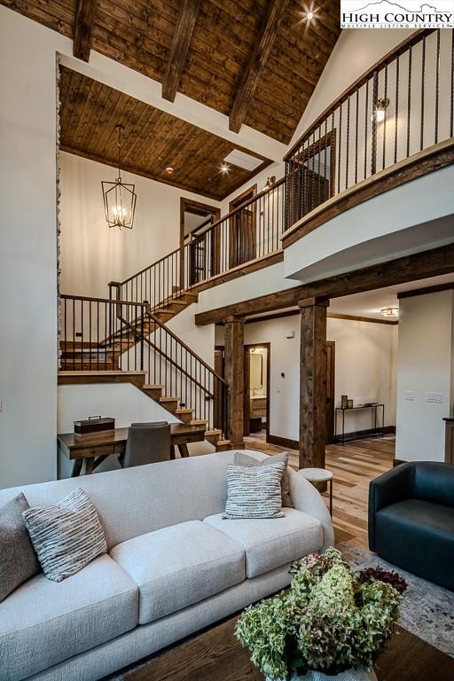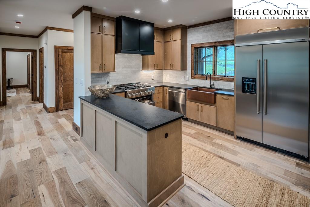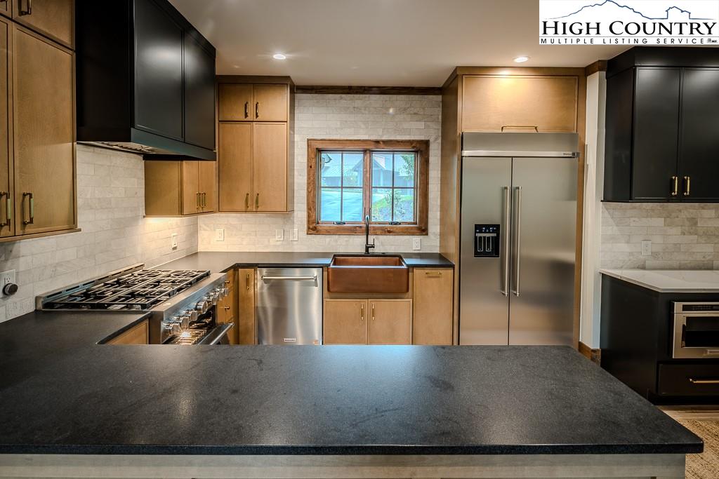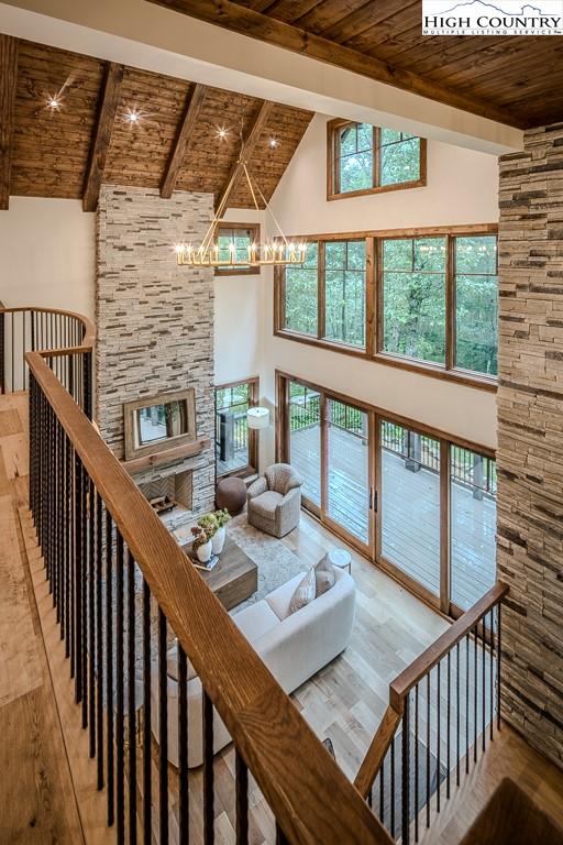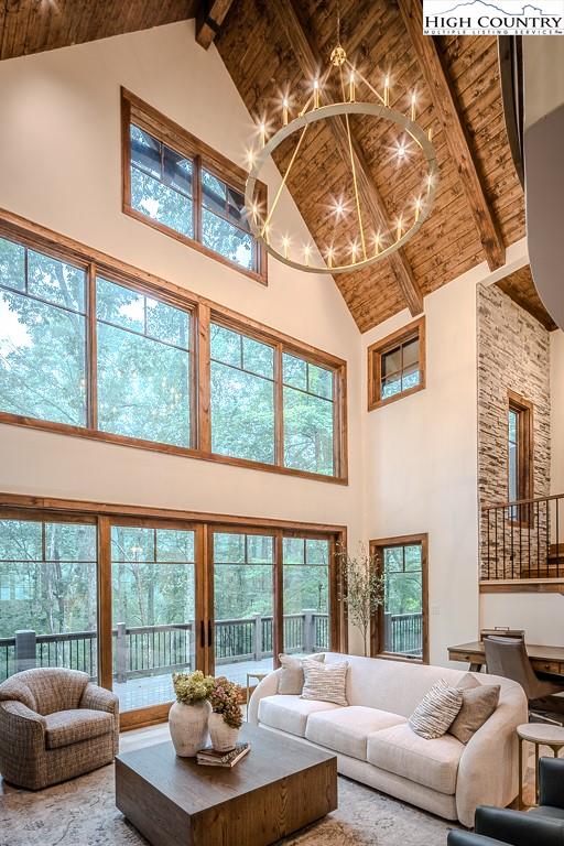 GORGEOUS BRAND NEW MOUNTAIN HOUSE AT BEAUTIFUL SWEETGRASS, BLOWING ROCK'S MOUNTAIN LAKE COMMUNITY! Just completed, this stunning home features dramatic vaulted spaces, well-used architectural timbers and materials and a very livable floor plan. Just steps away from the 22-acre Lake and Community Lake House and Fitness Center. Three handsome fireplaces including one on the covered deck. Very spacious rooms! One-level living but with room for all your guests. Large family room downstairs has its own fireplace, wine cooler, icemaker, and direct access to the stone patio and gentle back yard. All bedrooms are large. Lower level features an office/bonus room with direct access to the stone patio. Yard slopes down to one of Sweetgrass's wonderful walking trails along Boone Fork Creek. Furnishings package is available.