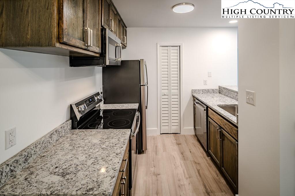 A rare opportunity! A two bedroom, two bath FULLY REMODELED Sugar Mountain condo for just $229,000! Due to a leak from an upstairs unit, the sellers took this condo down to the studs and back again! This Misty Woods condo also has LEVEL entry by driving around the side of the building to its own parking pad. A large private back deck that has been freshly stained. Wood burning fireplace. Short term rental allowed. The Association replaced the building's roof last month. New WINDOWS, new kitchen counters, cabinets and appliances, new flooring, new electric baseboard, new bathrooms and freshly painted and stained! The 4,600 elevation will provide welcome relief from warm temperatures elsewhere! Outside storage closet. Misty Woods puts you close to skiing, golf, tennis, hiking, Banner Elk, the Blue Ridge Parkway, Grandfather Mountain State Park and so much more! Quarterly dues of $926 include Spectrum internet and over 80 TV channels.