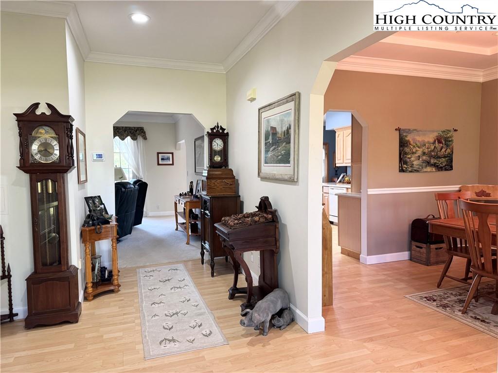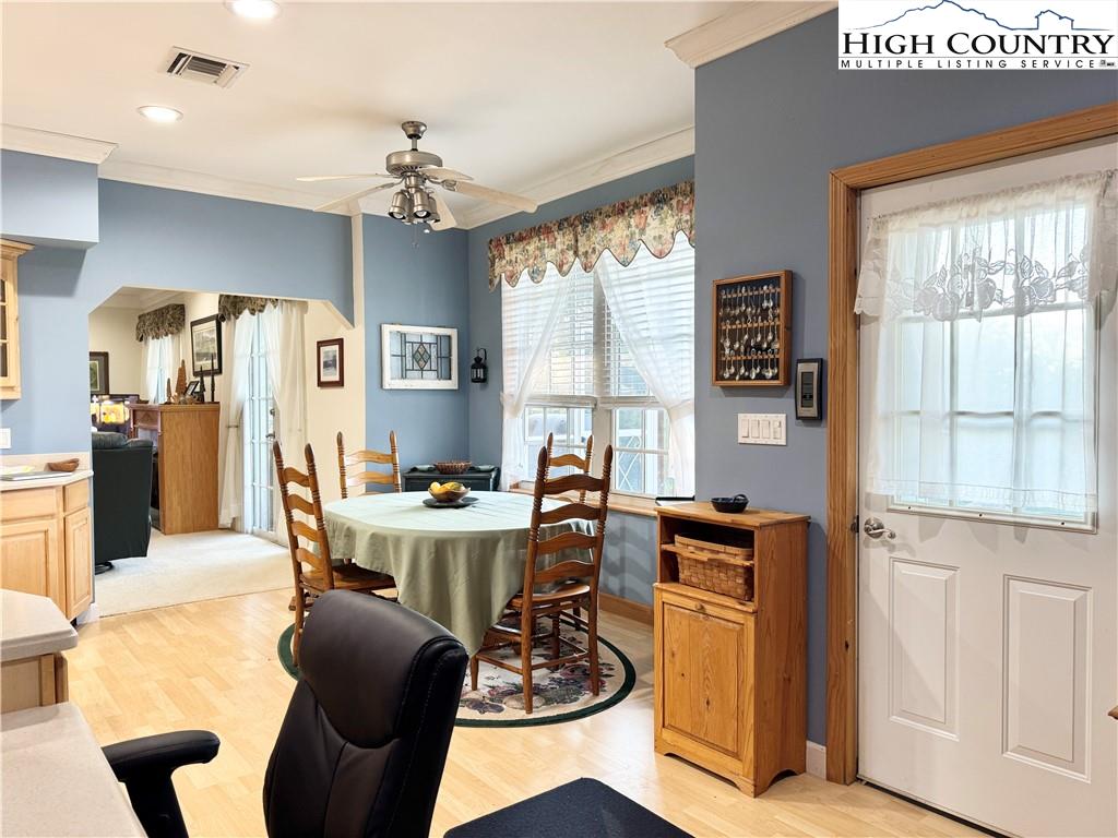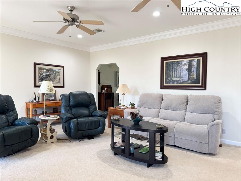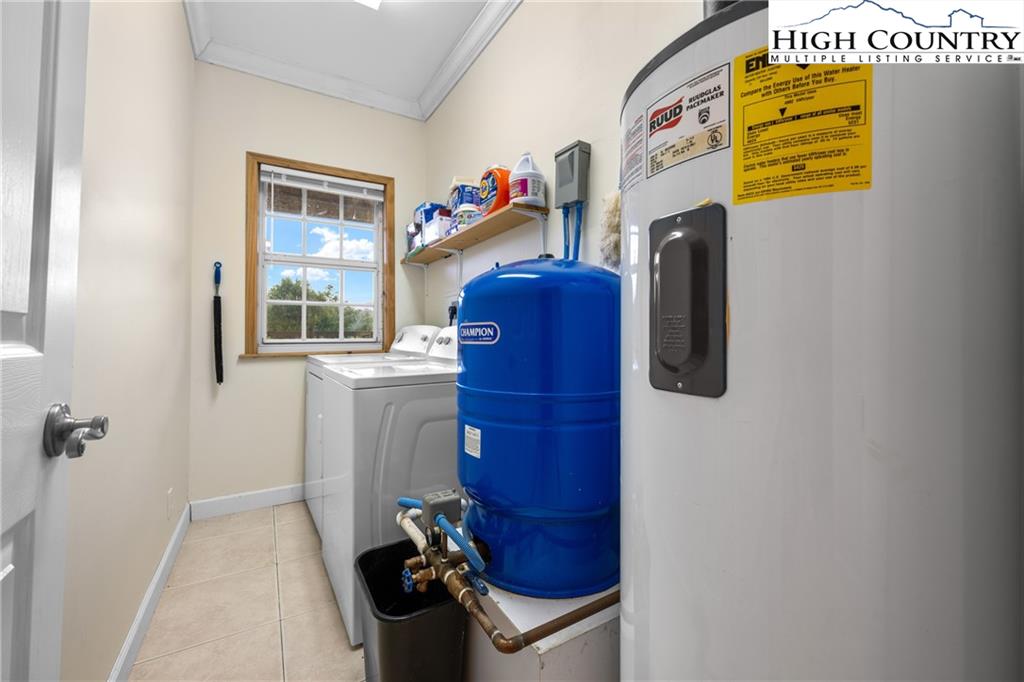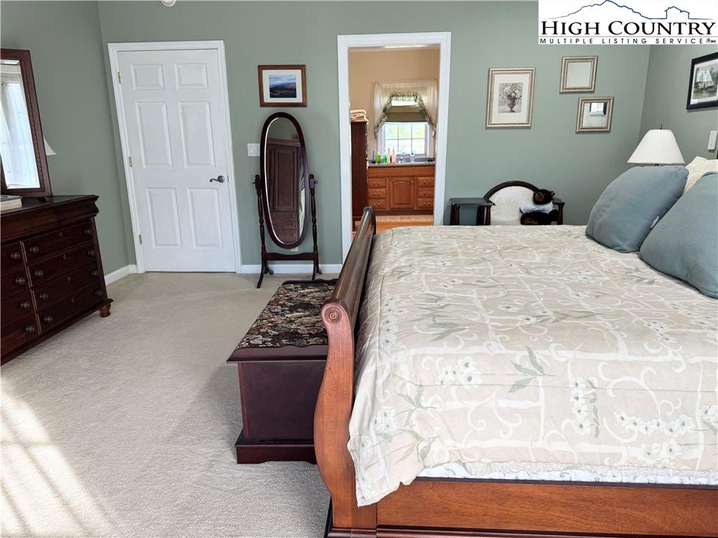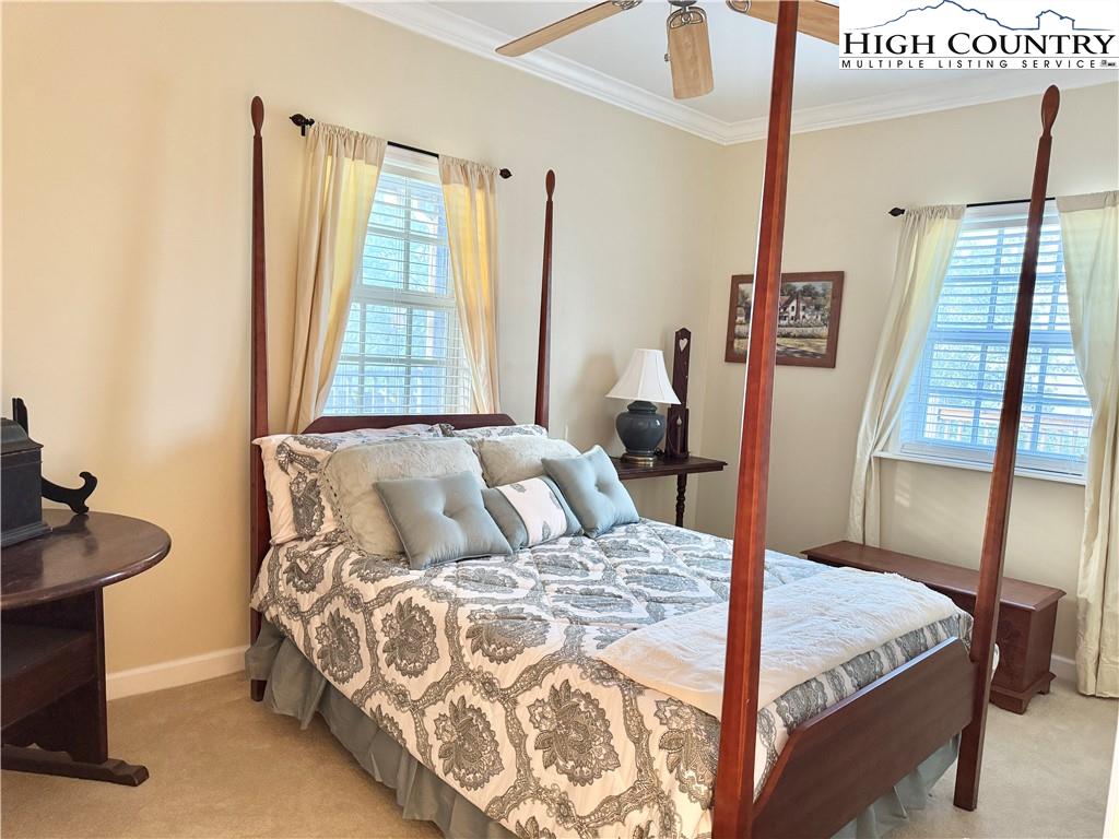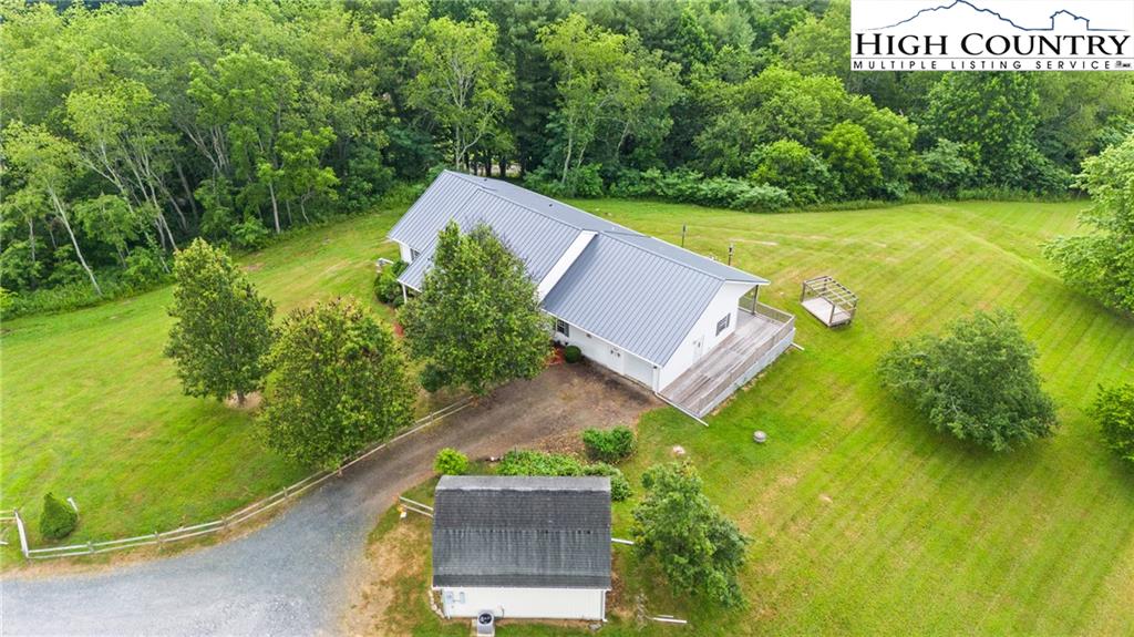 Under the recently installed metal roof, this beautifully designed and fully furnished home offers a warm, inviting atmosphere and a thoughtfully planned layout that welcomes you the moment you step inside. The home features a spacious kitchen with ample cabinet and counter space, well-suited for cooking and entertaining. A spacious living area with a cozy gas log fireplace along with four spacious bedrooms and three full bathrooms, the home is arranged in a split-bedroom design with two bedrooms on each side—fitting for ensuring privacy and comfort for both family and guests. The primary suite serves as a serene retreat, complete with an intimate ensuite bath that includes a jetted soaking tub and a separate walk-in shower. Step outside to enjoy the expansive deck and peaceful backyard—just right for relaxing after a day spent exploring the nearby New River or hiking local trails. The two-story barn-style outbuilding is equipped with a dedicated HVAC heat pump and electricity on a separate meter, offering versatile potential for use as a recreation or entertainment space, guest accommodations, artist studio, or more. Water and sewer piping are already installed inside the structure, allowing for future connection by the buyer if desired. The home also features a two-car attached garage, convenient one-level living, and a range of modern amenities including central vacuum, security cameras, and fiber optic high-speed internet. For added convenience, each side of the home is equipped with its own hot water heater. Tucked away at the end of a quiet cul-de-sac, this property offers a blend of seclusion and accessibility. Located just a short drive from the charming towns of West Jefferson and Jefferson.