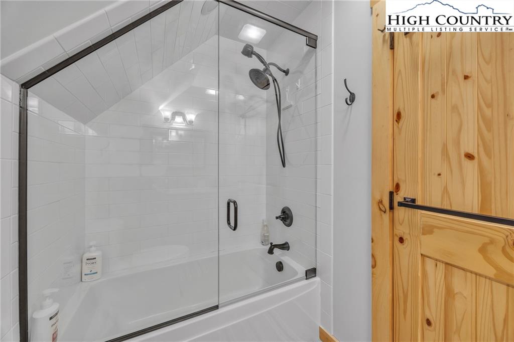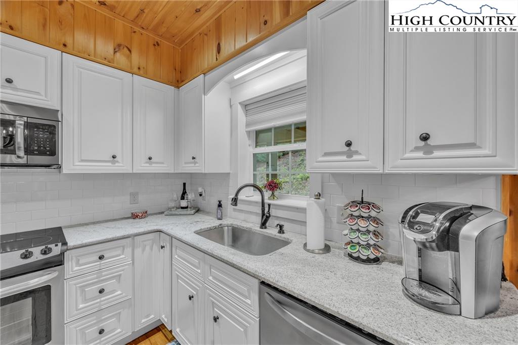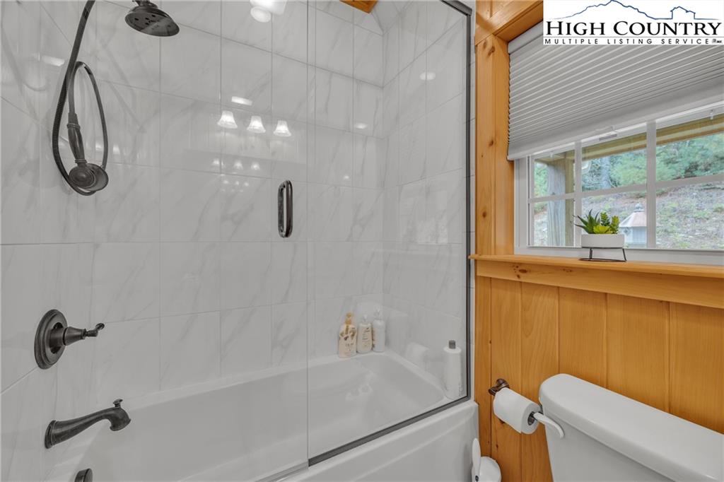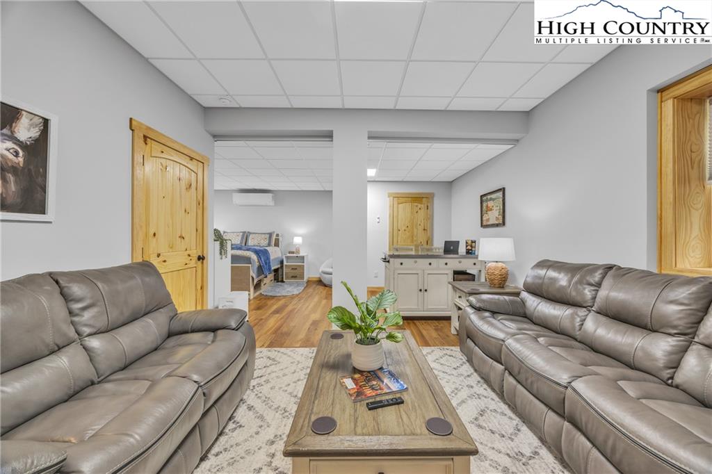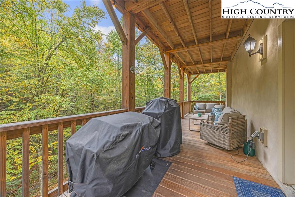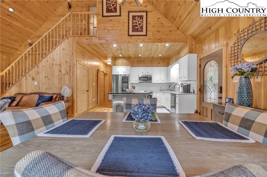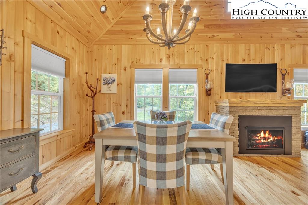 Immaculately maintained and tastefully decorated, this fully furnished 3BR/3BA mountain-style home is move-in ready—ideal as a primary residence, vacation retreat, or short- or long-term rental. A peaceful creek (not in flood zone) flows behind the house, providing serene sounds and a wooded setting that invites relaxation. Inside, discover gorgeous hardwood floors, light-filled tongue-and-groove walls and ceilings, and an open floor plan. The great room boasts a cathedral ceiling, a stunning stone veneer fireplace with gas logs, and a custom wood mantel. The updated kitchen features two-tone cabinetry, granite countertops, a spacious island, and stainless-steel appliances (note: the current refrigerator will be replaced). The main level includes the primary bedroom, full bath, and laundry, while a loft provides a second bedroom and bath. The walkout basement, recently finished, adds over 900 sq. ft. of heated living space including a family area, third bedroom, full bath, and double walk-in closets. Thoughtful upgrades include premium LVP flooring, dropped ceiling tiles, full insulation, and a new ductless mini-split heat pump. The basement opens to a private outdoor area along the creek. Outdoor living is exceptional with three levels of covered porches. The main-level screened porch is wired for surround sound, features a mounted TV, decorative lighting, and aluminum framing—perfect for entertaining. Railroad tie steps lead to the lower yard, enhanced by selective tree removal. Set on three combined lots, this property offers rare concealment with only a few neighboring homes. Abundant nearby trails and riding areas provide hiking and side-by-side adventures without hitting the highway. Parking is versatile: the existing area fits three cars, with additional space on the grassy area by the porch or along a dead-end path to the power lines for large trailers. Located just five minutes from the New River Access Park, this home perfectly combines mountain charm, privacy, thoughtful upgrades, and outdoor enjoyment. Fully furnished