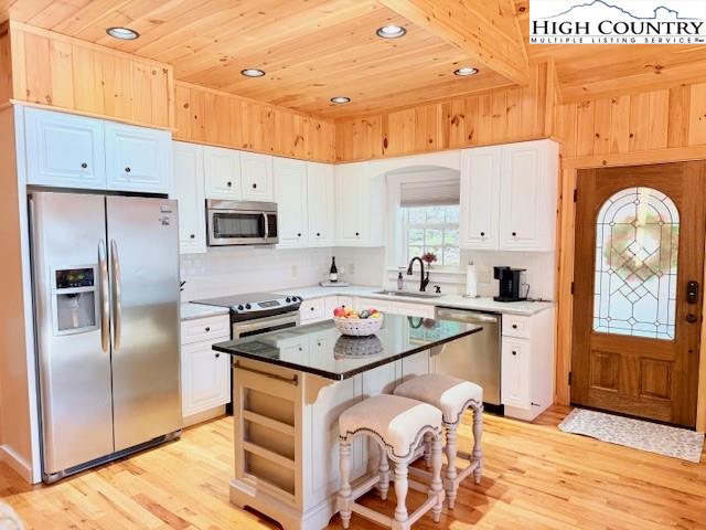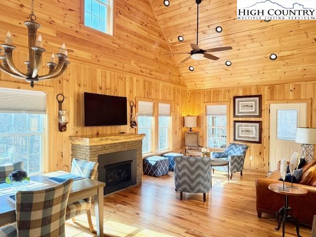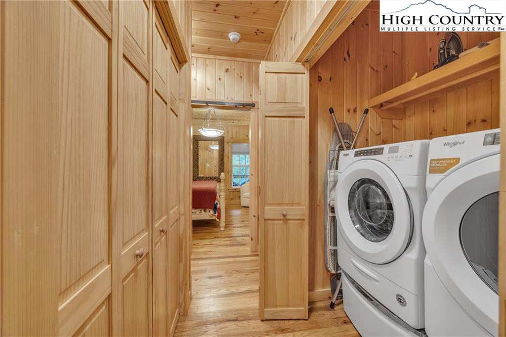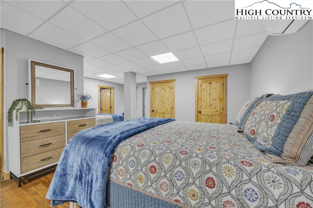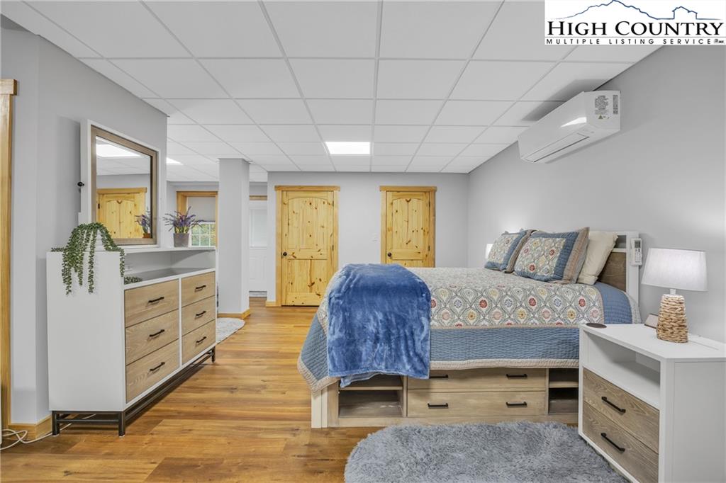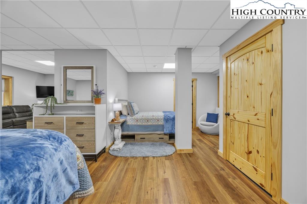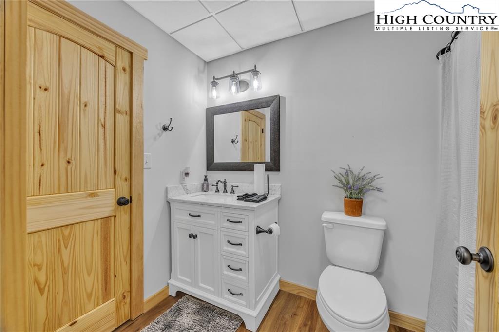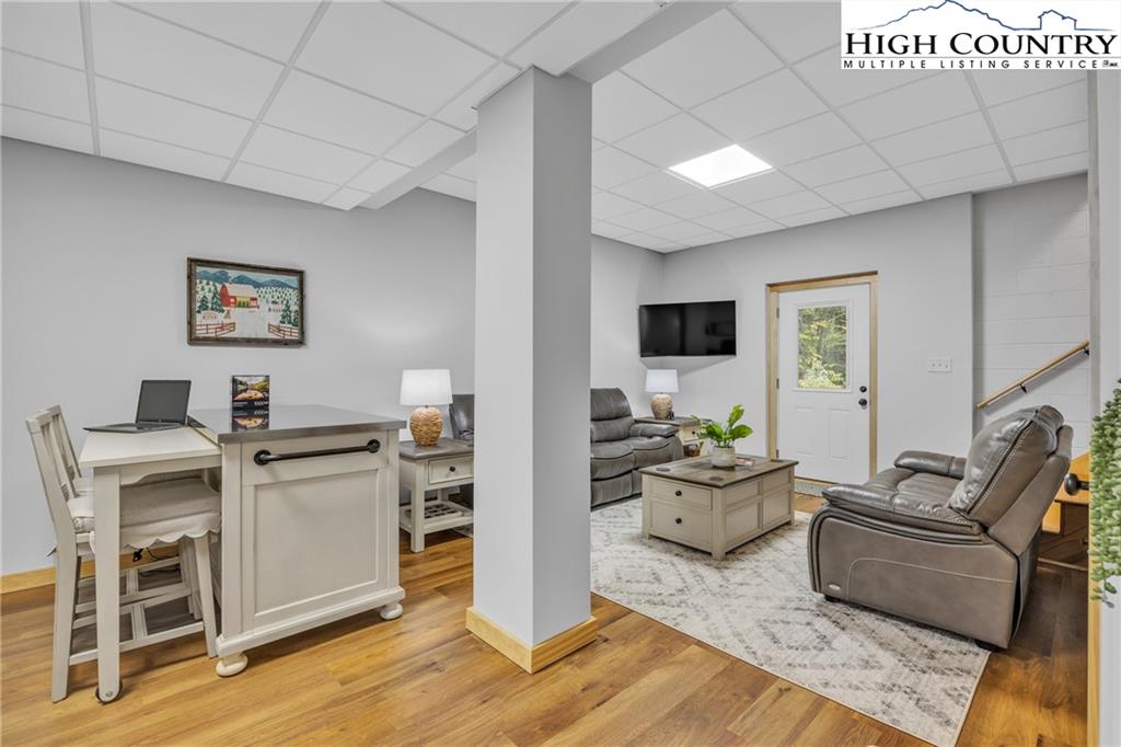 Immaculately maintained and tastefully decorated, this fully furnished 3BR/3BA mountain-style home is move-in ready—ideal as a primary residence, vacation retreat, or short- or long-term rental. A peaceful creek (not in flood zone) flows behind the house, providing serene sounds and a wooded setting that invites relaxation. Inside, discover gorgeous hardwood floors, light-filled tongue-and-groove walls and ceilings, and an open floor plan. The great room boasts a cathedral ceiling, a stunning stone veneer fireplace with gas logs, and a custom wood mantel. The updated kitchen features two-tone cabinetry, granite countertops, a spacious island, and stainless-steel appliances (note: the current refrigerator will be replaced). The main level includes the primary bedroom, full bath, and laundry, while a loft provides a second bedroom and bath. The walkout basement, recently finished, adds over 900 sq. ft. of heated living space including a family area, third bedroom, full bath, and double walk-in closets. Thoughtful upgrades include premium LVP flooring, dropped ceiling tiles, full insulation, and a new ductless mini-split heat pump. The basement opens to a private outdoor area along the creek. Outdoor living is exceptional with three levels of covered porches. The main-level screened porch is wired for surround sound, features a mounted TV, decorative lighting, and aluminum framing—perfect for entertaining. Railroad tie steps lead to the lower yard, enhanced by selective tree removal. Set on three combined lots, this property offers rare concealment with only a few neighboring homes. Abundant nearby trails and riding areas provide hiking and side-by-side adventures without hitting the highway. Parking is versatile: the existing area fits three cars, with additional space on the grassy area by the porch or along a dead-end path to the power lines for large trailers. Located just five minutes from the New River Access Park, this home perfectly combines mountain charm, privacy, thoughtful upgrades, and outdoor enjoyment. Fully furnished