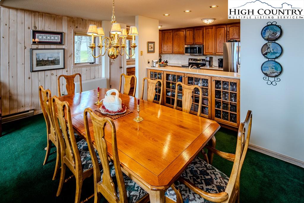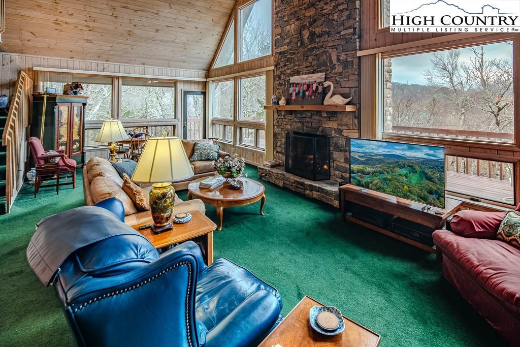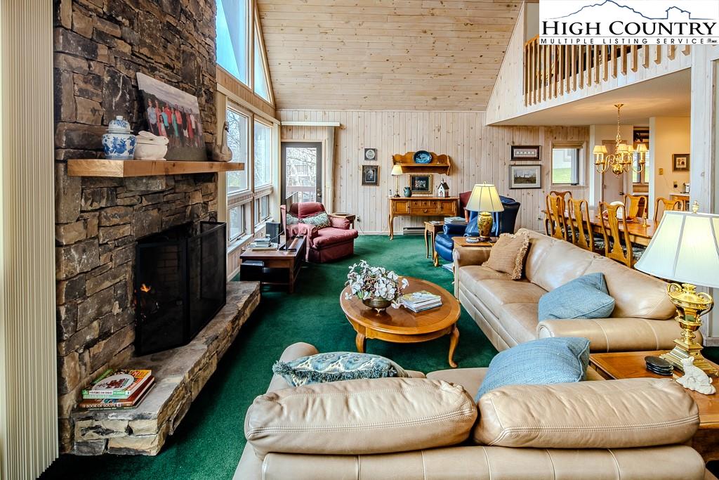 Walk to the Slopes! And at an INCREDIBLE price. Rare convenience with true walking distance to the slopes—just under 100 yards. This mountain getaway is packed with desirable features and boasts an unbeatable location with long-range views. OUTSTANDING rental potential. With three spacious levels, this home offers four bedrooms, two fireplaces, and a dramatic great room highlighted by a floor-to-ceiling stone fireplace and a wall of windows that fill the space with natural light. The open-concept design connects the cathedral T&G ceilings of the great room with a generously sized kitchen featuring stainless steel appliances and a pantry. Step outside to a wraparound deck—an ideal spot for summer entertaining and catching 4th of July fireworks. The main level includes two bedrooms, while the lower level offers a guest bedroom, full bath, family room, large laundry area, and abundant storage. Upstairs, the primary suite features a beautifully remodeled bath with heated floors, dual vanity, soaking tub, and separate shower. A spacious loft on this level makes a perfect office or reading nook with elevated views. CURRENT BEECH MOUNTAIN CLUB (A $25,000 SAVINGS, SOON TO BE $35,000) membership offers access to amenities including an 18-hole golf course, tennis courts, numerous pickleball courts, a 24-hour fitness center, day camps, an outdoor pool, and a slopeside clubhouse. Easy walk to Fred's and the many town events. Whether you're seeking a year-round mountain retreat or a smart investment property, this home is a standout choice!