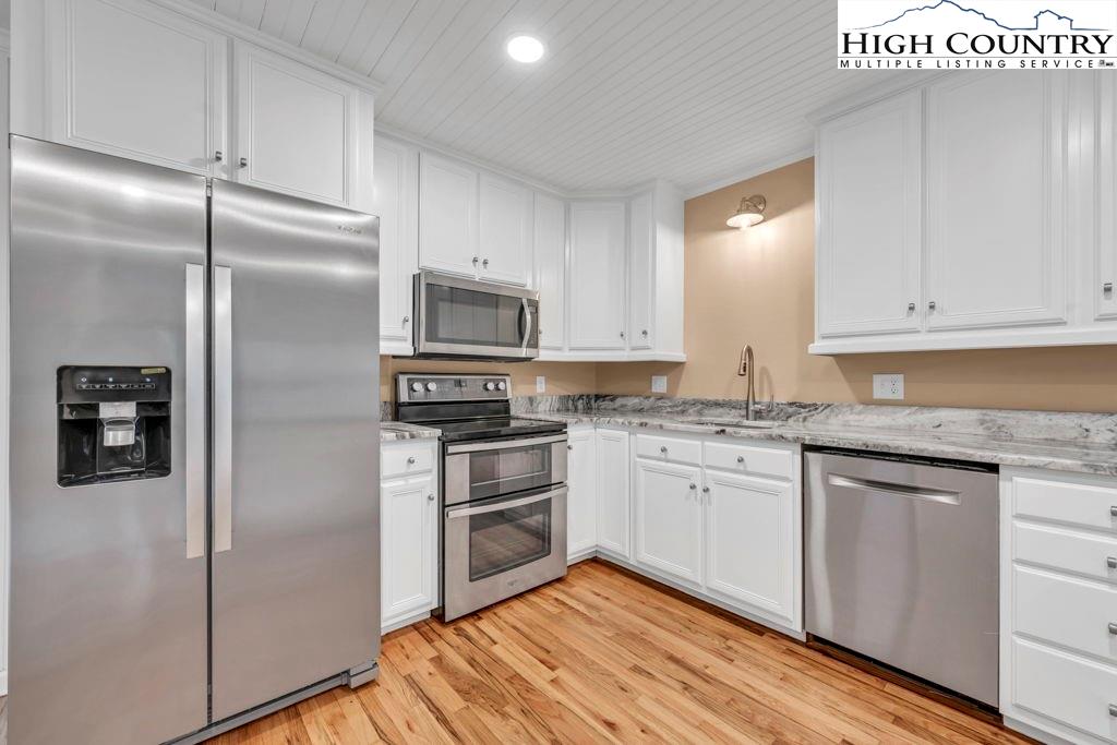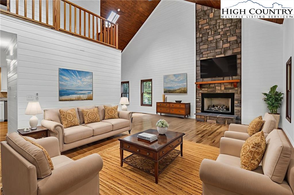 Tucked away on 1.7 private acres in Valle Crucis, this newly renovated mountain home blends modern updates with rustic charm. Offering 4 bedrooms and 3.5 baths, the home is surrounded by mature landscaping and peaceful natural beauty, creating a retreat-like setting. Recent improvements include new flooring, updated appliances, and a brand-new roof, making this a move-in-ready opportunity that allows you to personalize and furnish the space to suit your lifestyle. Inside, the home shines with shiplap walls, warm wood ceilings, skylights, and an open-concept design filled with natural light from expansive windows. The thoughtfully designed floor plan features generously sized bedrooms on multiple levels, providing flexibility for guest suites, home offices, or spaces where everyone can spread out comfortably. The oversized lower-level playroom or game room adds even more versatility—perfect for entertaining, recreation, or a media space. Outdoor living is just as inviting, with wide covered porches, ample yard space for kids or pets, and the privacy of your own wooded surroundings. Located in a quiet neighborhood just minutes from historic Valle Crucis, within the Valle Crucis School District, and a short drive to downtown Boone, this home offers the ideal balance of tranquility and convenience. Come experience the warmth, character, and mountain lifestyle this exceptional Valle Crucis property has to offer. Virtually Staged Photos.