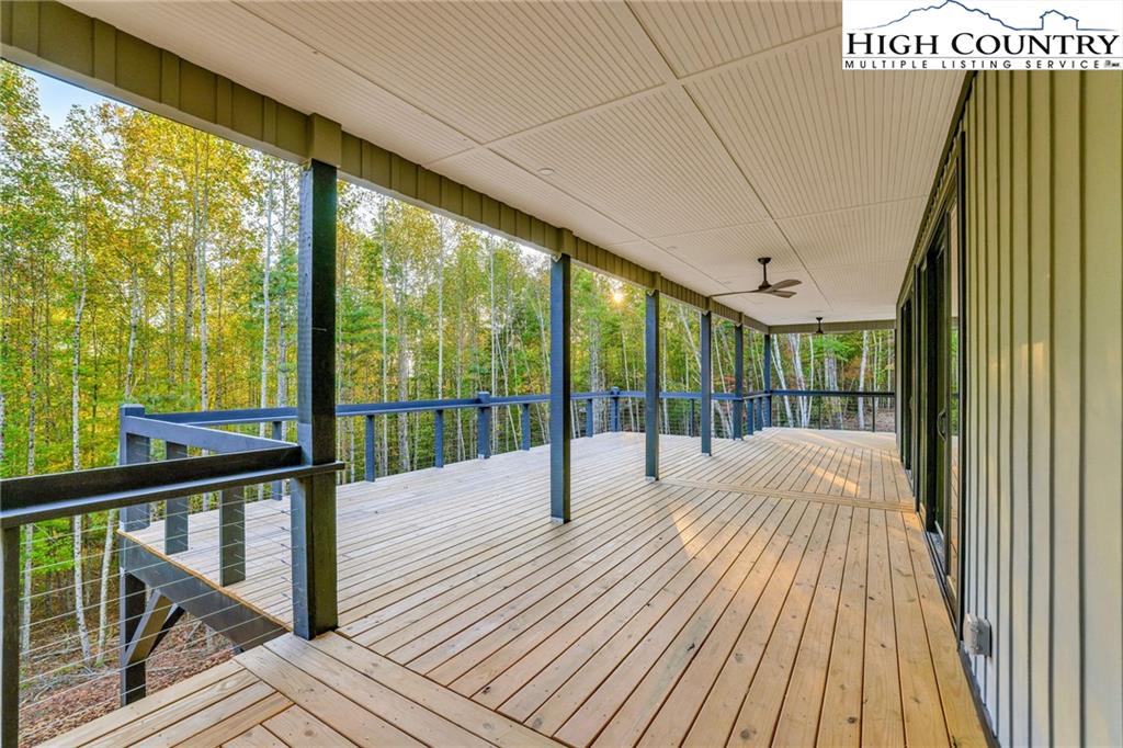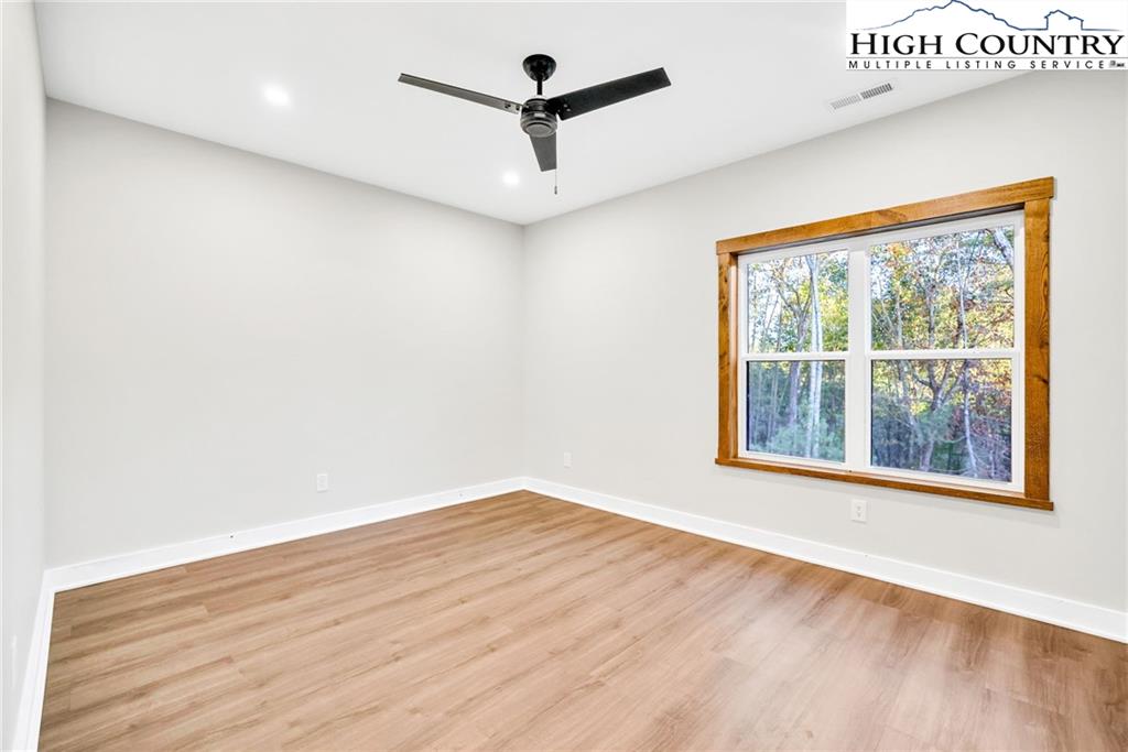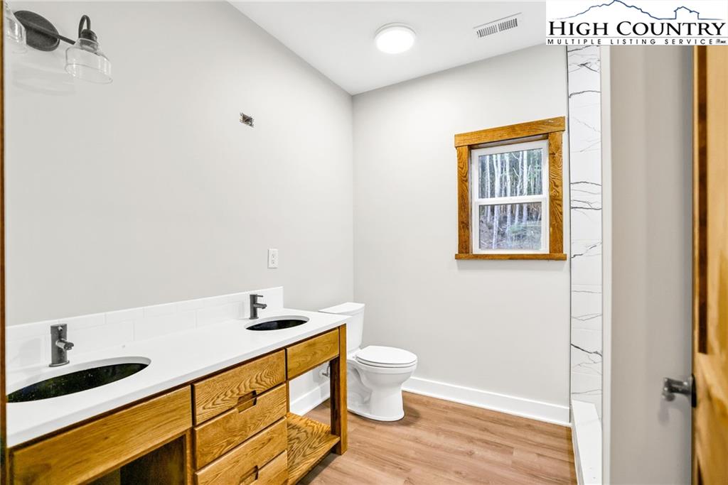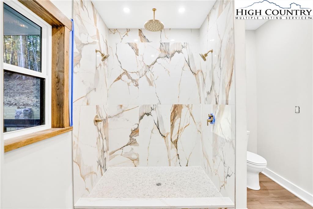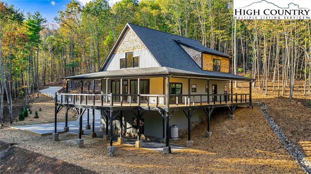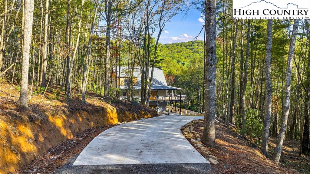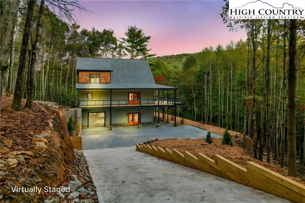 New Construction – Just Completed! Discover this stunning mountain craftsman-style home, tucked privately off the road in Southern Ashe County—just 20 minutes to Boone and 15 minutes to downtown West Jefferson. Designed for both comfort and entertaining, this home offers a private wooded oasis with nearly 1,800 SF of covered porches and open decking plus a large concrete paver parking pad with space for four vehicles. Step inside to find custom wood features throughout, including a soaring grand ceiling in the great room and a dramatic oak light fixture above the oversized kitchen island. The home is bathed in natural light thanks to its southwest orientation, abundant windows, and over 20 feet of sliding glass doors leading to the outdoor living areas. The gourmet kitchen features custom oak cabinetry milled from the property, quartz countertops, an oversized gas range, Bosch dishwasher, instant hot water, and LED under-shelf lighting. A walk-in pantry with sink and a spacious laundry room with sink are conveniently located just off the main-level primary suite. The main-level primary suite boasts a spa-like bath with a custom tile shower (three shower heads and multiple controls), double vanity, linen closet, and large walk-in closet. Upstairs, a loft sitting area overlooks the dramatic wall of windows and leads to two additional bedrooms, a large storage closet, and a full bath with custom shower and double vanities. The lower level offers a den perfect for a theater room with wet bar, another full bath, additional storage, mechanical room, and an oversized one-car garage. Additional highlights include Wireless sound system with speakers in the primary suite, primary bath, living room, basement, and porches, Mahogany front entry doors, Zero-maintenance aluminum-clad 8x10 sliding glass doors, LVT flooring throughout, Custom oak trim and door frame's milled from the property and multiple retaining walls and outdoor spaces perfect for a firepit, garden, or pet enclosure. This thoughtfully crafted home is truly a mountain oasis, blending natural beauty with modern luxury. Come experience it for yourself!