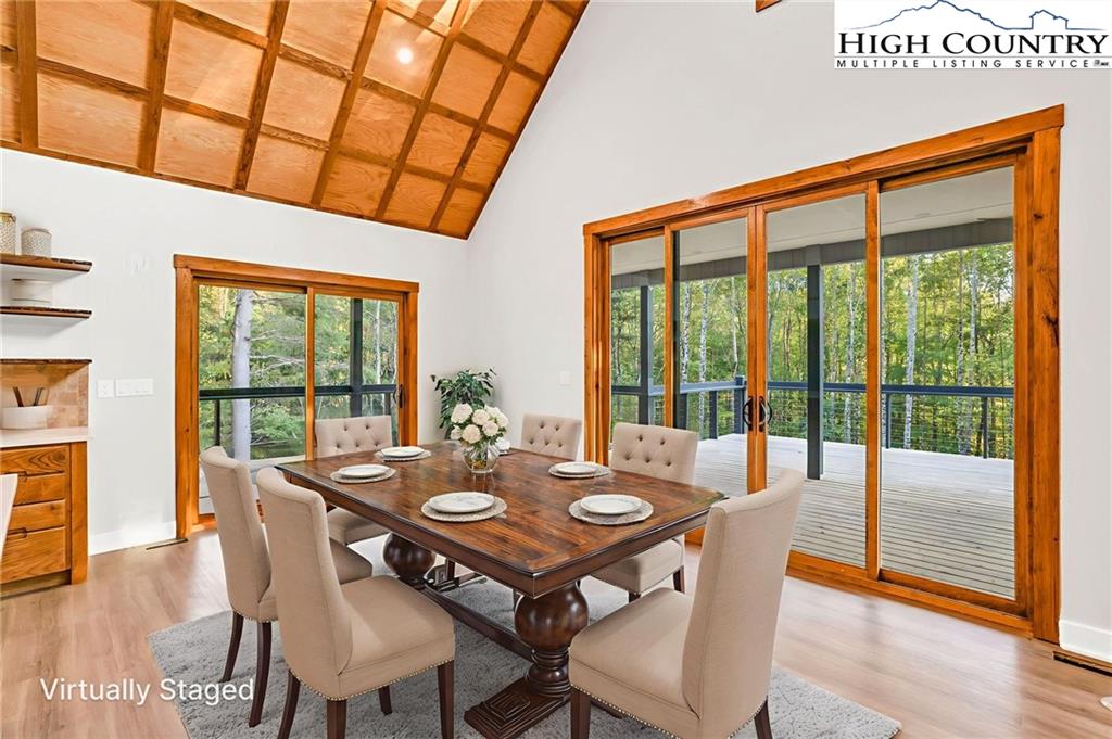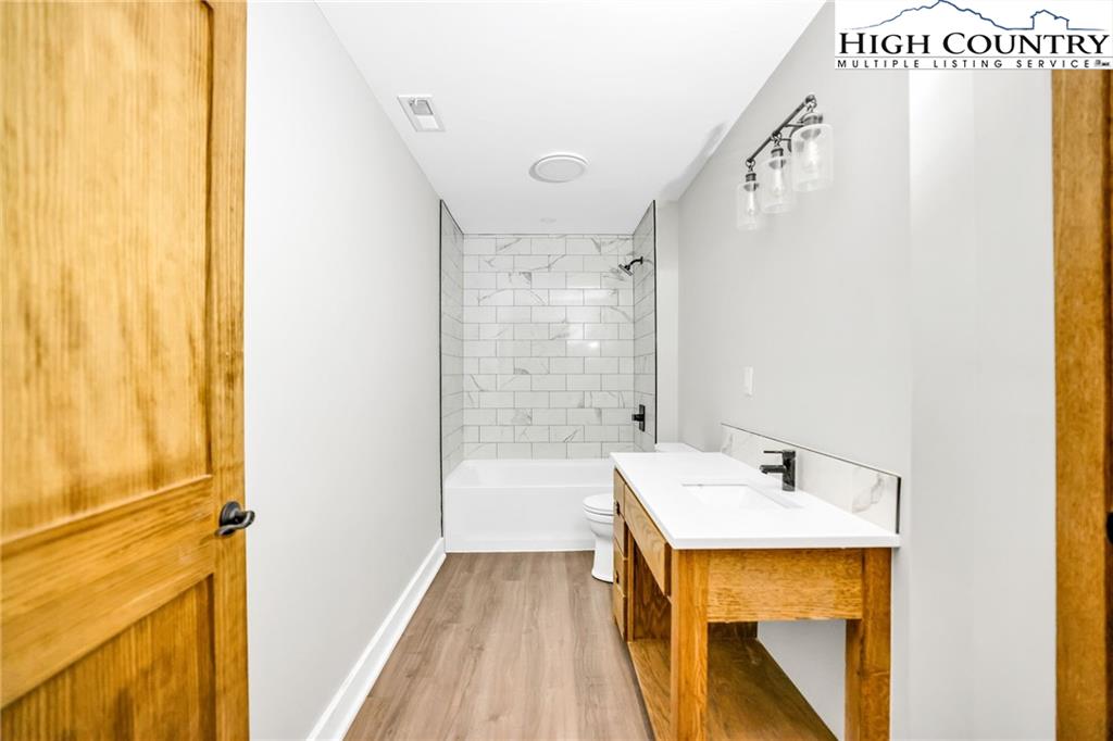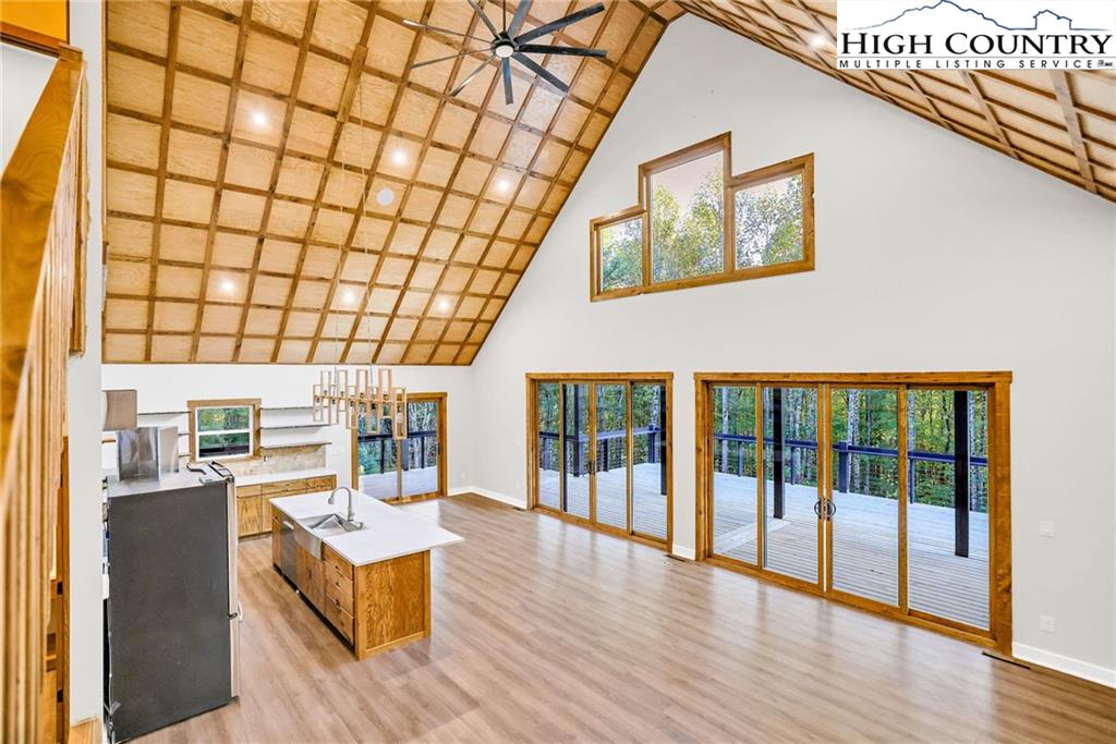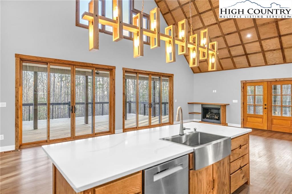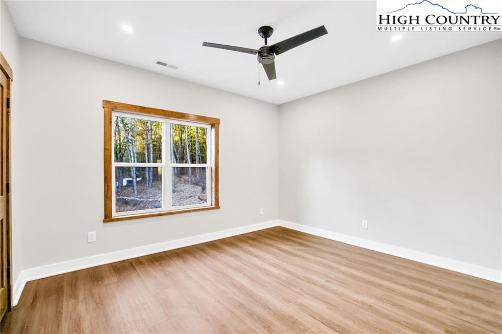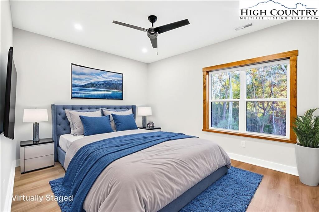 New Construction – Just Completed! Discover this stunning mountain craftsman-style home, tucked privately off the road in Southern Ashe County—just 20 minutes to Boone and 15 minutes to downtown West Jefferson. Designed for both comfort and entertaining, this home offers a private wooded oasis with nearly 1,800 SF of covered porches and open decking plus a large concrete paver parking pad with space for four vehicles. Step inside to find custom wood features throughout, including a soaring grand ceiling in the great room and a dramatic oak light fixture above the oversized kitchen island. The home is bathed in natural light thanks to its southwest orientation, abundant windows, and over 20 feet of sliding glass doors leading to the outdoor living areas. The gourmet kitchen features custom oak cabinetry milled from the property, quartz countertops, an oversized gas range, Bosch dishwasher, instant hot water, and LED under-shelf lighting. A walk-in pantry with sink and a spacious laundry room with sink are conveniently located just off the main-level primary suite. The main-level primary suite boasts a spa-like bath with a custom tile shower (three shower heads and multiple controls), double vanity, linen closet, and large walk-in closet. Upstairs, a loft sitting area overlooks the dramatic wall of windows and leads to two additional bedrooms, a large storage closet, and a full bath with custom shower and double vanities. The lower level offers a den perfect for a theater room with wet bar, another full bath, additional storage, mechanical room, and an oversized one-car garage. Additional highlights include Wireless sound system with speakers in the primary suite, primary bath, living room, basement, and porches, Mahogany front entry doors, Zero-maintenance aluminum-clad 8x10 sliding glass doors, LVT flooring throughout, Custom oak trim and door frame's milled from the property and multiple retaining walls and outdoor spaces perfect for a firepit, garden, or pet enclosure. This thoughtfully crafted home is truly a mountain oasis, blending natural beauty with modern luxury. Come experience it for yourself!