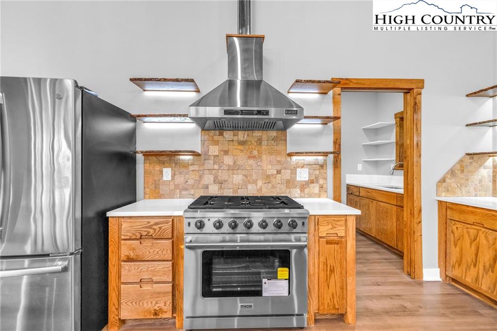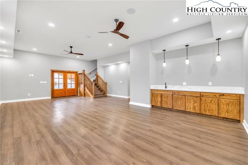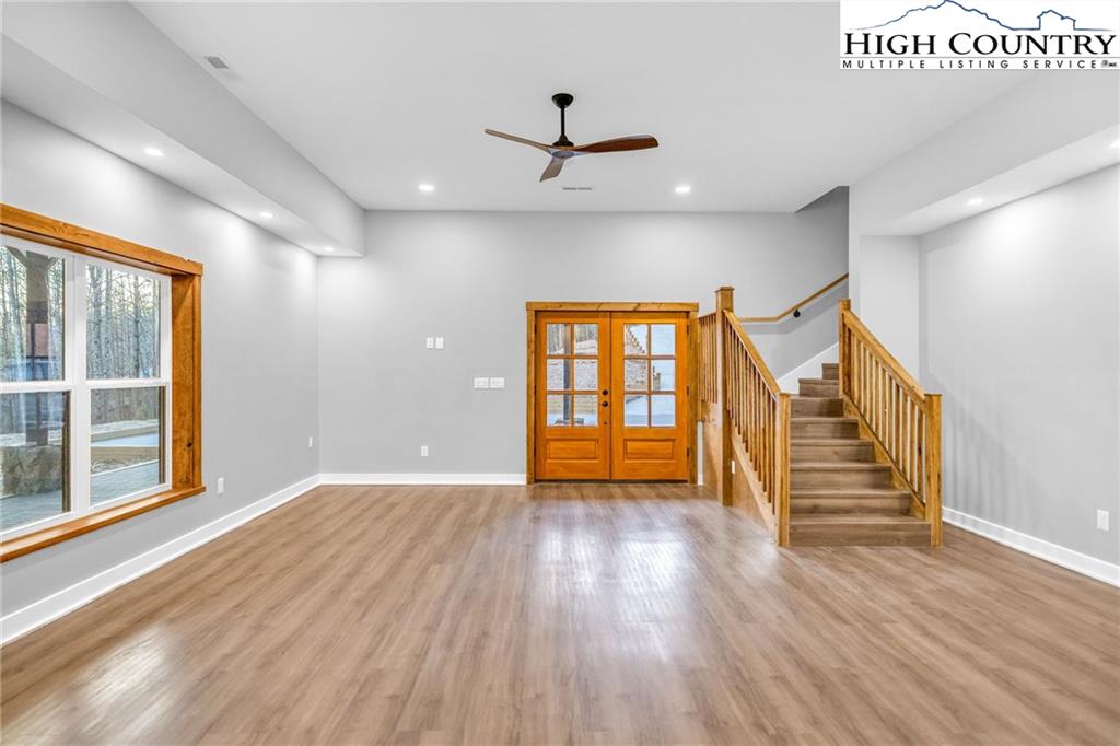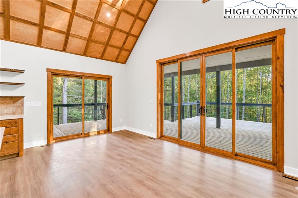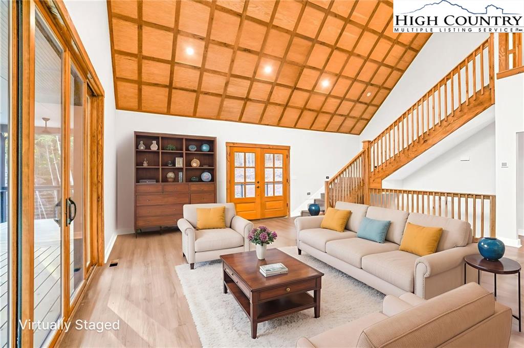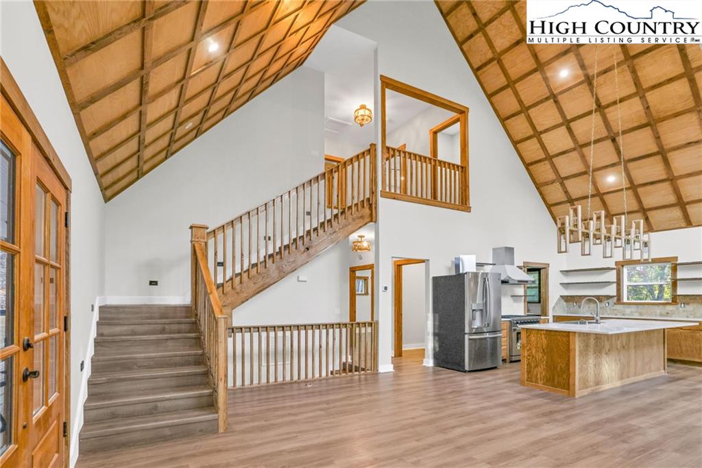 New Construction – Just Completed! Discover this stunning mountain craftsman-style home, tucked privately off the road in Southern Ashe County—just 20 minutes to Boone and 15 minutes to downtown West Jefferson. Designed for both comfort and entertaining, this home offers a private wooded oasis with nearly 1,800 SF of covered porches and open decking plus a large concrete paver parking pad with space for four vehicles. Step inside to find custom wood features throughout, including a soaring grand ceiling in the great room and a dramatic oak light fixture above the oversized kitchen island. The home is bathed in natural light thanks to its southwest orientation, abundant windows, and over 20 feet of sliding glass doors leading to the outdoor living areas. The gourmet kitchen features custom oak cabinetry milled from the property, quartz countertops, an oversized gas range, Bosch dishwasher, instant hot water, and LED under-shelf lighting. A walk-in pantry with sink and a spacious laundry room with sink are conveniently located just off the main-level primary suite. The main-level primary suite boasts a spa-like bath with a custom tile shower (three shower heads and multiple controls), double vanity, linen closet, and large walk-in closet. Upstairs, a loft sitting area overlooks the dramatic wall of windows and leads to two additional bedrooms, a large storage closet, and a full bath with custom shower and double vanities. The lower level offers a den perfect for a theater room with wet bar, another full bath, additional storage, mechanical room, and an oversized one-car garage. Additional highlights include Wireless sound system with speakers in the primary suite, primary bath, living room, basement, and porches, Mahogany front entry doors, Zero-maintenance aluminum-clad 8x10 sliding glass doors, LVT flooring throughout, Custom oak trim and door frame's milled from the property and multiple retaining walls and outdoor spaces perfect for a firepit, garden, or pet enclosure. This thoughtfully crafted home is truly a mountain oasis, blending natural beauty with modern luxury. Come experience it for yourself!