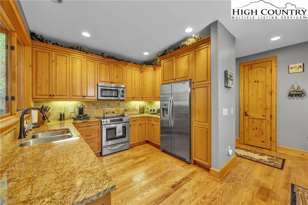 Turnkey Luxury Condo in Headwaters Gated Community. Discover this rare gem: a lower-level, two-story condominium nestled in the Headwaters gated community. Stunning Features: Beautiful hardwood floors and high-end finishes, Gourmet kitchen equipped with granite countertops, custom cabinetry, and top-of-the-line appliances. Inviting living room on the main level, complete with a stone fireplace. Spacious Accommodations: Owner suite and guest bedrooms located on the main level and a guest suite and additional family room with its own fireplace, and a roomy storage room on the lower level, each featuring a full bath for enhanced privacy. Breathe in the cool mountain air and enjoy the serene sounds of nature as you unwind on one of the two decks. The main level deck also boasts an outdoor gas fireplace. This condominium is just a short drive from downtown Banner Elk and there are a variety of attractions, including skiing, hiking, whitewater rafting, theater performances, park concerts, golf, and more. As a resident of Headwaters, you will have access to a stunning mountaintop clubhouse featuring: Fitness Center, Game Room, Theatre Room, Gourmet Kitchen. Your family can also take advantage of the Lakeside Pavilion, Stony Creek Park, Deer Creek Park, Sunset Park, Dog Park, and a Natural Waterfall. Do not miss the opportunity to experience this unique mountain community and this exceptional condominium before it is gone. With restaurants, skiing, and shops nearby, it truly is a prime location! Also see Community Website for more info -https://headwatersatbannerelk.com/headwaters-community/