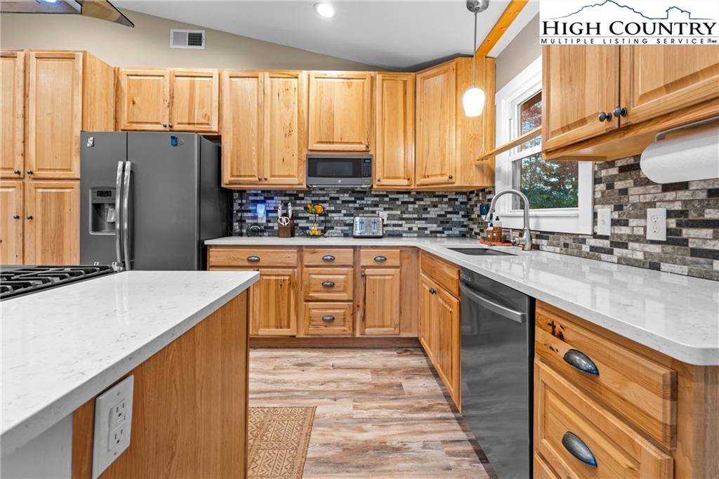 Charming Mountain Home on 3+ Acres Between Boone and West Jefferson Located in a peaceful neighborhood on over 3 acres, this beautifully maintained mountain home offers privacy, versatility, and sweeping natural surroundings. Featuring 4 bedrooms, 4 bathrooms, 2 kitchens, and 2 wood-burning fireplaces, the property is thoughtfully designed for flexible living. Each level includes its own laundry area, water heater, and electric meter, allowing the home to function as a single spacious residence or as two independent units—ideal for multigenerational living or rental income. The home’s layout supports a “live upstairs, rent downstairs” model with a consistent rental history. Both levels enjoy comfortable living areas, separate outdoor entertainment space and scenic mountain views. Outdoor amenities include an attached two-car garage, ample parking, a new storage shed, a new chicken coop, garden space, and private hiking trail winding through the wooded acreage. The property has a private well and septic system and has no restrictions, making it short-term rental friendly. Conveniently located just 2.4 miles off Highway 421 and minutes from the scenic Blueridge Parkway, this home provides easy access to both Boone and West Jefferson—only 20 minutes from Samaritan’s Purse. The property also contains a historic Civil War–era cemetery, adding a unique touch of local heritage. A detailed list of recent improvements is available upon request. Home is being sold fully furnished—only personal clothing and pantry items do not convey.