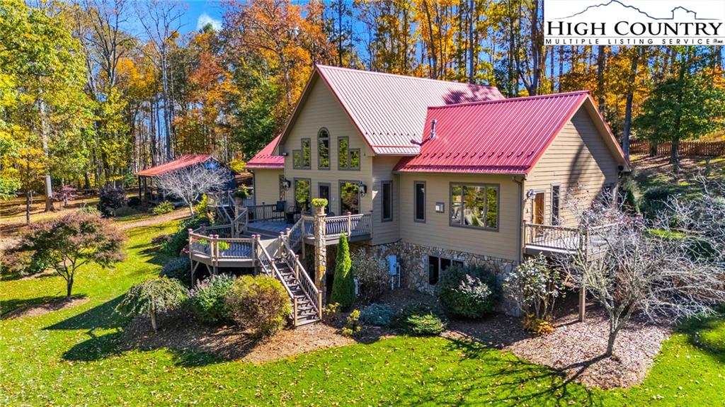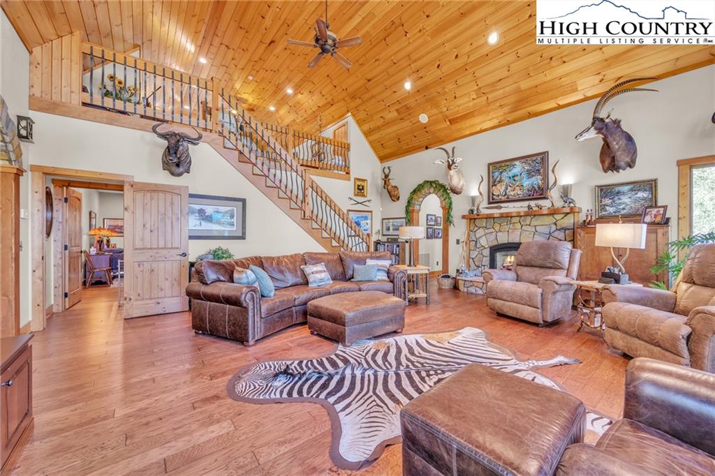 Escape to this breathtaking gem located in the Blue Ridge Mountains!! This exquisitely maintained home is situated on approx. 18.01 acres, offers quality construction and lovely mountain views. The FP layout features, a large dining and kitchen with granite counters & upgraded appliance in the last 5 years. The spacious great room has high vaulted ceiling, a stone fireplace and wonderful natural lighting. The primary bedroom suite includes a corner fireplace and access to side deck, spacious bathroom with heated tile floors, tiled shower, soaking tub and amazing walk-in closet that is a dream come true! There is a 2nd bedroom and bath for guest on the main floor. The upstairs loft is great multi-purpose space and the basement features game-room, space for 3rd bedroom, fitness RM and lots of storage. Additional features include: hardwood & tile floors throughout, heat pump & Rinnai tankless water heater in 2022; home and storage barn painted in 2024; Generac generator in 2025; wired speakers inside & outside; LED lighting, built-in bookcase & desk, security system, oversized 2 car garage; storage barn with covered porch for all your tools and toys. Enjoy true peace and tranquility from the multiple outdoor living spaces surrounded by beautiful landscaping and large natural boulders around the property. Schedule a time to come see this incredible property!!