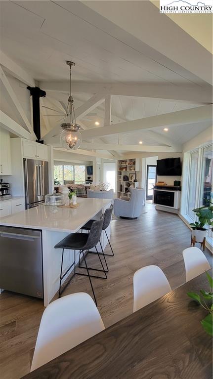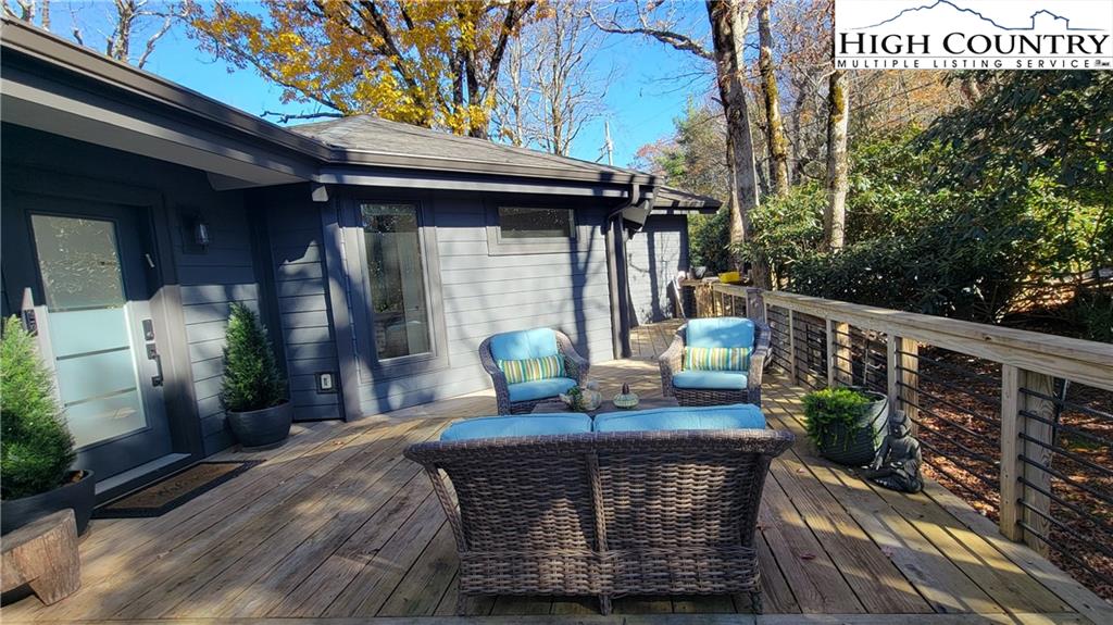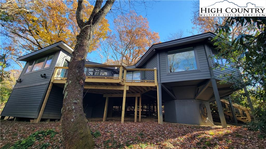 Contemporary style meets thoughtfully designed treehouse feel in this double-octagon home with an easy, functional floor plan. Fully remodeled and perfectly situated between Boone and Blowing Rock, this beautifully equipped home features 3 bedrooms and 2.5 bathrooms. No detail was overlooked in the construction or design. Vaulted ceilings and expansive windows create a bright, airy atmosphere with an abundance of natural light. Enjoy being just minutes from all the shopping, dining, and outdoor amenities that Boone and Blowing Rock have to offer. An adjoining lot being sold with the home, adds an additional 0.78 acres—bringing your total to a full acre of privacy and mountain charm. Whether you’re looking for a primary residence, a rental property, or a weekend getaway, this home offers all of that and more.