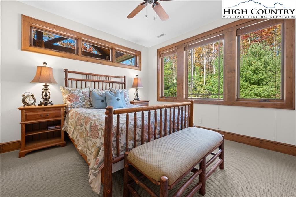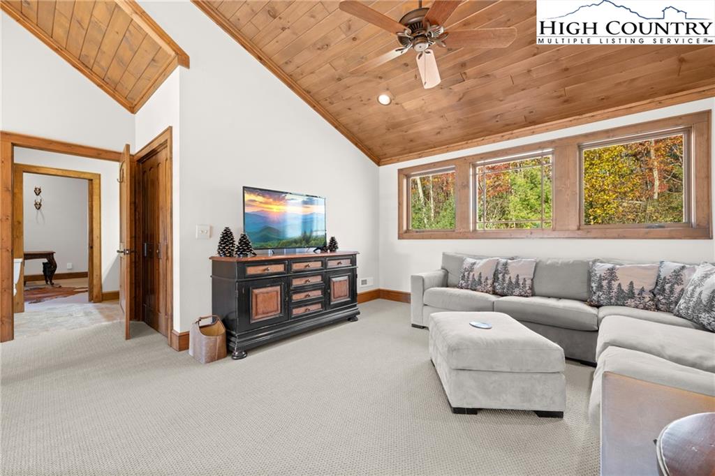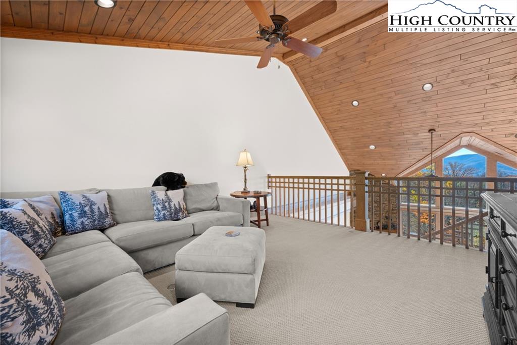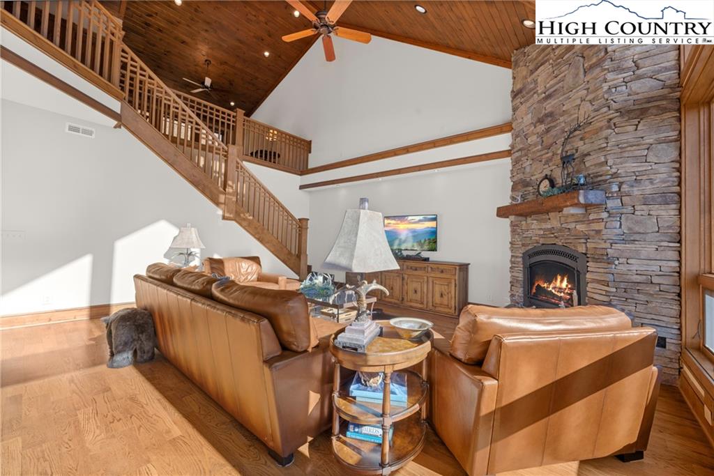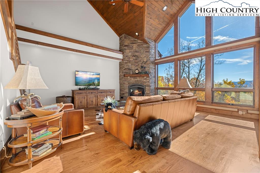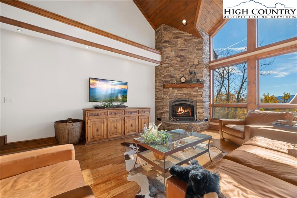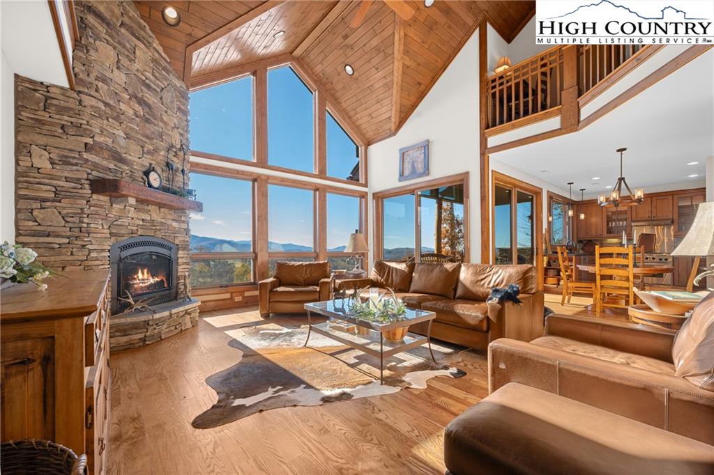 Experience the best unobstructed view in the High Country from this beautifully appointed luxury three bedroom, three bathroom condo in the prestigious Headwaters community. This move-in ready condo offers refined mountain living with elegant finishes and inviting spaces designed to showcase the breathtaking scenery. The gourmet kitchen features granite countertops, a gas range, high end cabinetry, and premium appliances, perfect for those who love to cook and entertain. The great room boasts soaring ceilings, a stunning stone fireplace with gas logs, and expansive walls of windows framing the sweeping long-range mountain views. Two bedrooms are located on the main level, including a serene primary suite, while a spacious guest suite and open loft upstairs provide additional room for guests to relax. Step outside to the large deck to enjoy cool summer breezes or gather around the outdoor stone fireplace under the stars. Residents of Headwaters enjoy access to an impressive array of amenities including a clubhouse with fitness center, game room, theater room, gourmet kitchen, and elegant gathering spaces that feature their own mountain views. The community also offers a lakeside pavilion, scenic parks, waterfall, hiking, tennis court, and even a dedicated dog park. Just a short drive from downtown Banner Elk, this remarkable property offers an exceptional blend of luxury, comfort, and panoramic mountain beauty. For more information on the The Headwaters at Banner Elk, visit https://headwatersatbannerelk.com/.