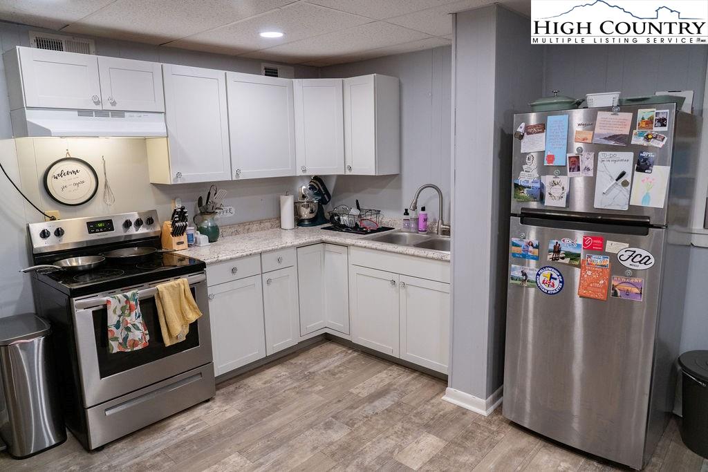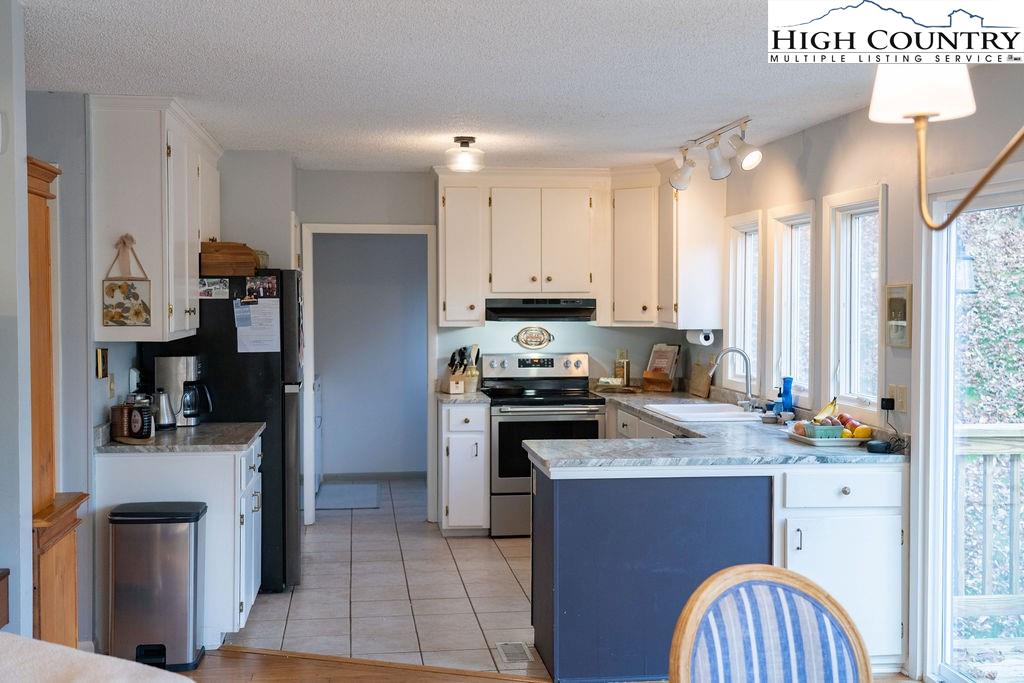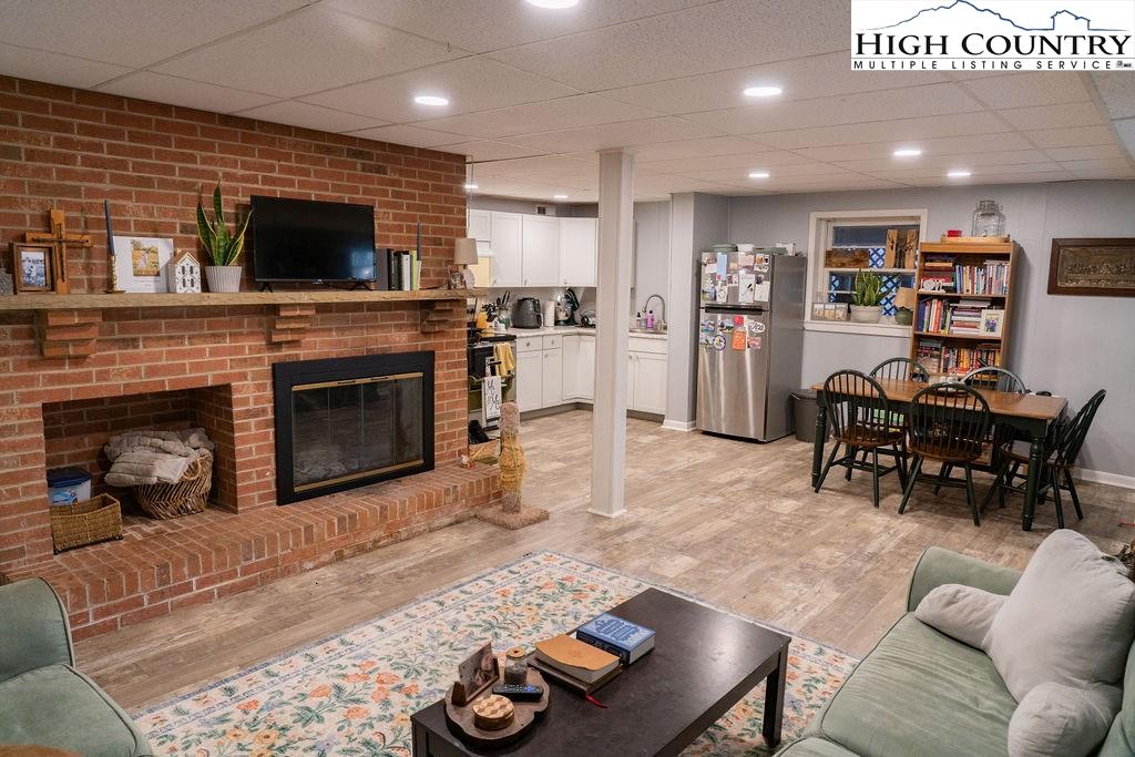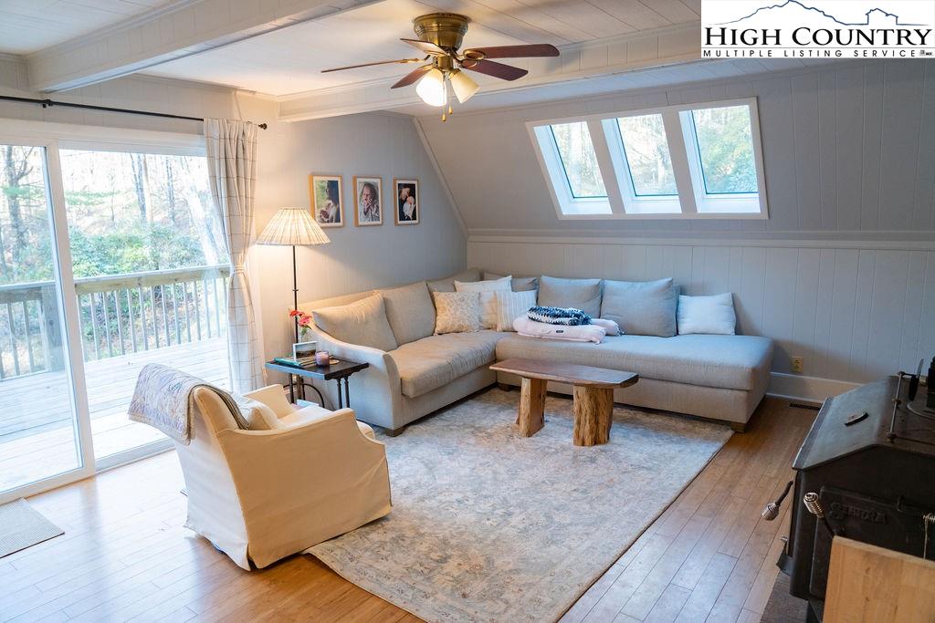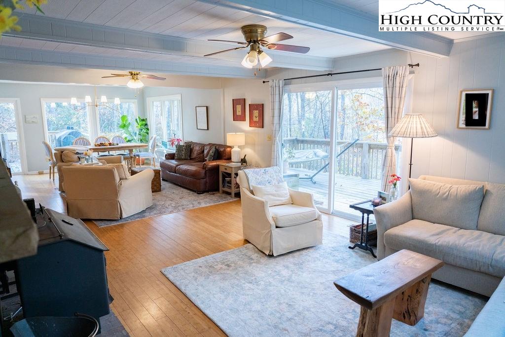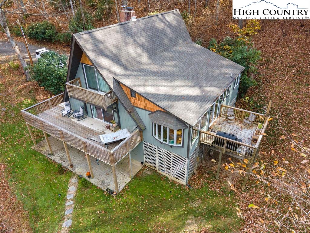 Built in the 1970s, this 4-bedroom, 3-bath home sits on 1.1 acres and has been thoughtfully maintained and improved with: new septic system and drain field (2025), new well pump (2025), freshly painted exterior (2024) new windows (2024), whole house filtration system (2025), new roof (2020), new HVAC (2020), updated bathrooms, appliances, and fixtures throughout. The main level offers an open, welcoming layout with a family room centered around a large brick fireplace, wood burning stove followed by another open living room. The dining area flows into the kitchen which features granite countertops, updated appliances, and abundant natural light from the new windows. This level also includes a spacious laundry room, one guest bedroom, and an additional room that would make a great office or study. This main floor has a large wrap around porch & side deck which makes living inside & enjoying outside seamless. Upstairs, you’ll find two bedrooms with unique cathedral style ceilings and a full updated, bath. The front master bedroom has its own balcony overlooking the pond. The lower level includes a basement apartment with approximately 800 square feet of living space — complete with its own entrance, living room, kitchen, bedroom, bathroom, washer/dryer setup, and fireplace. This space has been a consistent rental of $900/month, offering excellent potential for income or additional family members. Additional highlights include a large dry storage area beneath the home, a flower garden, firewood storage, and a campfire pit. With its versatility, location, and mountain charm, this property is ideal as a full-time residence, vacation home, or investment opportunity with easy access (approximately 18 minutes) to Boone and West Jefferson.