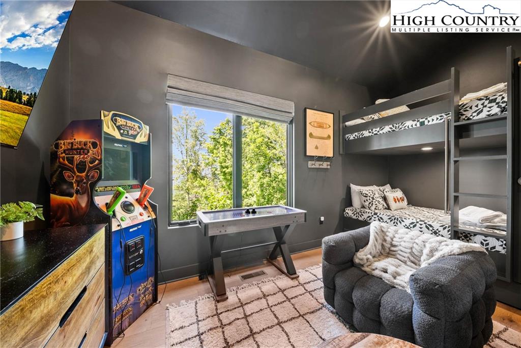 The Elk and Shepherd Lodge: Premier Mountain Luxury in The Lodges at Eagles Nest Welcome to The Elk and Shepherd Lodge—an architectural marvel perched in the highly sought after, gated Lodges at Eagles Nest. This is not just a home, but a showstopper, offering a singular luxury experience against a stunning backdrop of sunset-kissed ridgelines and dramatic mountain views. Every detail blends refined comfort, striking design, and unforgettable indoor and outdoor living. Spectacular Outdoor Sanctuary: Step onto the expansive three-tiered deck and prepare to be wowed. Start your morning on the sunning platform or with coffee in the covered outdoor living room. This elegant space features sleek, low-profile wood couches with plush cushions surrounding a stunning wood-burning fireplace and mounted TV, providing a year-round gathering spot. A group of cushioned rockers offers a peaceful spot to unwind. Grill out and dine alfresco at the outdoor dining table, then soak in the hot tub as stars emerge over the mountains. Later, follow the stone path to the fire pit in the yard—the perfect place for evening conversations and stargazing under the vast, clear sky. Grand Interior Design and Living: Inside, soaring vaulted ceilings and a colossal wall of windows frame sweeping mountain views and flood the great room with natural light. Fine finishes, warm wood accents, and curated decor perfectly blend rustic charm with modern luxury. The open-concept main floor is designed for seamless entertaining. It features a fully equipped gourmet kitchen for cooking and gathering, complete with a dedicated coffee bar, alongside a custom hardwood dining table that seats your entire group. The cozy living space is anchored by a gas fireplace and a Smart TV for comfortable movie nights. Luxurious Accommodations: The main-level master suite is a serene retreat featuring a king bed, deck access, long-range views, and a spa-style ensuite with a massive tiled shower and a soaking tub. Also on the main level is a custom bunk room, a favorite for the kids, featuring double-over-double bunks, each with twin trundles, a cozy hangout space with a TV, a Buck Shot arcade, and an air hockey table. Upstairs, the open loft overlooks the great room and includes a comfy couch that converts to a queen sleeper and a foosball table. Two beautifully appointed guest bedrooms—one with a king bed and one with a queen—share a full bathroom, offering additional space and privacy for guests. From the moment you arrive at the striking front entrance with custom stonework and exposed beams, you'll feel the craftsmanship and care poured into every inch of this home. Whether you're chasing adventure, hosting a special gathering, or simply seeking peace among the peaks, The Elk and Shepherd Lodge delivers beauty, luxury, and comfort in every detail. The Elk and Shepherd Lodge is more than a mountain getaway; it is an experience waiting to be made.