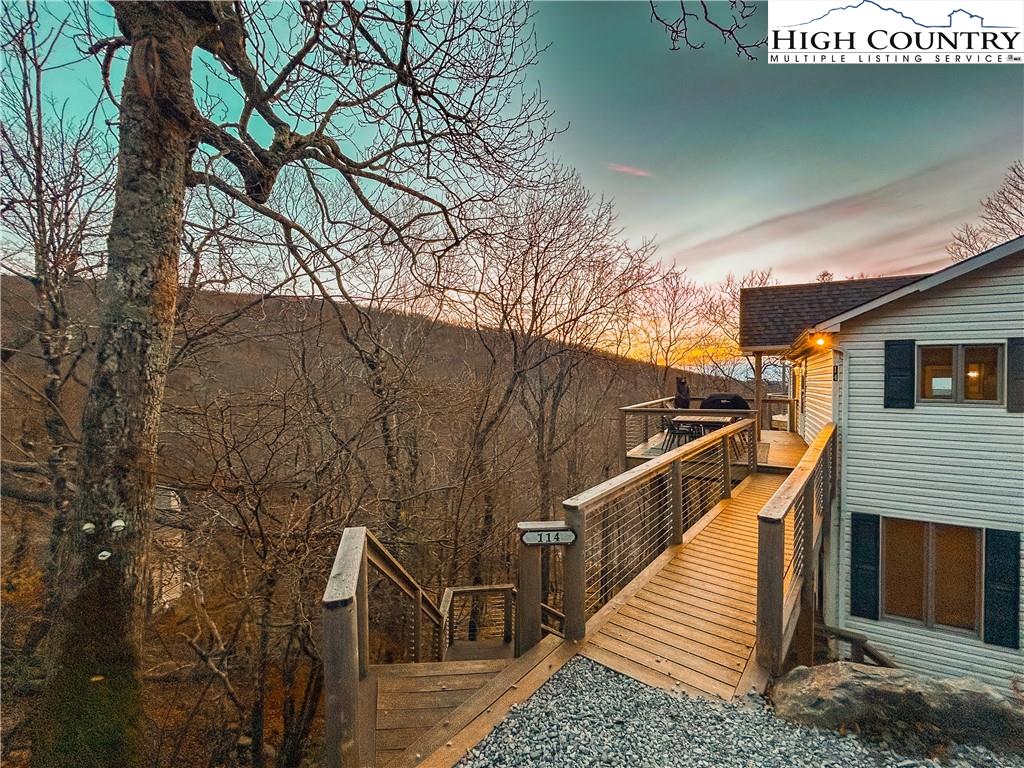 Welcome to 114 Spruce Hollow Road, a stunning mountain retreat nestled high atop Beech Mountain where long-range views, refined updates, and exceptional rental income come together in perfect harmony. Thoughtfully renovated and impeccably furnished, this five-bedroom, four-bathroom home offers an inviting blend of modern comfort and High Country charm, making it an ideal full-time residence, second home, or turnkey short-term rental investment. Perched above the treetops with long-range layered views, the home is designed to maximize every moment of mountain living. Three expansive decks provide incredible outdoor living space, each offering its own vantage point for stunning sunrises, seasonal foliage, and peaceful star-filled nights. Enjoy gathering around the firepit table, relaxing in the brand-new WiFi-enabled hot tub (installed February 2025), or simply enjoying the crisp Beech Mountain air from the comfort of thoughtfully arranged seating areas. Inside, the home features a warm and welcoming atmosphere with bright natural light, updated furnishings, and stylish décor throughout. The living room is both cozy and spacious, perfectly arranged for family gatherings, movie nights, or quiet mornings with a cup of coffee. New mattresses and furniture added in June 2023 ensure a comfortable and contemporary experience for every guest. With accommodations for up to fourteen, the layout is ideal for large families, group getaways, or maximizing short-term rental income. The location is truly unbeatable, just four minutes (1.2 miles) from Beech Mountain Ski Resort and only a few minutes more to some of the area’s most beloved hiking trails. Local breweries, wineries, restaurants, and year-round attractions are all within easy reach, offering endless options for adventure and entertainment. Already operating as a successful short-term rental, the property provides immediate income potential. With its combination of updates, proven rental history, incredible views, and close proximity to Beech Mountain’s best amenities, 114 Spruce Hollow Road is the perfect mountain getaway, fully furnished, beautifully maintained, and completely ready for its next owner. Whether you're looking for a peaceful personal retreat or a lucrative addition to your investment portfolio, this exceptional property delivers the perfect Beech Mountain experience.