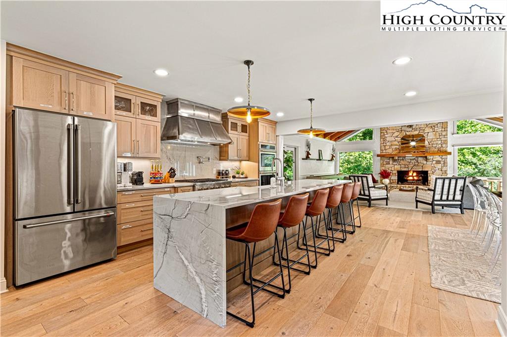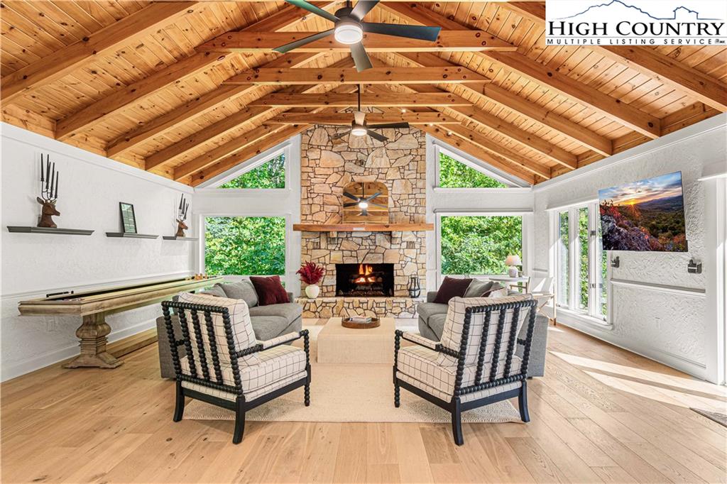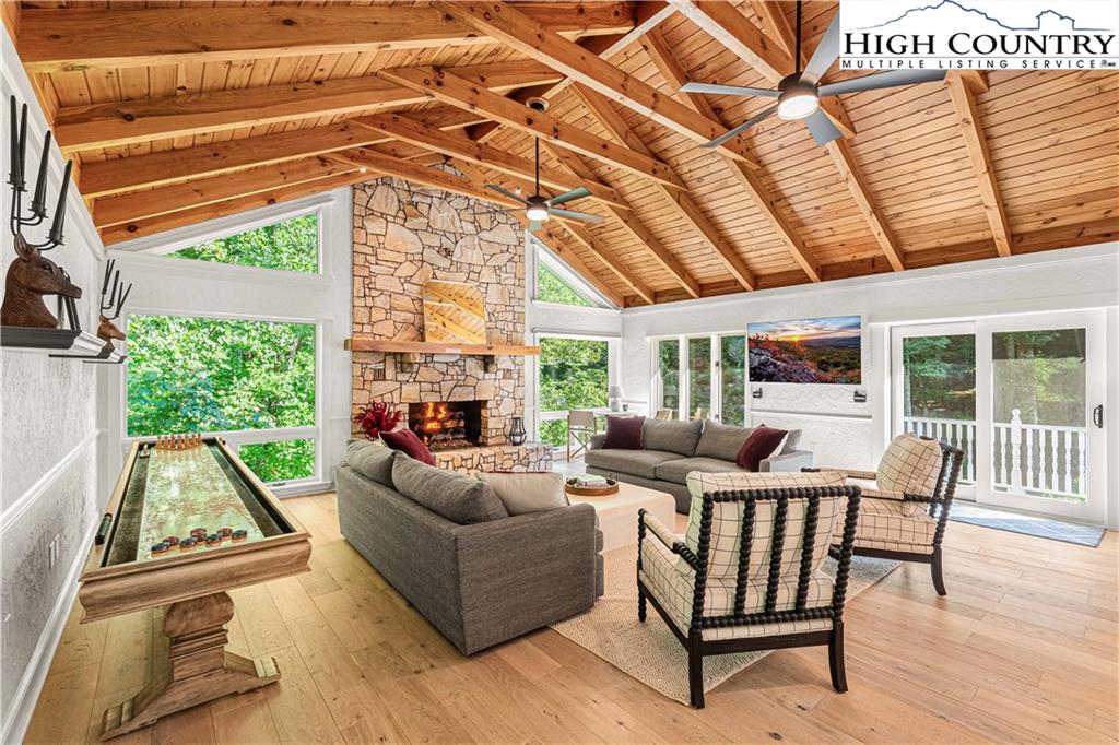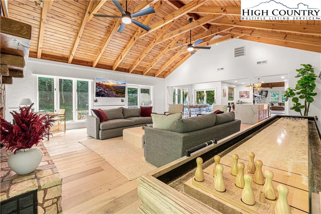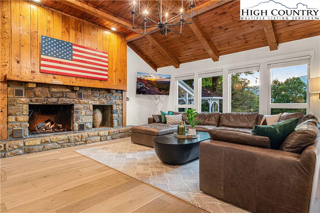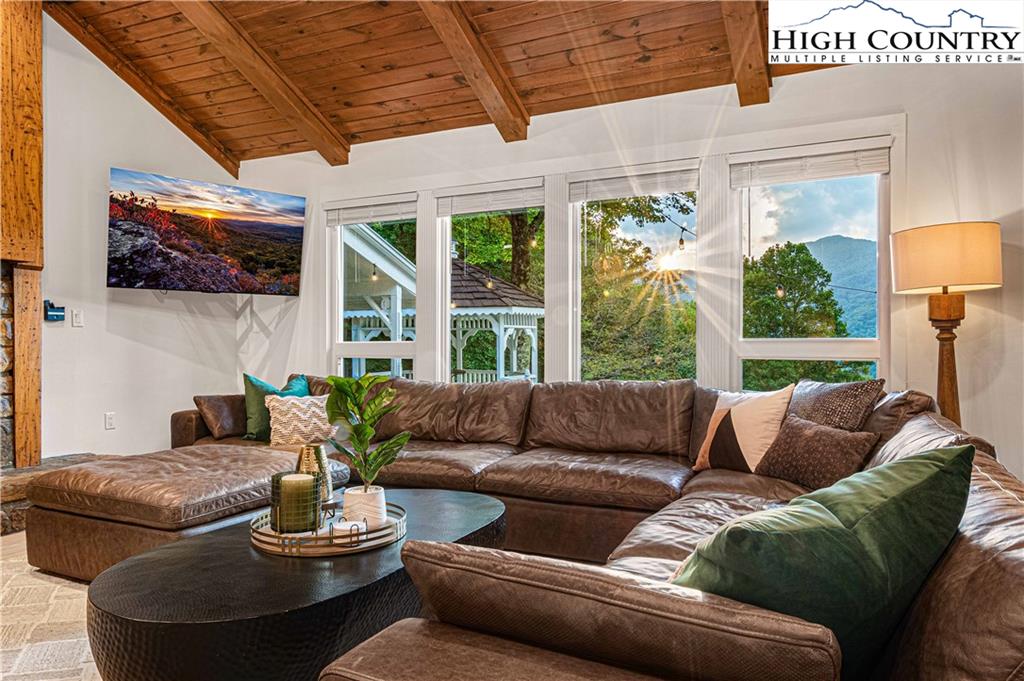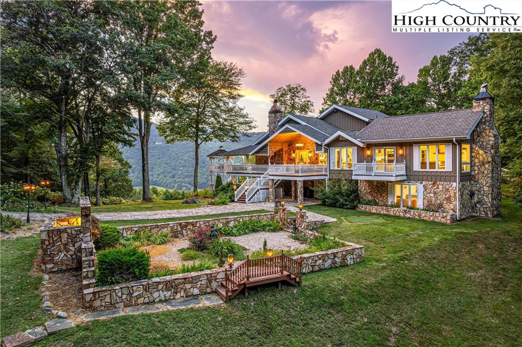 Amazingly versatile ridge top estate property with almost 18 acres, long range mountain views, recent 7 BR septic operating permit for impressive 6600+ sq.ft. residence, courtyard overlooking pond with cascading landscape waterfall. Private setting offers exclusivity, peace and quiet. Not in a subdivision - no restrictive covenants - no POA. Lower section of acreage can be easily subdivided into several gentle building sites - build more rental cabins or create a larger family compound. Incredible gross rental income projected just under $400K this year. Continue with rentals to offset some expenses or preserve all the time for comfort and enjoyment for you and your extended family and friends. Home is popular rental for wedding guests, family or college reunions, multi-generational vacations, corporate retreats, football weekends. Abundant natural light flows throughout from the many large windows creating uplifting interior. 7 bedrooms, 6.5 baths. Elegant primary BR suite on main floor has fireplace, sitting areas, long range mountain views, luxurious bath. Two spacious living rooms. Huge, upscale kitchen and dining areas seat 16. Fantastic game room for kids of all ages with home theater, video gaming room nook, poker/game table, foosball, air hockey, pinball and MORE! Four fireplaces, two laundry rooms. Fully furnished and completely outfitted for rentals with a short owner exception list. Outdoor spa hot tub retreat on secluded covered porch adjoins cozy outdoor seating. Retreat to your mountaintop acres convenient to Boone, Banner Elk, Parkway, Blowing Rock. Ski, snowboard, hike, bike, golf, fish - all close by. No drive-bys. Shown by appointment only. Do not disturb vacation renters. Property is popular vacation rental with heavy bookings - can only be shown when property is not rented. Most weekends are 3 or 4 day bookings.