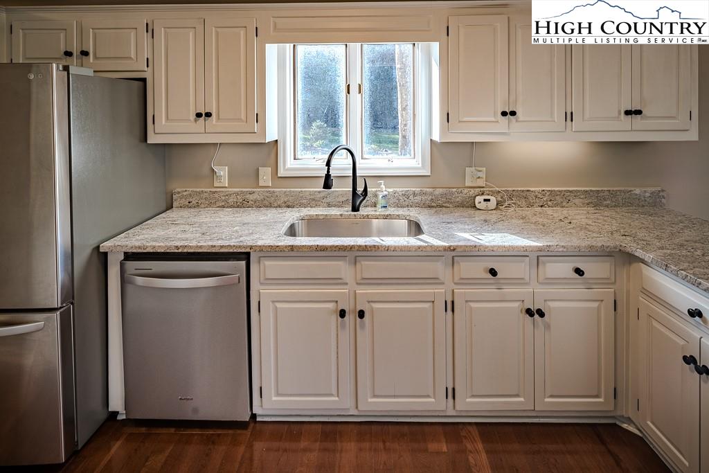 Beautiful, move in ready mountain cottage, conveniently located between Boone and Blowing Rock! This charming three bedroom, two full bath home is a perfect blend of cozy comfort and modern style. Step inside to find a bright, open living area, with vaulted ceilings and a stone fireplace. The updated kitchen features granite countertops and plenty of storage. The primary bedroom is located on the first floor, for easy, one level living. Two guest bedrooms, and a full bath upstairs. Plenty of outdoor living areas, including both open and a covered deck area. Fabulous level yard, with a stream on the back of the property. The two car garage provides extra storage. New roof in 2024, new paint, new hvac in 2025, and new carpet, this home is truly move in ready! Located in the desirable subdivision of Cobble Creek and in the Blowing Rock school district, this well maintained home is convenient to both Boone and Blowing Rock, the Blue Ridge Parkway, and everything the area has to offer.