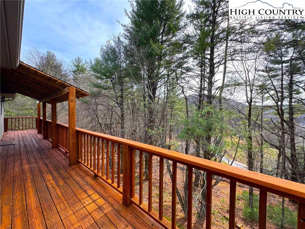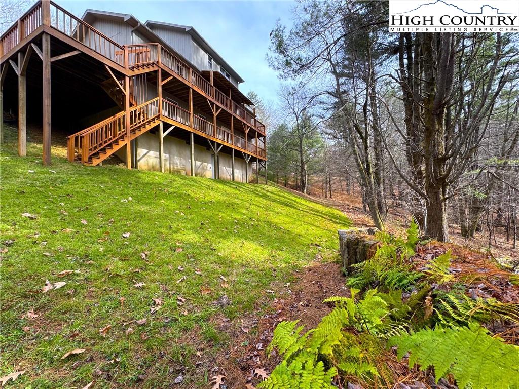 This beautifully kept home in Blowing Rock, NC offers endless possibilities. The property features gorgeous mountain views from its many spacious decks and porches. Situated on 0.69 acres, it features a lovely, secluded backyard perfect for relaxing or entertaining. The main level features a large living area with a fireplace, as well as an open-concept kitchen with an outdoor access to a kitchen porch and dining space. You’ll also find a primary bedroom with a full bath, a half bath, and a convenient laundry area on this level. Step outside to the expansive deck to entertain guests while taking in the stunning mountain scenery. The upper level includes an additional bedroom, a full bath, and a playroom or generous workspace. The lower level, with its own private entrance, offers even more flexibility—a bedroom, a living area with a fireplace, and a designated kitchen space ready for your personal design. This kitchen area has already been wired and is prepared for cabinets and appliances. There is also a dining area with direct access to a deck surrounded by mountain trees and outdoor beauty. Recent updates include new floor coverings throughout, fresh interior paint, and a utility room on the lower level that provides extra storage. The crawl space has been enclosed to add even more storage options. This home could be an excellent income-producing property, as both short- and long-term rentals are permitted. There are no HOA fees; the Hampton Glade subdivision does not have an active HOA. Its location is also ideal for student housing, being just minutes from ASU, with a multi-car parking area in the driveway. Three forms of heating are available. A shared well and a septic system for three bedrooms are included with this house. Come view this remarkable property to explore all the opportunities it has to offer!