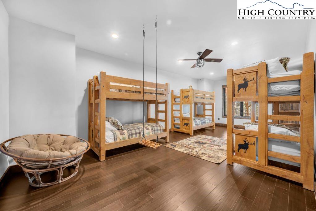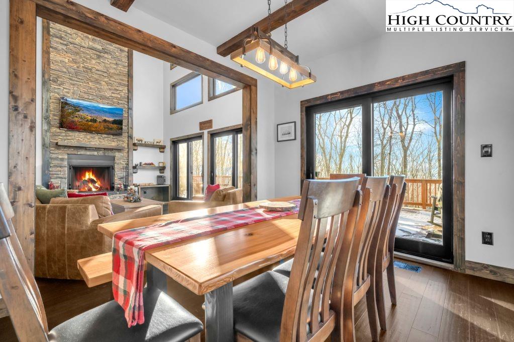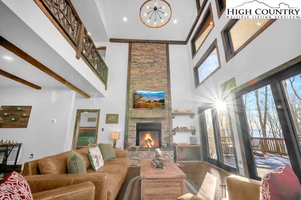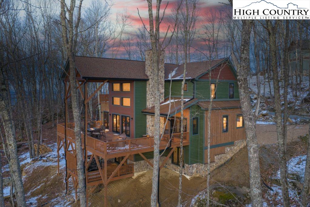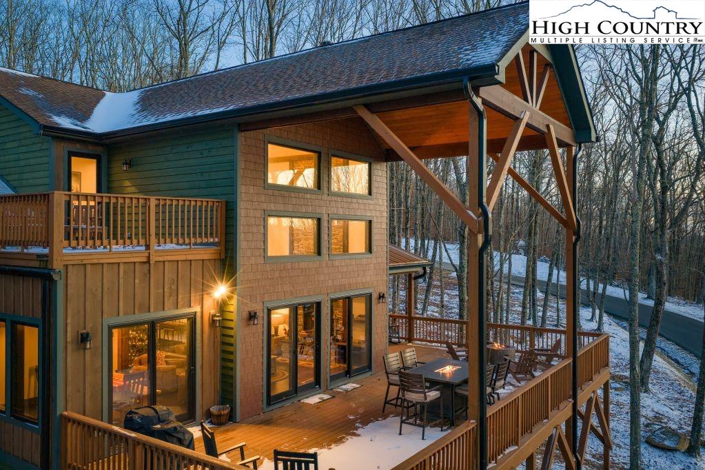 Discover Beagles Rest — your perfect mountain sanctuary in the coveted Lodges at Eagles Nest. This one-of-a-kind custom home is not only a stunning retreat but also a proven high-performing rental with Blue Ridge Mountain Rentals, offering an exceptional balance of luxury, comfort, and rustic elegance. From the moment you arrive, Beagles Rest welcomes you with a spacious flat semicircle driveway and an attached two-car garage adorned with handcrafted real wood doors, hinting at the craftsmanship found throughout the home. Step inside, and every detail impresses. The gourmet chef’s kitchen is a showstopper, featuring GE Café appliances with refined copper accents, a statement copper hood and farmhouse sink, and striking quartzite countertops. The craftsmanship continues into the primary suite, where tongue-and-groove ceilings elevate the space, and the spa-inspired bath pampers with heated floors. Built for both beauty and durability, the home includes Marvin Elevate high-wind–rated windows and sliders, a tankless water heater with recirculating pump, and remote thermostats on each level, smart, efficient, and convenient. The foundation constructed with ICF Logix Blocks ensures superior energy efficiency and long-term sustainability. Throughout the home, custom elements bring the mountain surroundings indoors, including bamboo wood flooring and a one-of-a-kind twig railing crafted from sticks gathered right in Eagles Nest. The great room centers around a breathtaking floor-to-ceiling real stone wood-burning fireplace, perfect for cozy mountain evenings. Designed for relaxation and fun, Beagles Rest features a dedicated game room outfitted with air hockey, shuffleboard, and nostalgic arcade games. With three inviting bedrooms, a fun custom bunk room that even includes a swing, four full baths, and a half bath, there is ample space for everyone to unwind. Outdoor living is where this home truly shines. Three expansive decks, one on each level, invite you to take in the fresh mountain air and views. The main deck boasts tongue-and-groove roofing, two propane fire pits, and a soothing hot tub, ideal for enjoying Blue Ridge sunsets or starry nights. Enjoy the outdoor fire pit to roast marshmallows with the family. Beagles Rest is more than a property — it’s an experience. Whether you’re seeking a luxurious mountain escape for yourself or a lucrative investment opportunity, this exceptional home offers the best of both worlds. Your perfect High Country retreat awaits. There is a 639 difference in the tax info and the professional measurements taken. This is a newly built home in 2024.