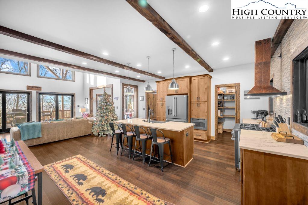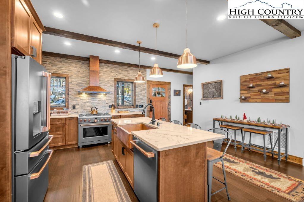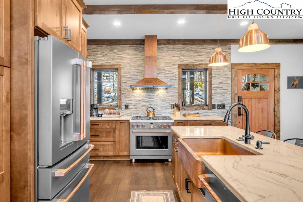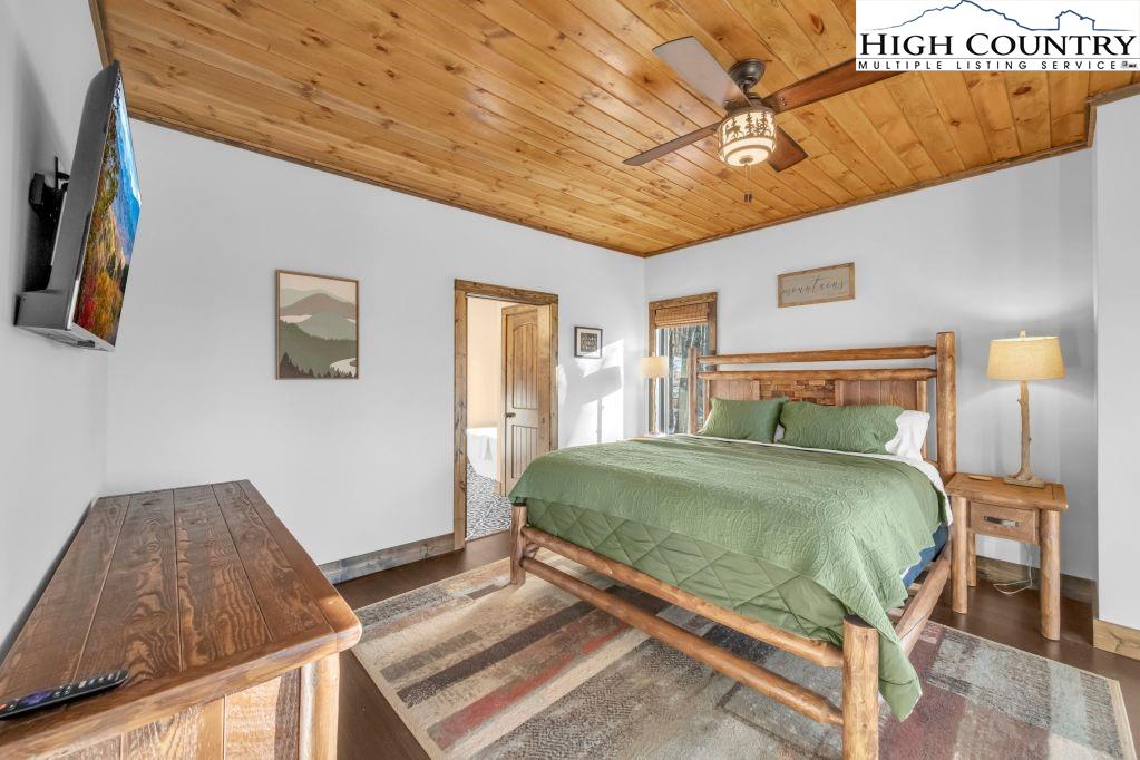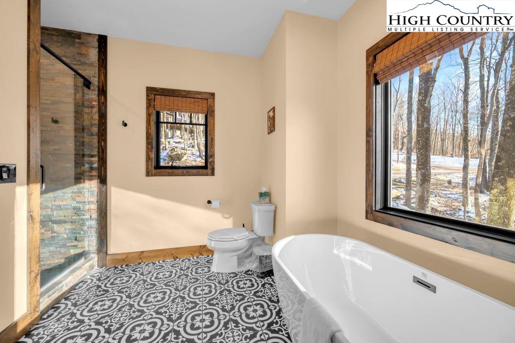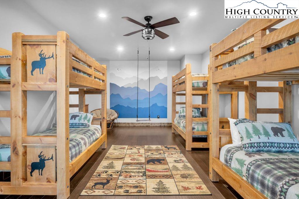 Discover Beagles Rest — your perfect mountain sanctuary in the coveted Lodges at Eagles Nest. This one-of-a-kind custom home is not only a stunning retreat but also a proven high-performing rental with Blue Ridge Mountain Rentals, offering an exceptional balance of luxury, comfort, and rustic elegance. From the moment you arrive, Beagles Rest welcomes you with a spacious flat semicircle driveway and an attached two-car garage adorned with handcrafted real wood doors, hinting at the craftsmanship found throughout the home. Step inside, and every detail impresses. The gourmet chef’s kitchen is a showstopper, featuring GE Café appliances with refined copper accents, a statement copper hood and farmhouse sink, and striking quartzite countertops. The craftsmanship continues into the primary suite, where tongue-and-groove ceilings elevate the space, and the spa-inspired bath pampers with heated floors. Built for both beauty and durability, the home includes Marvin Elevate high-wind–rated windows and sliders, a tankless water heater with recirculating pump, and remote thermostats on each level, smart, efficient, and convenient. The foundation constructed with ICF Logix Blocks ensures superior energy efficiency and long-term sustainability. Throughout the home, custom elements bring the mountain surroundings indoors, including bamboo wood flooring and a one-of-a-kind twig railing crafted from sticks gathered right in Eagles Nest. The great room centers around a breathtaking floor-to-ceiling real stone wood-burning fireplace, perfect for cozy mountain evenings. Designed for relaxation and fun, Beagles Rest features a dedicated game room outfitted with air hockey, shuffleboard, and nostalgic arcade games. With three inviting bedrooms, a fun custom bunk room that even includes a swing, four full baths, and a half bath, there is ample space for everyone to unwind. Outdoor living is where this home truly shines. Three expansive decks, one on each level, invite you to take in the fresh mountain air and views. The main deck boasts tongue-and-groove roofing, two propane fire pits, and a soothing hot tub, ideal for enjoying Blue Ridge sunsets or starry nights. Enjoy the outdoor fire pit to roast marshmallows with the family. Beagles Rest is more than a property — it’s an experience. Whether you’re seeking a luxurious mountain escape for yourself or a lucrative investment opportunity, this exceptional home offers the best of both worlds. Your perfect High Country retreat awaits. There is a 639 difference in the tax info and the professional measurements taken. This is a newly built home in 2024.