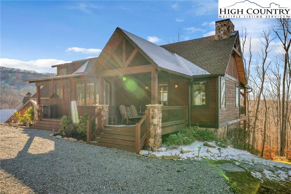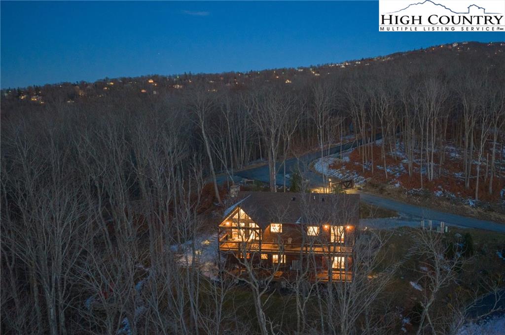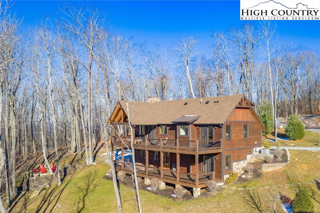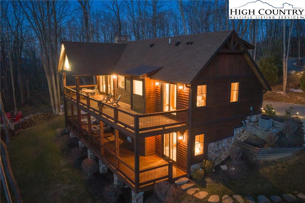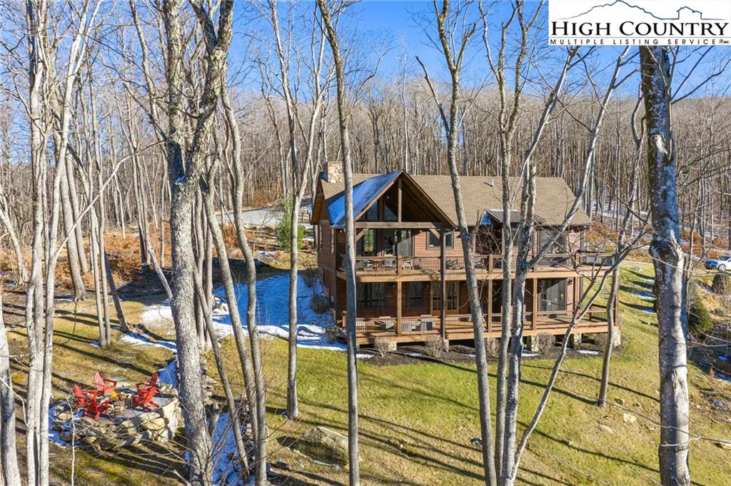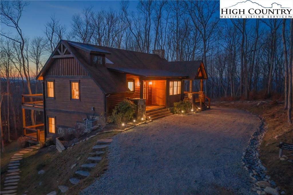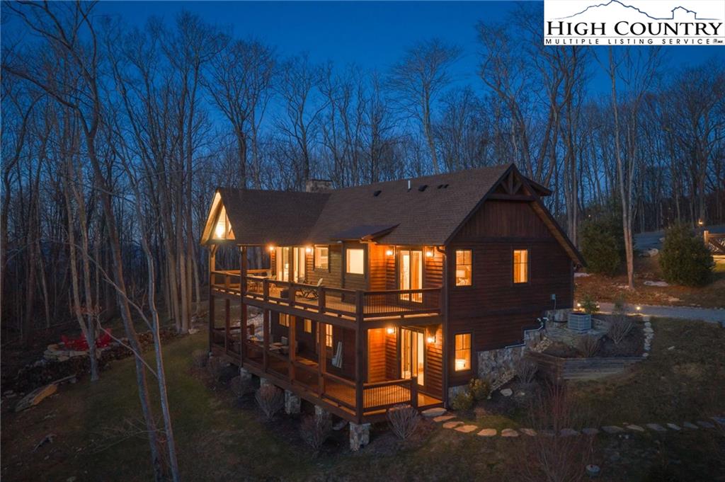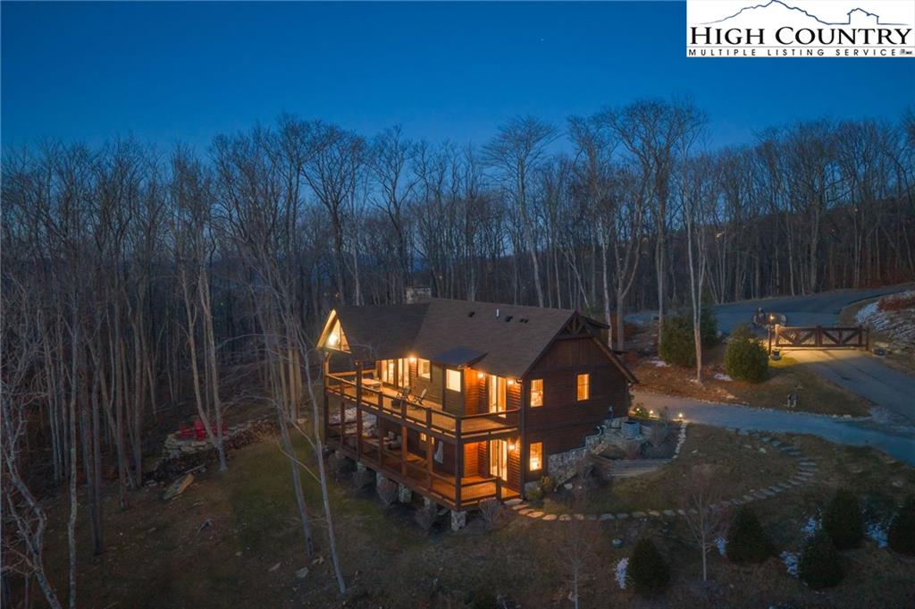 Experience exceptional mountain living in this custom-crafted retreat in The Lodges at Eagles Nest built by Vogel Builders—one of the closest homes in the community to Beech Mountain Ski Resort and just steps from the Beech Mountain gate, premier trails, and amenities. Thoughtfully designed and situated at approximately 4,300 feet of elevation, this 3-bedroom, 2-full and 2-half bath home offers seasonal long-range views, mountain views, dramatic sunsets, and the privacy of a 1.74-acre wooded setting. From the moment you arrive, the home's blend of rustic architecture and refined modern finishes sets it apart. Timber-frame beams, natural stone accents, and expansive glass highlight the surrounding mountain landscape. The main level features a vaulted great room anchored by a floor-to-ceiling stone fireplace, seamlessly connected to the dining area and a designer kitchen with custom cabinetry, premium appliances, and elegant lighting. The main-level primary suite provides a tranquil escape with vaulted ceilings, a spa-inspired bath, and direct access to the deck for enjoying the cool mountain air. The lower level is designed with comfort and hospitality in mind, featuring a spacious second living room with a wet bar and game area, a dedicated bunk room, a guest bedroom, a half bath, a full bath, and a laundry area, an ideal layout for hosting family and friends or maximizing short-term rental potential. Both levels open to expansive decks that invite year-round indoor-outdoor living. Outdoors, you’ll also enjoy a beautiful firepit area and a rare, gently sloping yard with usable space. This home offers an exceptional location within the Lodges at Eagles Nest, positioned directly beside the Beech Mountain gate. Walk or ride to Camp Eagles Nest, which features tennis courts, pickleball courts, playgrounds, and more. With Beech Mountain Ski Resort only 2.3 miles away, winter sports and summer recreation are easily accessible. At the Lodges at Eagles Nest, residents enjoy a wide range of amenities. The amphitheater hosts live summer concerts from May to October, while the Epic Chophouse offers exceptional dining nearby, along with convenient access to Dollar General for quick essentials. Outdoor enthusiasts can explore miles of hiking, biking, and ATV trails, as well as pickleball, tennis, basketball, and soccer courts. Additional activities include climbing towers, an 18-hole putt-putt course, and the popular Eagles Nest Winery, perfect for relaxing with wines and stunning views. Both short-term and long-term rentals are permitted, offering excellent investment flexibility. A stunning blend of luxury, adventure, and mountain serenity, this home stands out as one of the most desirable offerings in Eagles Nest.