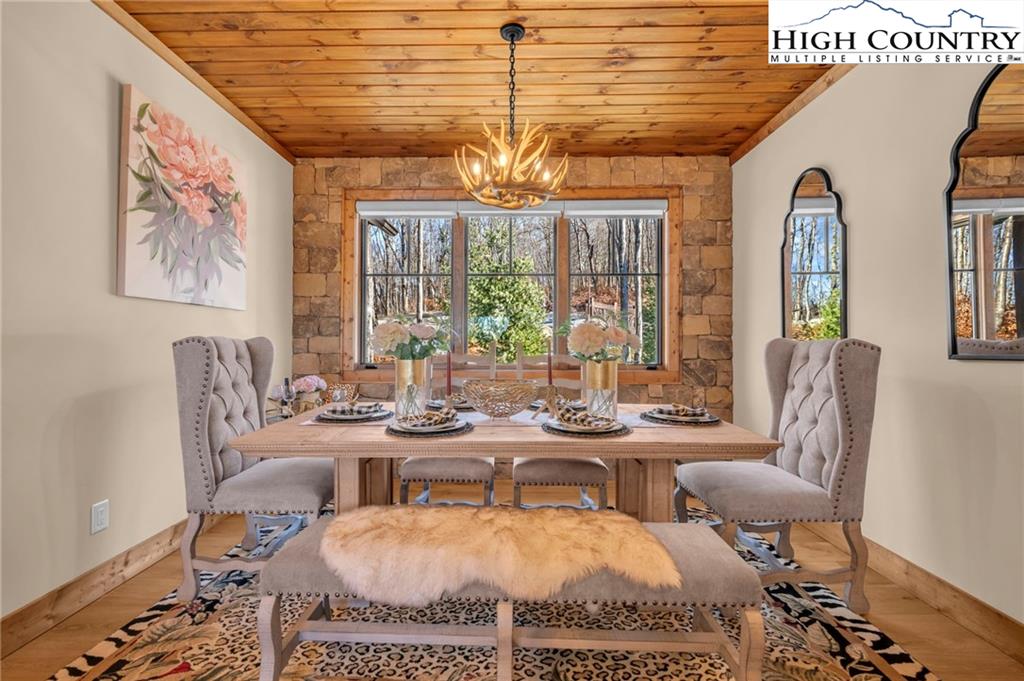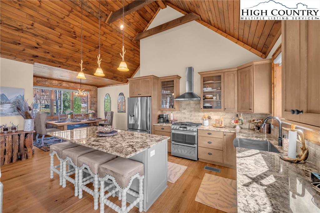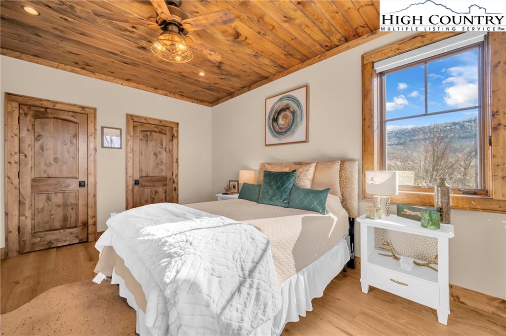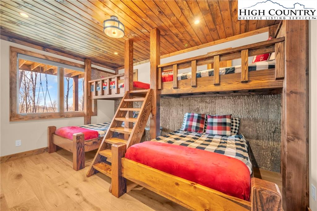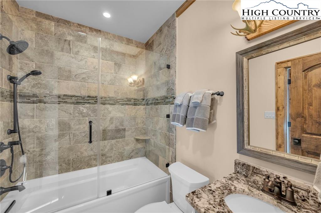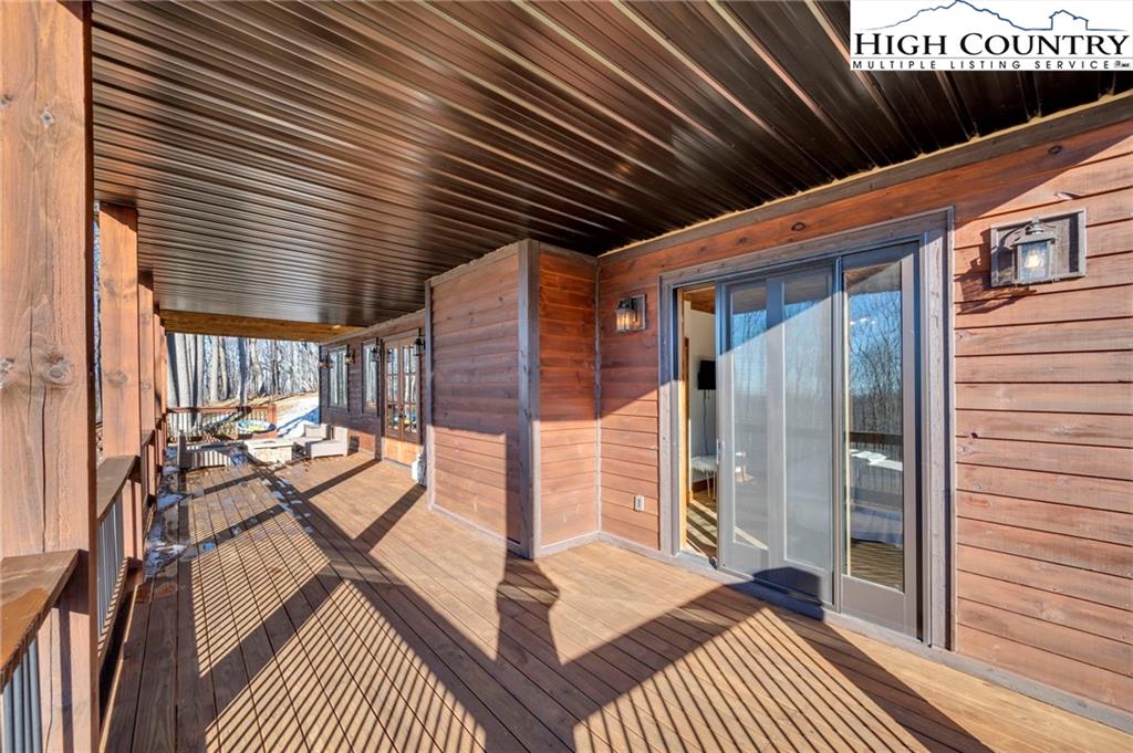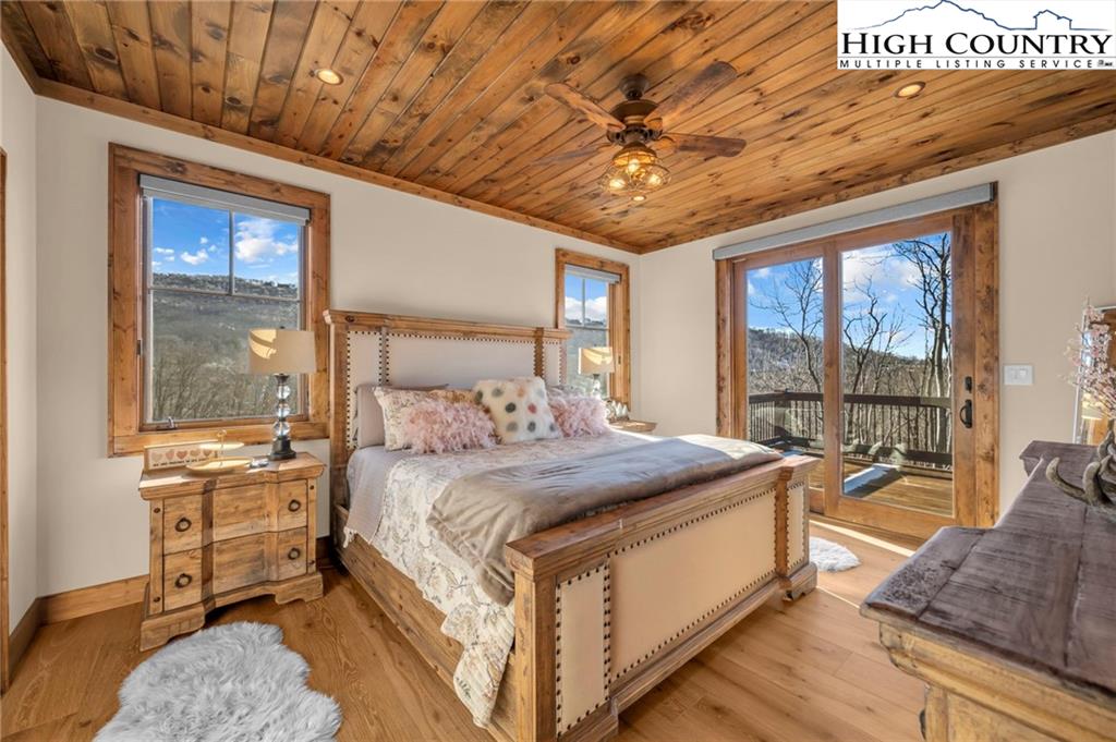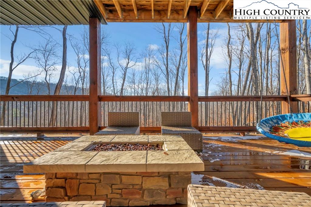 Experience exceptional mountain living in this custom-crafted retreat in The Lodges at Eagles Nest built by Vogel Builders—one of the closest homes in the community to Beech Mountain Ski Resort and just steps from the Beech Mountain gate, premier trails, and amenities. Thoughtfully designed and situated at approximately 4,300 feet of elevation, this 3-bedroom, 2-full and 2-half bath home offers seasonal long-range views, mountain views, dramatic sunsets, and the privacy of a 1.74-acre wooded setting. From the moment you arrive, the home's blend of rustic architecture and refined modern finishes sets it apart. Timber-frame beams, natural stone accents, and expansive glass highlight the surrounding mountain landscape. The main level features a vaulted great room anchored by a floor-to-ceiling stone fireplace, seamlessly connected to the dining area and a designer kitchen with custom cabinetry, premium appliances, and elegant lighting. The main-level primary suite provides a tranquil escape with vaulted ceilings, a spa-inspired bath, and direct access to the deck for enjoying the cool mountain air. The lower level is designed with comfort and hospitality in mind, featuring a spacious second living room with a wet bar and game area, a dedicated bunk room, a guest bedroom, a half bath, a full bath, and a laundry area, an ideal layout for hosting family and friends or maximizing short-term rental potential. Both levels open to expansive decks that invite year-round indoor-outdoor living. Outdoors, you’ll also enjoy a beautiful firepit area and a rare, gently sloping yard with usable space. This home offers an exceptional location within the Lodges at Eagles Nest, positioned directly beside the Beech Mountain gate. Walk or ride to Camp Eagles Nest, which features tennis courts, pickleball courts, playgrounds, and more. With Beech Mountain Ski Resort only 2.3 miles away, winter sports and summer recreation are easily accessible. At the Lodges at Eagles Nest, residents enjoy a wide range of amenities. The amphitheater hosts live summer concerts from May to October, while the Epic Chophouse offers exceptional dining nearby, along with convenient access to Dollar General for quick essentials. Outdoor enthusiasts can explore miles of hiking, biking, and ATV trails, as well as pickleball, tennis, basketball, and soccer courts. Additional activities include climbing towers, an 18-hole putt-putt course, and the popular Eagles Nest Winery, perfect for relaxing with wines and stunning views. Both short-term and long-term rentals are permitted, offering excellent investment flexibility. A stunning blend of luxury, adventure, and mountain serenity, this home stands out as one of the most desirable offerings in Eagles Nest.