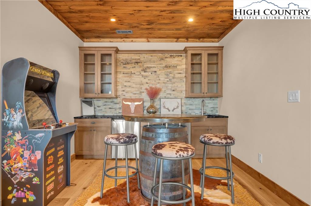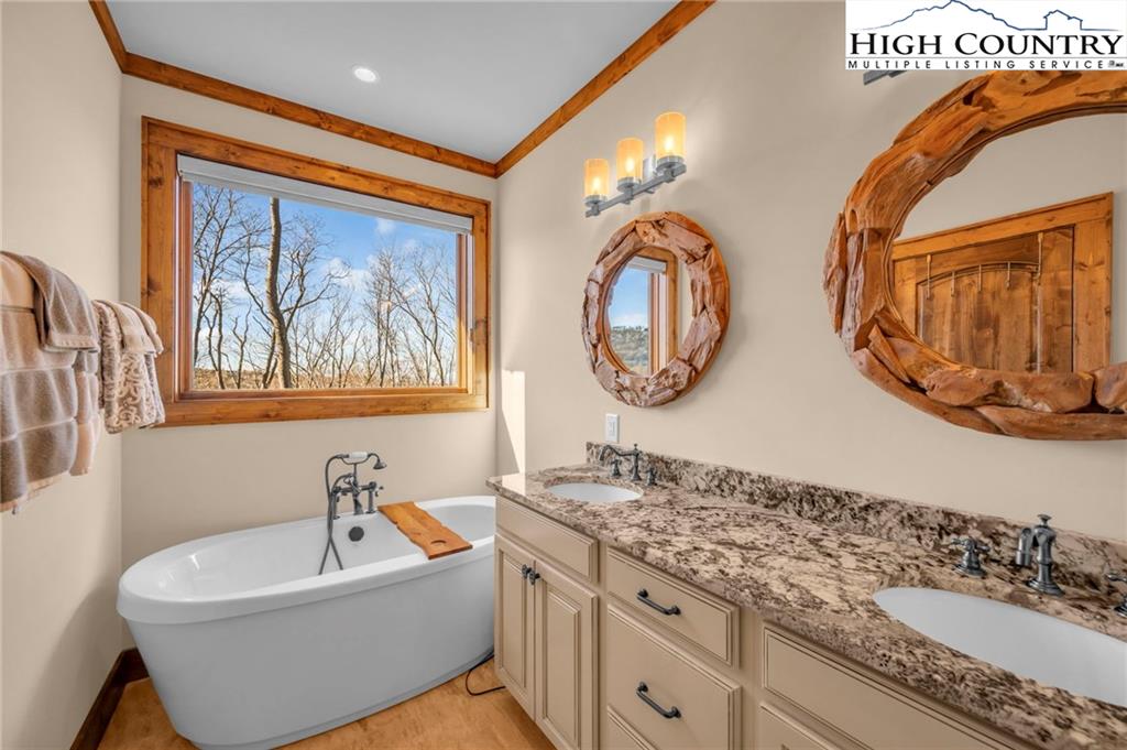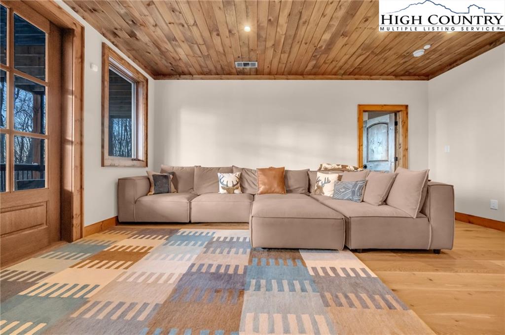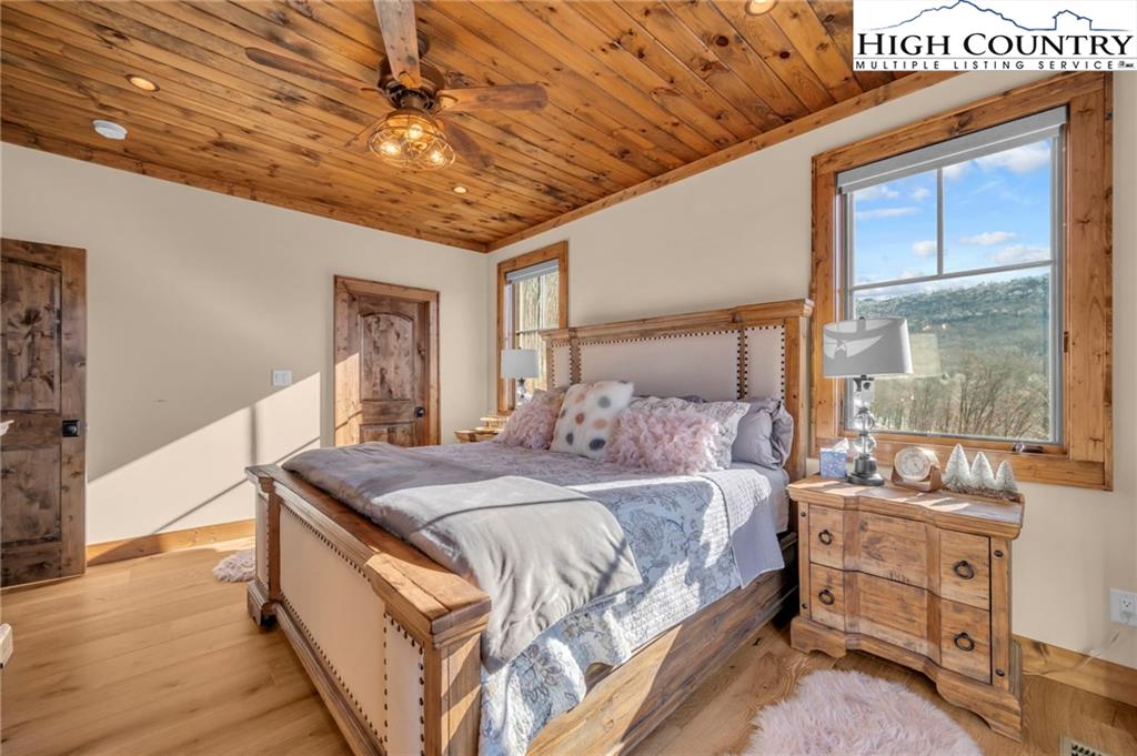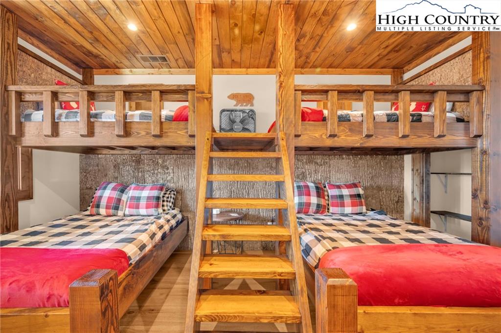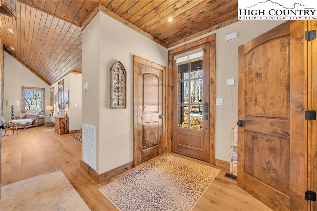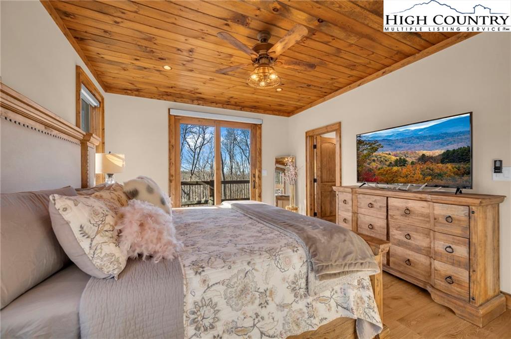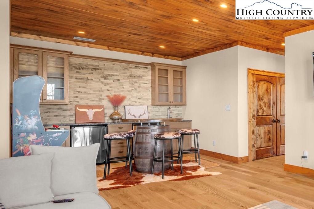Experience exceptional mountain living in this custom-crafted retreat in The Lodges at Eagles Nest built by Vogel Builders—one of the closest homes in the community to Beech Mountain Ski Resort and just steps from the Beech Mountain gate, premier trails, and amenities. Thoughtfully designed and situated at approximately 4,300 feet of elevation, this 3-bedroom, 2-full and 2-half bath home offers seasonal long-range views, mountain views, dramatic sunsets, and the privacy of a 1.74-acre wooded setting. From the moment you arrive, the home's blend of rustic architecture and refined modern finishes sets it apart. Timber-frame beams, natural stone accents, and expansive glass highlight the surrounding mountain landscape. The main level features a vaulted great room anchored by a floor-to-ceiling stone fireplace, seamlessly connected to the dining area and a designer kitchen with custom cabinetry, premium appliances, and elegant lighting. The main-level primary suite provides a tranquil escape with vaulted ceilings, a spa-inspired bath, and direct access to the deck for enjoying the cool mountain air. The lower level is designed with comfort and hospitality in mind, featuring a spacious second living room with a wet bar and game area, a dedicated bunk room, a guest bedroom, a half bath, a full bath, and a laundry area, an ideal layout for hosting family and friends or maximizing short-term rental potential. Both levels open to expansive decks that invite year-round indoor-outdoor living. Outdoors, you’ll also enjoy a beautiful firepit area and a rare, gently sloping yard with usable space. This home offers an exceptional location within the Lodges at Eagles Nest, positioned directly beside the Beech Mountain gate. Walk or ride to Camp Eagles Nest, which features tennis courts, pickleball courts, playgrounds, and more. With Beech Mountain Ski Resort only 2.3 miles away, winter sports and summer recreation are easily accessible. At the Lodges at Eagles Nest, residents enjoy a wide range of amenities. The amphitheater hosts live summer concerts from May to October, while the Epic Chophouse offers exceptional dining nearby, along with convenient access to Dollar General for quick essentials. Outdoor enthusiasts can explore miles of hiking, biking, and ATV trails, as well as pickleball, tennis, basketball, and soccer courts. Additional activities include climbing towers, an 18-hole putt-putt course, and the popular Eagles Nest Winery, perfect for relaxing with wines and stunning views. Both short-term and long-term rentals are permitted, offering excellent investment flexibility. A stunning blend of luxury, adventure, and mountain serenity, this home stands out as one of the most desirable offerings in Eagles Nest.