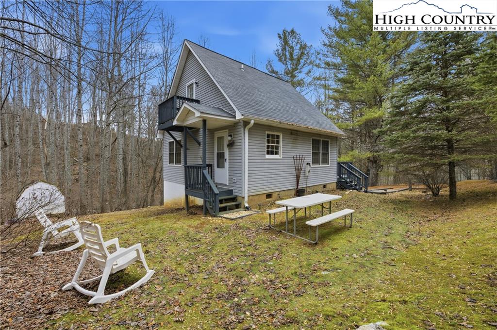 Tucked into the woods just above the South Fork of the New River, this adorable cottage feels worlds away from the noise of everyday life. Surrounded by trees and birdsong, it’s a perfect escape for anyone craving solitude, creativity and a slower pace. It’s the kind of place where mornings start slow, evenings end by the fire, and the woods provide the soundtrack. Inside, you’ll find a thoughtfully designed layout with a functional kitchen, a comfortable living room and an additional seating area perfect for reading, puzzles or watching the light change through the trees. The cozy main bedroom sits next to the full bath, and a loft above offers flexible space for sleeping, yoga, meditation, or creative work. The perfect artist's retreat. A deck and fire pit extend the living space outdoors, creating the perfect backdrop for slow evenings and star-filled nights. A great added value is the basement level with a full bathroom. It offers excellent potential to be finished out, creating additional living space or be converted into an artist's studio space. Affordable and full of charm, this cottage is a true mountain escape for those seeking simplicity, solitude and a place to recharge. Located in the Crumpler community, just 20 minutes from West Jefferson and 15 to Mouth of Wilson. Short term rentals are permitted.