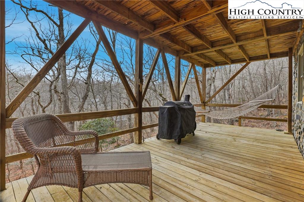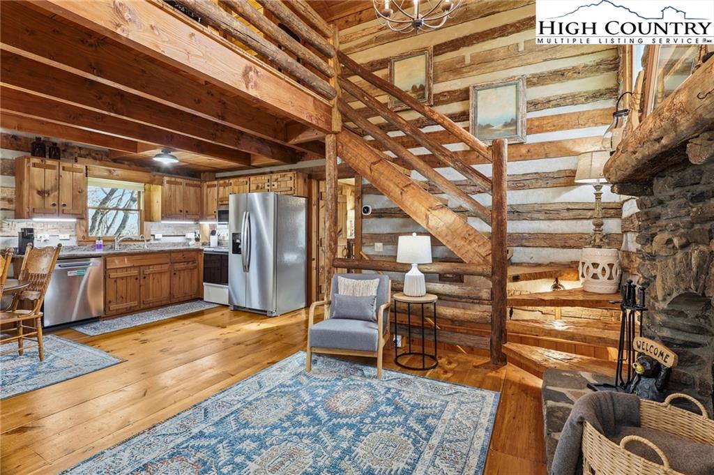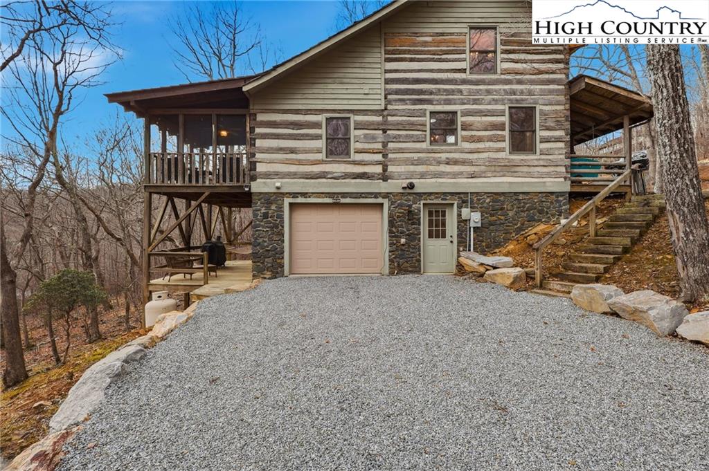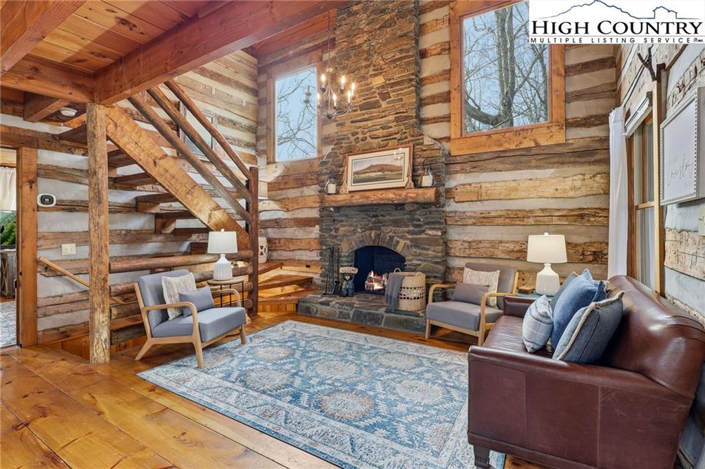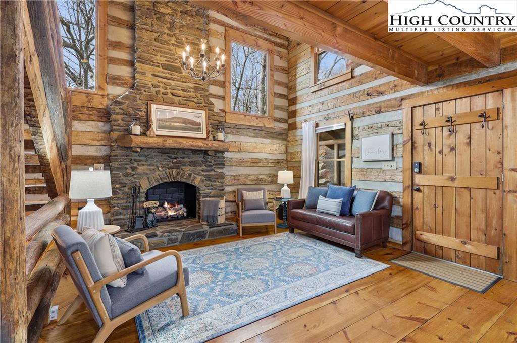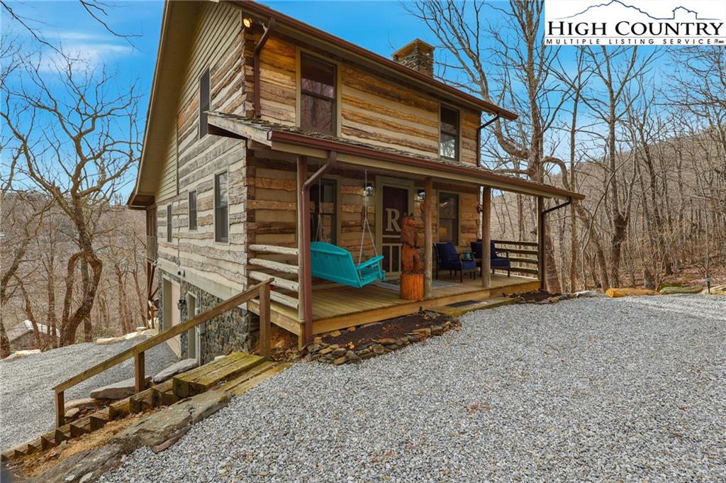 Tucked away in the peaceful mountain community of Todd, NC, this inviting rustic retreat is a place where time naturally slows and everyday stress fades away. Hand-hewn logs, a beautifully handcrafted staircase, and a stone propane fireplace create a warm, welcoming atmosphere that feels instantly like home. Evenings are best spent gathered by the fire, listening to the quiet and soaking in the comfort only a true mountain cabin can offer. Sold furnished minus a few minor exclusions, the home allows you to arrive, settle in, and begin enjoying the lifestyle from day one. Outdoor spaces invite you to linger and unwind. The home comes with a screened in back porch, front porch, and multiple decks, providing peaceful spots to take in nature throughout the day. Easy parking adds practicality, while an on-demand hot water heater brings modern efficiency to this timeless setting. The primary bedroom and bath are conveniently located on the main level, offering ease and comfort for everyday living. Easy access to West Jefferson, Jefferson, and Boone, while also offering proximity to the New River and High Country recreation options. This cozy cabin offers a rare opportunity to truly unplug, slow down, and embrace the mountain way of life.