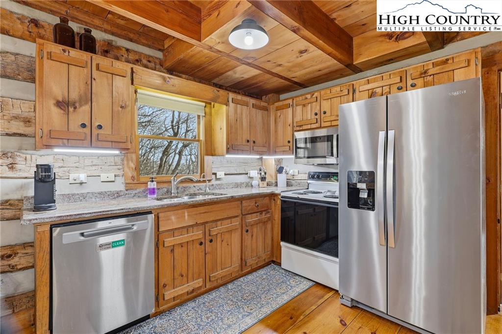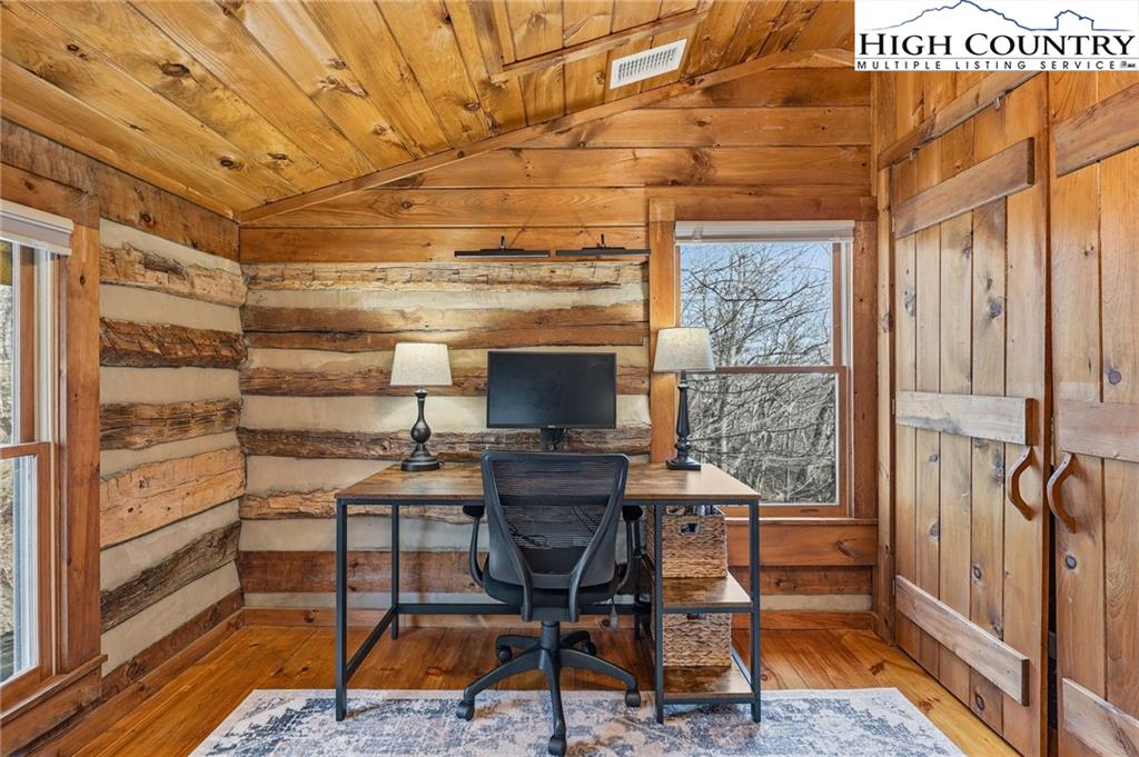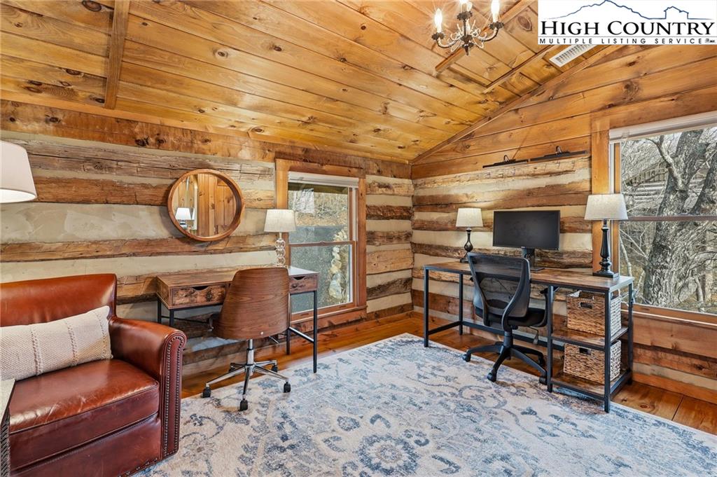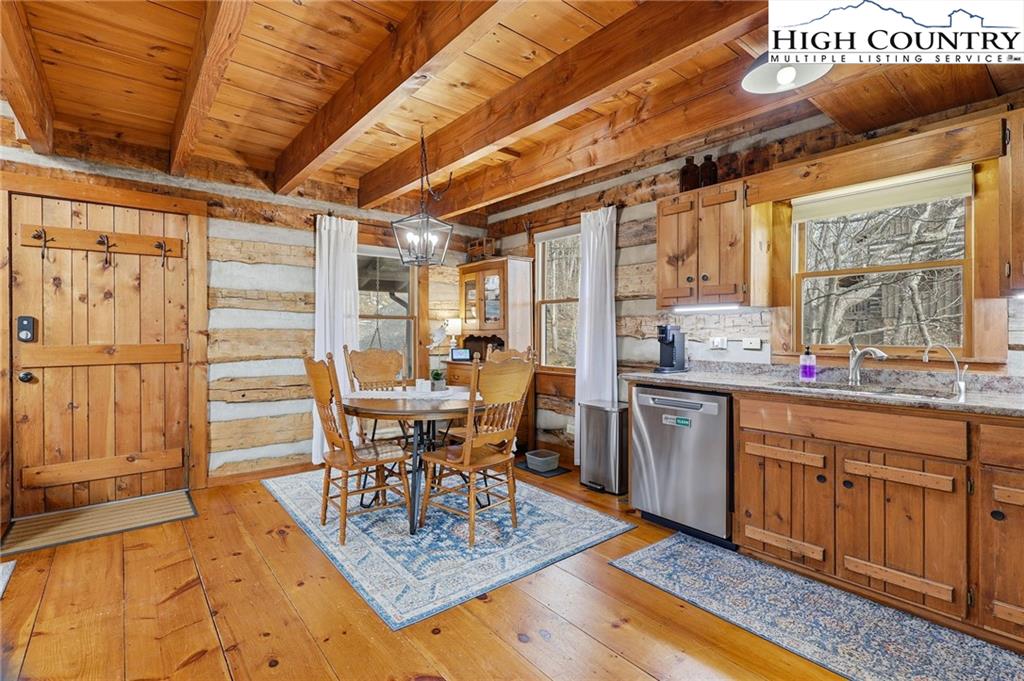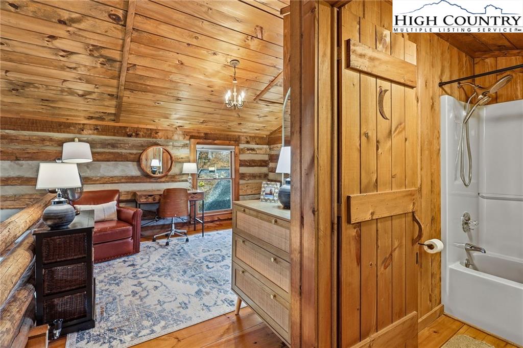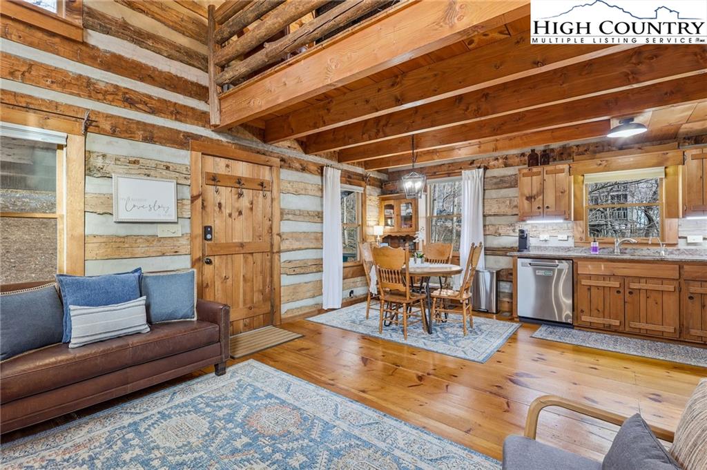 Tucked away in the peaceful mountain community of Todd, NC, this inviting rustic retreat is a place where time naturally slows and everyday stress fades away. Hand-hewn logs, a beautifully handcrafted staircase, and a stone propane fireplace create a warm, welcoming atmosphere that feels instantly like home. Evenings are best spent gathered by the fire, listening to the quiet and soaking in the comfort only a true mountain cabin can offer. Sold furnished minus a few minor exclusions, the home allows you to arrive, settle in, and begin enjoying the lifestyle from day one. Outdoor spaces invite you to linger and unwind. The home comes with a screened in back porch, front porch, and multiple decks, providing peaceful spots to take in nature throughout the day. Easy parking adds practicality, while an on-demand hot water heater brings modern efficiency to this timeless setting. The primary bedroom and bath are conveniently located on the main level, offering ease and comfort for everyday living. Easy access to West Jefferson, Jefferson, and Boone, while also offering proximity to the New River and High Country recreation options. This cozy cabin offers a rare opportunity to truly unplug, slow down, and embrace the mountain way of life.