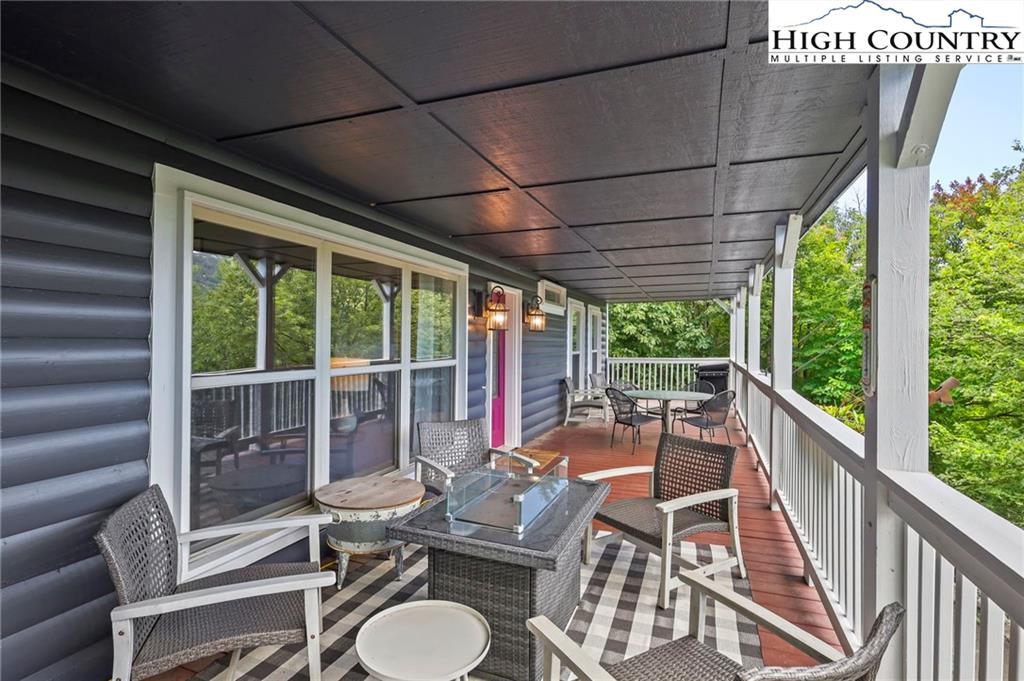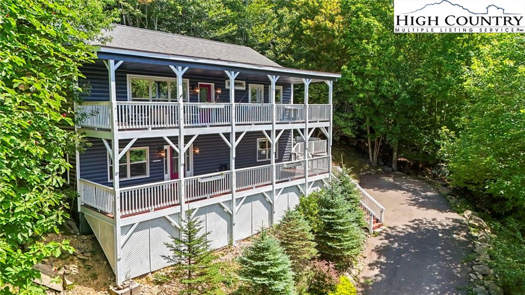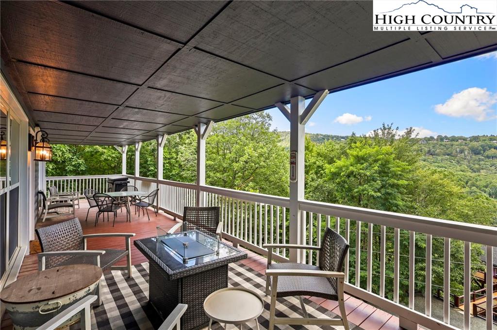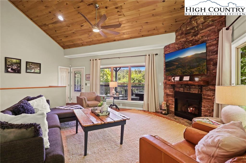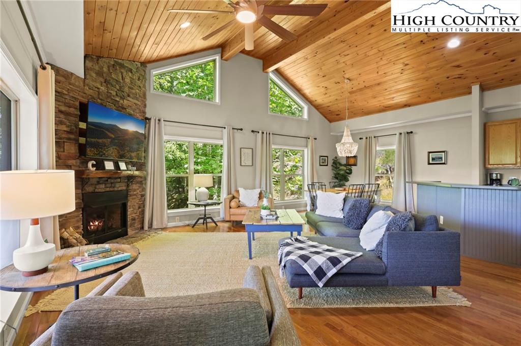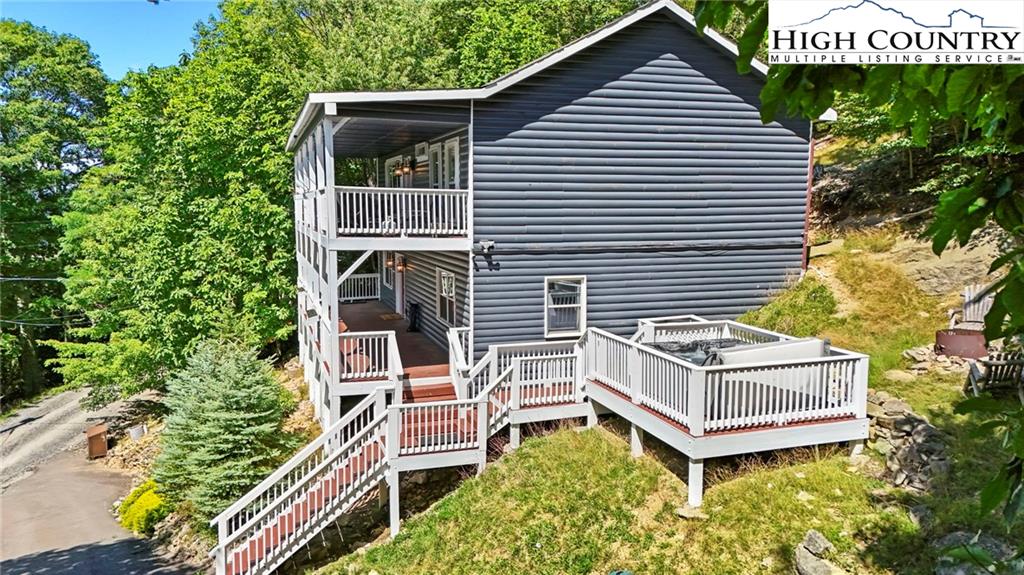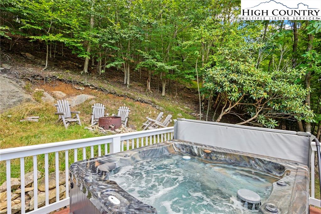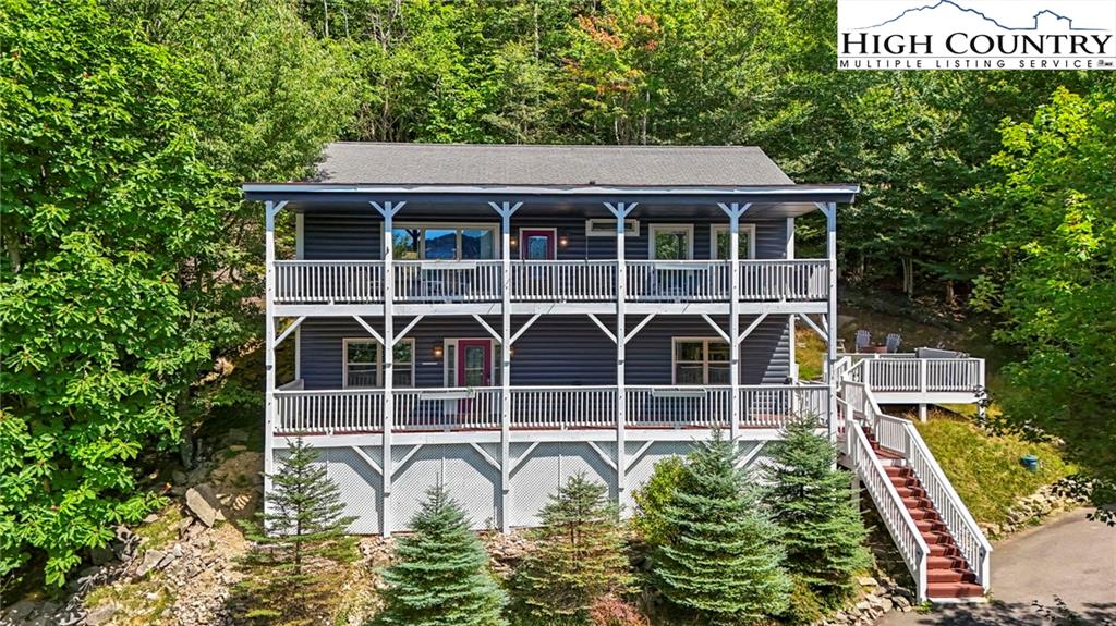 Welcome to this inviting mountain home on Beech Mountain featuring 3 bedrooms, 3 full bathrooms, and year-round long-range layered views from two covered decks. The main level includes tongue-and-groove wood ceilings, an open floor plan with a living area, dining space, and kitchen with center island. The living room has a gas log fireplace, and the kitchen is equipped with updated appliances and cabinetry. This level also offers a guest bedroom, full bath, and a primary suite. The lower level provides a second living area with another gas log fireplace, game/recreation space, and outdoor access. A third bedroom, full bath, laundry area, and bonus space complete the interior. Exterior features include a hot tub, firepit, and outdoor entertainment area. The property is located on a quiet street in a natural setting. Beech Mountain Club membership (if purchased) provides access to tennis, pickleball, golf, fitness, dining, swimming pool, and seasonal programs. The Beech Mountain area offers skiing, mountain biking, hiking, fishing, and year-round community events.