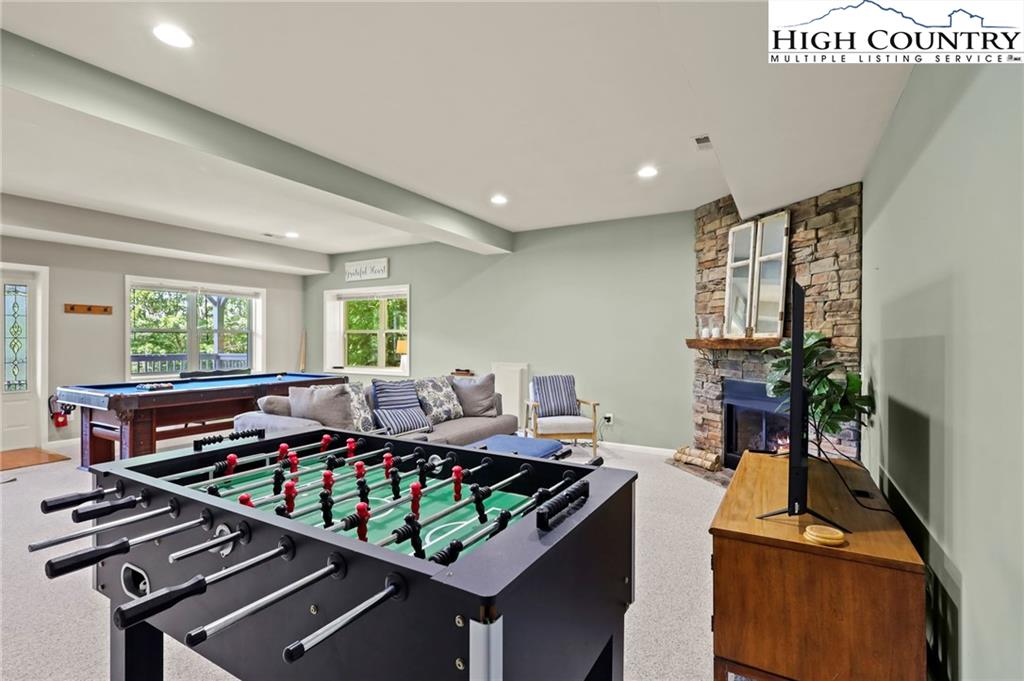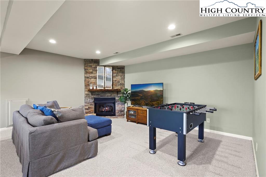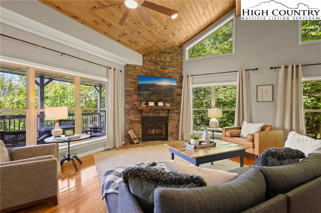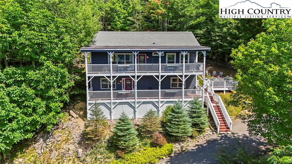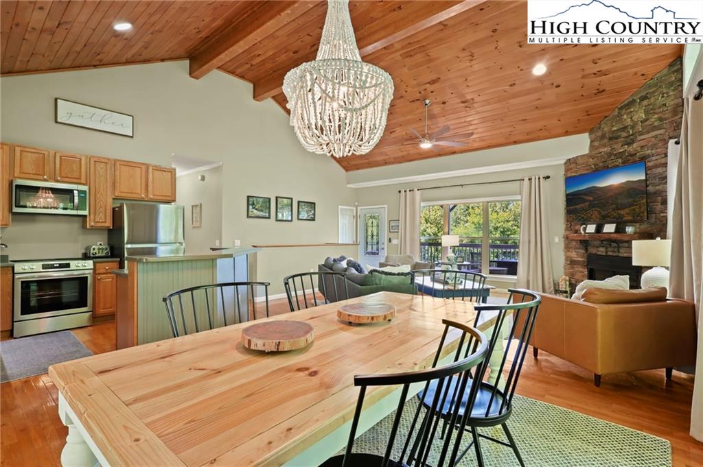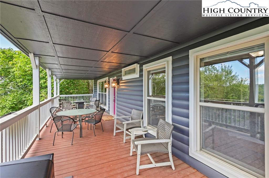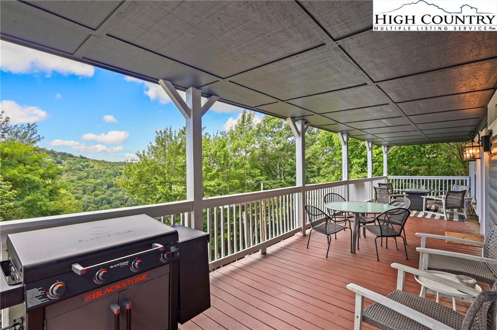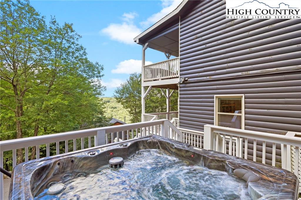Welcome to this inviting mountain home on Beech Mountain featuring 3 bedrooms, 3 full bathrooms, and year-round long-range layered views from two covered decks. The main level includes tongue-and-groove wood ceilings, an open floor plan with a living area, dining space, and kitchen with center island. The living room has a gas log fireplace, and the kitchen is equipped with updated appliances and cabinetry. This level also offers a guest bedroom, full bath, and a primary suite. The lower level provides a second living area with another gas log fireplace, game/recreation space, and outdoor access. A third bedroom, full bath, laundry area, and bonus space complete the interior. Exterior features include a hot tub, firepit, and outdoor entertainment area. The property is located on a quiet street in a natural setting. Beech Mountain Club membership (if purchased) provides access to tennis, pickleball, golf, fitness, dining, swimming pool, and seasonal programs. The Beech Mountain area offers skiing, mountain biking, hiking, fishing, and year-round community events.