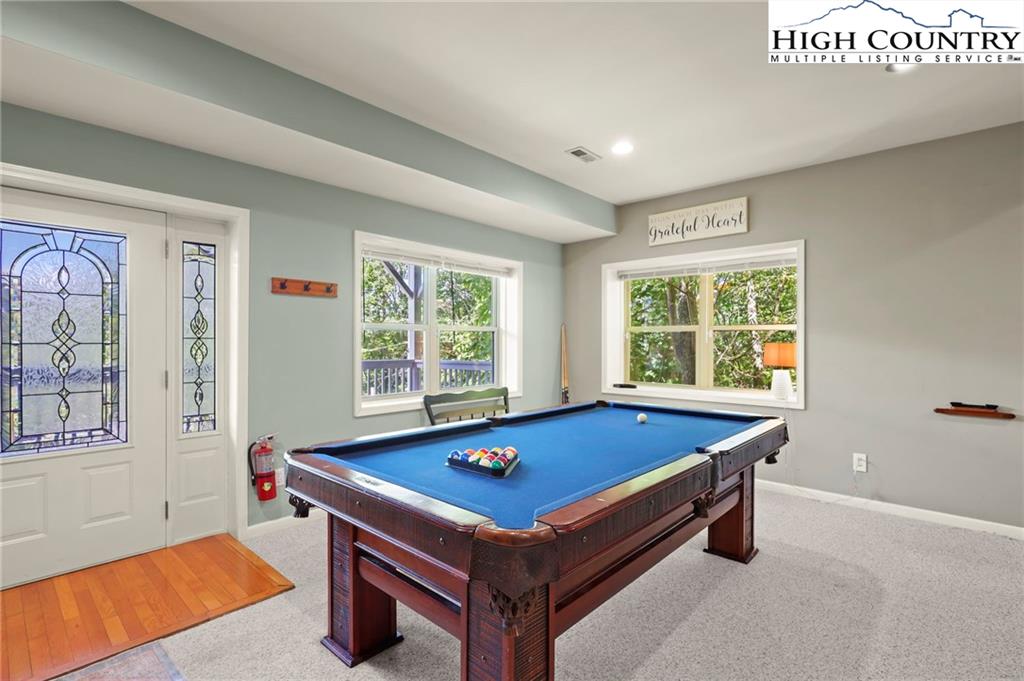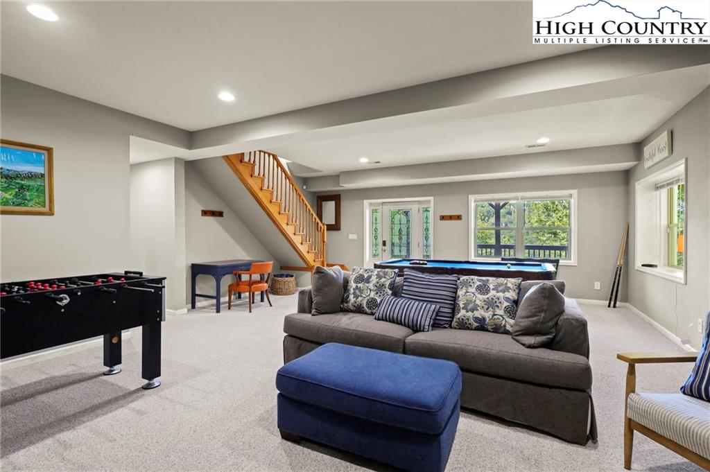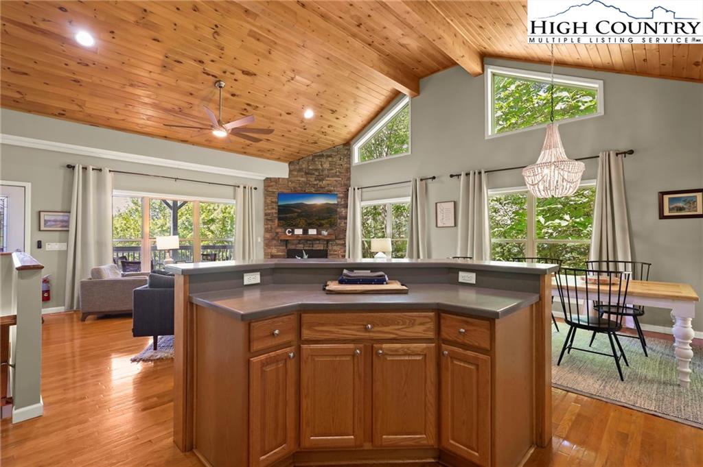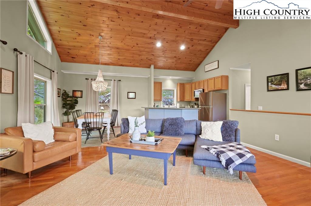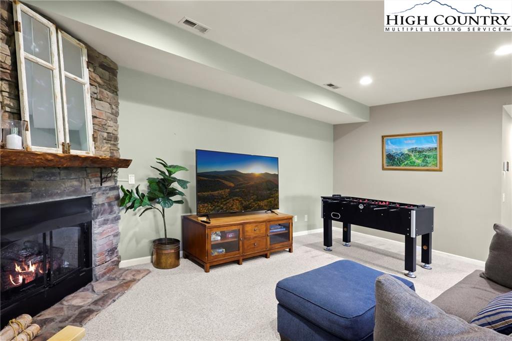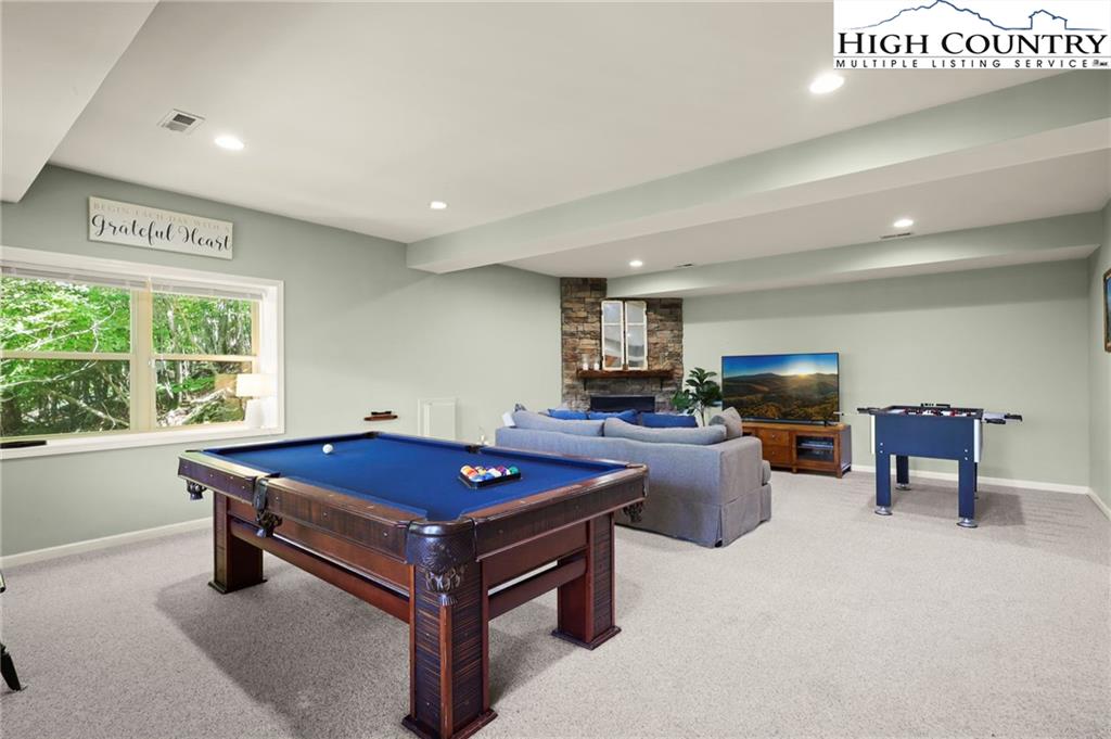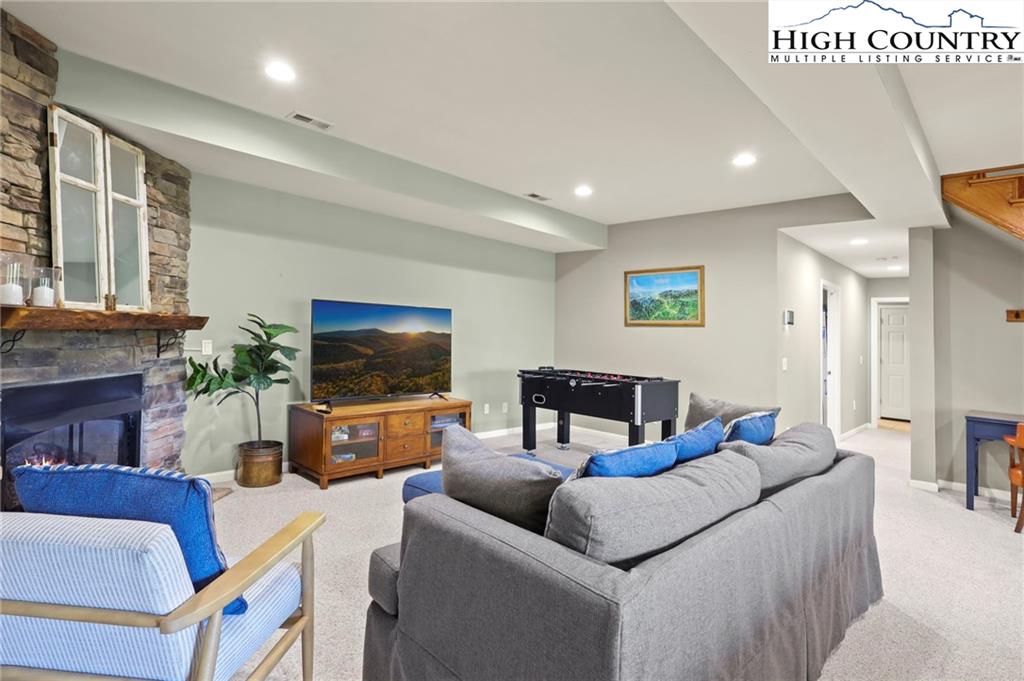 Welcome to this inviting mountain home on Beech Mountain featuring 3 bedrooms, 3 full bathrooms, and year-round long-range layered views from two covered decks. The main level includes tongue-and-groove wood ceilings, an open floor plan with a living area, dining space, and kitchen with center island. The living room has a gas log fireplace, and the kitchen is equipped with updated appliances and cabinetry. This level also offers a guest bedroom, full bath, and a primary suite. The lower level provides a second living area with another gas log fireplace, game/recreation space, and outdoor access. A third bedroom, full bath, laundry area, and bonus space complete the interior. Exterior features include a hot tub, firepit, and outdoor entertainment area. The property is located on a quiet street in a natural setting. Beech Mountain Club membership (if purchased) provides access to tennis, pickleball, golf, fitness, dining, swimming pool, and seasonal programs. The Beech Mountain area offers skiing, mountain biking, hiking, fishing, and year-round community events.