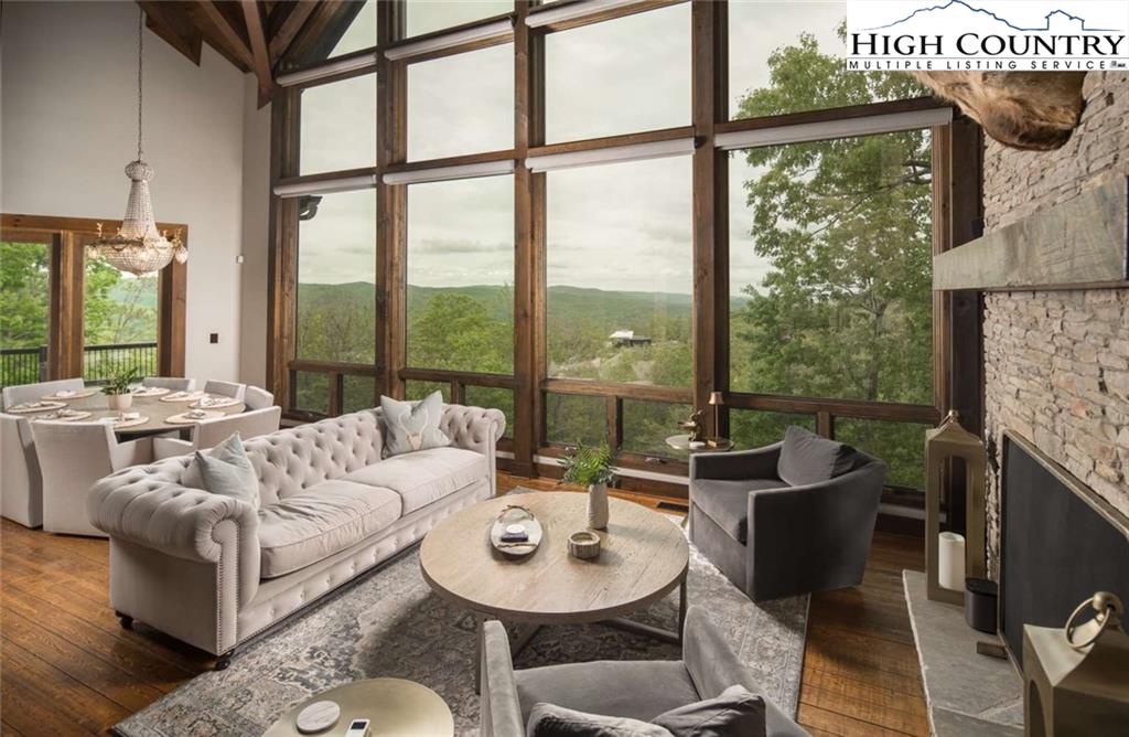 Sunrise and Sunset! Heavenly luxury awaits the discerning client at this stunningly renovated home, named SkyHaven! Its new owner will enjoy the curated updates and purposely relaxed feel of the home. The gourmet kitchen overlooks the long range mountains, numerous trails and wildlife. Kick back by a blazing fire in one of the outdoor relaxation spaces. Enjoy the custom built bar in the lower level along with plentiful flex space. Sophisticated craftsmanship can be see throughout the 6 ensuite bedrooms, cathedral ceilings and stacked stone fireplace. The Blue Ridge Mountain Club boasts an expansive 6,000+ acres of gated, resort-style living, with clubhouse, pool with bath house,fitness, pickleball, fly fishing, dining, exercize facility, restaurant and so much more. Long term rentals are permitted. This stunner won’t last long! Minutes from Blowing Rock and Boone. Ask for the list of amenities and updates. Professionally decorated furnishings are negotiable.