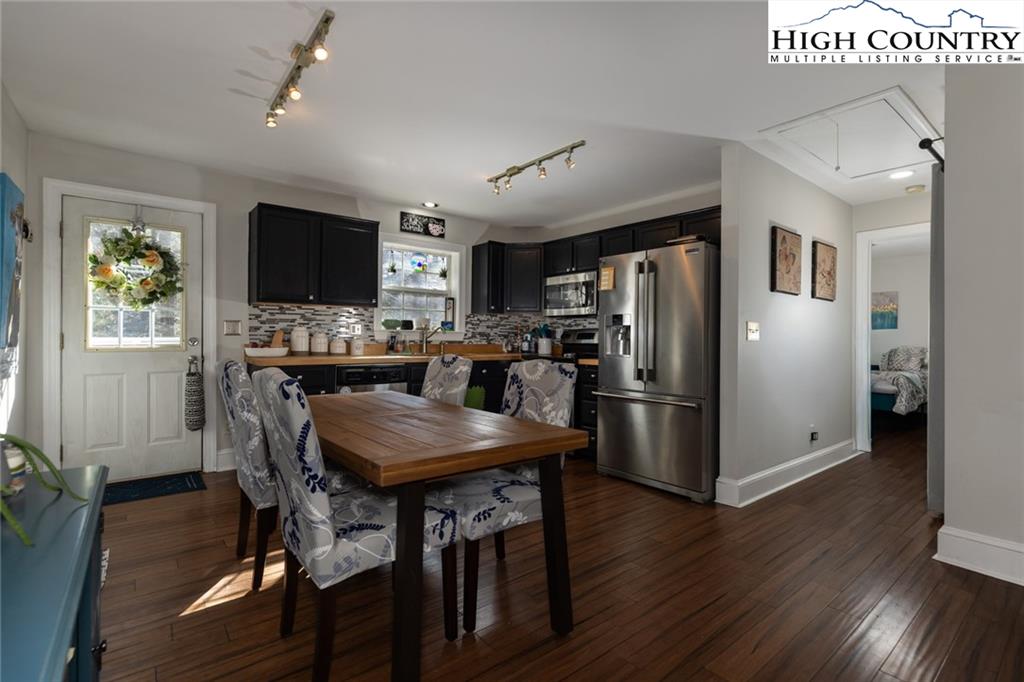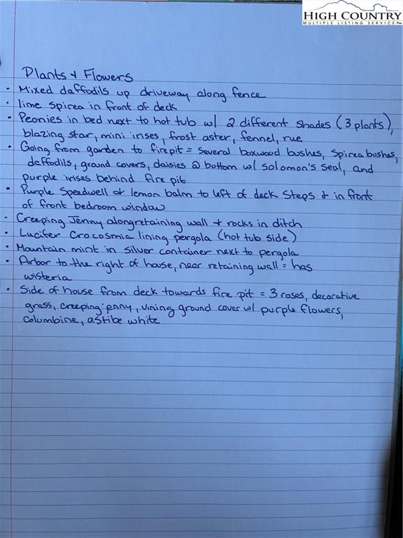 Where are all my garden enthusiast's? Check in! Need one level living? Got it! Enjoy relaxing in your personal hot tub after a long day? Look no further! Care to invite some friends to enjoy your custom outdoor fireplace and the magic of the lighted Pergola? Plenty of parking! This little gem will not last long. 3 bedroom 2 full bath sitting on an just under an acre. Ideally located equidistant between Boone and West Jefferson. Easy access to everything High Country. This is one level living at its finest. Current owners have cultivated a beautiful garden with raised beds for annual gardening as well as multiple perennial's and a huge host of fruit bearing plants. Pictures have been added to show the magic you get to enjoy during the spring, summer, and fall. Appliances remain. Hot tub remains. Stainless steel appliances, bamboo flooring, central HVAC (TRANE Gas Furnace w variable speed fan installed by Scott Brothers in Jan 2021), new water heater 2024, new larger gutters in 2022, multiple outdoor outlets throughout the yard, water filtration system. RV's and Campers ok to park. Do you work at Appalachian state university? This is the PERFECT place to call home! 3 bedroom Septic permit, shared well, high speed internet. Lets talk plants mixed daffodils up the driveway along the fence, lime spirea in front of deck, peonies in bed next to hot tub with 2 different shades blazing star, mini irises, frost aster, fennel, rue. There is a more comprehensive list of plants and a map of the garden in pics! Blueberry bushes, peach tree, butterfly garden with select perennial's, blackberries, raspberries.... and so much more. THE CRAWL SPACE!!!! Walk in the crawl space to an area that is probably over 900 sq feet for storage, a workshop, you name it. Owners also raised bees previously. ATTIC .... huge storage space with flooring throughout... pull down steps for access. This little house packs a BIG punch!