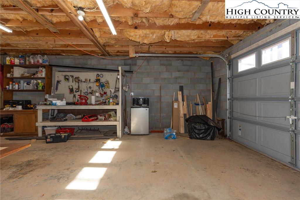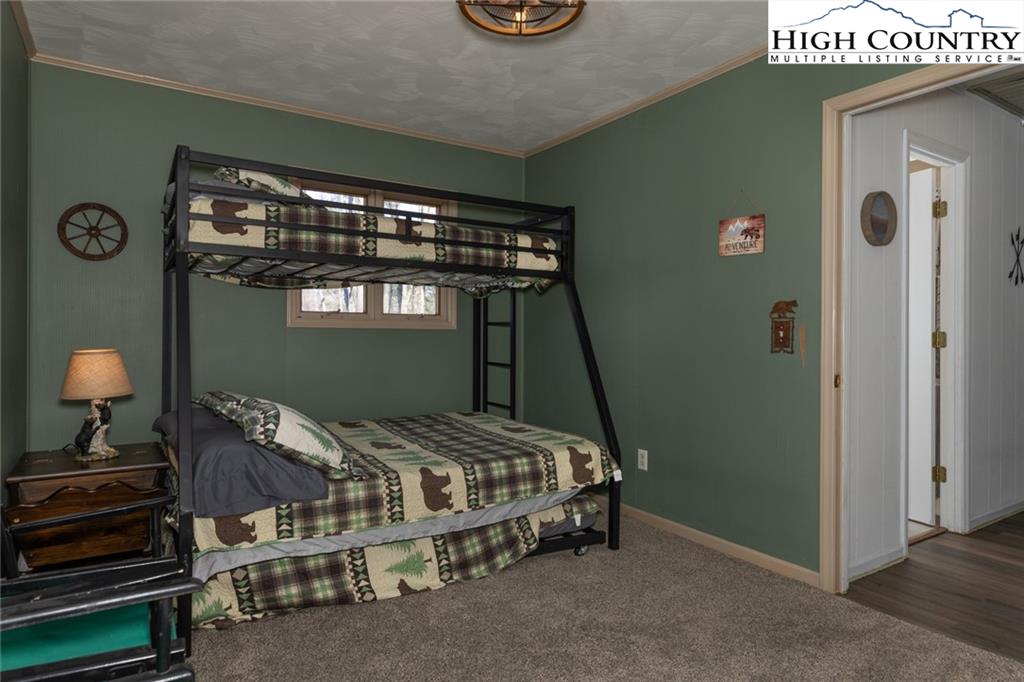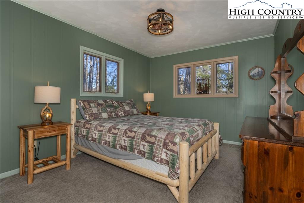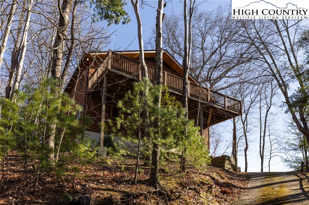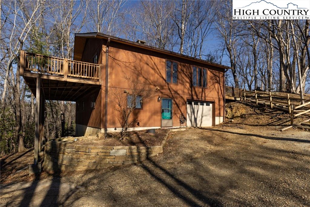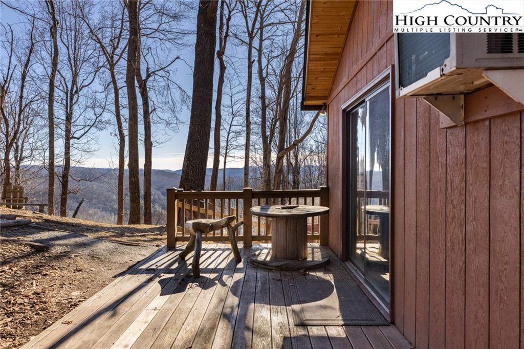 Welcome to this charming 3 bedroom 2 bath house located in the gated community of Powder Horn Mountain. New roof in 2024. Monster view off the back of this one and a, rare to find, attached basement garage. The lower level has a very nice size walk in laundry room as well as a full bedroom and bathroom. There is also a nice den in this lower level that has direct access to the garage. (could be a nice game room for short term rentals which are allowed) LVP flooring and tile on this level and some nice new wood accents throughout. Upper level has 2 full bedrooms one full bath and the kitchen, living room. and dining area. Fully furnished with only a few exceptions. Bring a tooth brush! 2 propane fireplaces one on each level. POA Dues are 1988 per year. Short term rentals allowed. Access to community pool, fitness center, paddle boats, campground, 3 lakes, playground, tennis court, chapel and weekly trash removal! Great opportunity to get a larger house at over 1800 sq ft and make it your own for less than the cost to build new. Internet is now SKYLINE SKYBEST fiber internet. 13 miles to Appalachian state. No septic permit found on this one. Seasonal views and long term views with a little tree cutting!